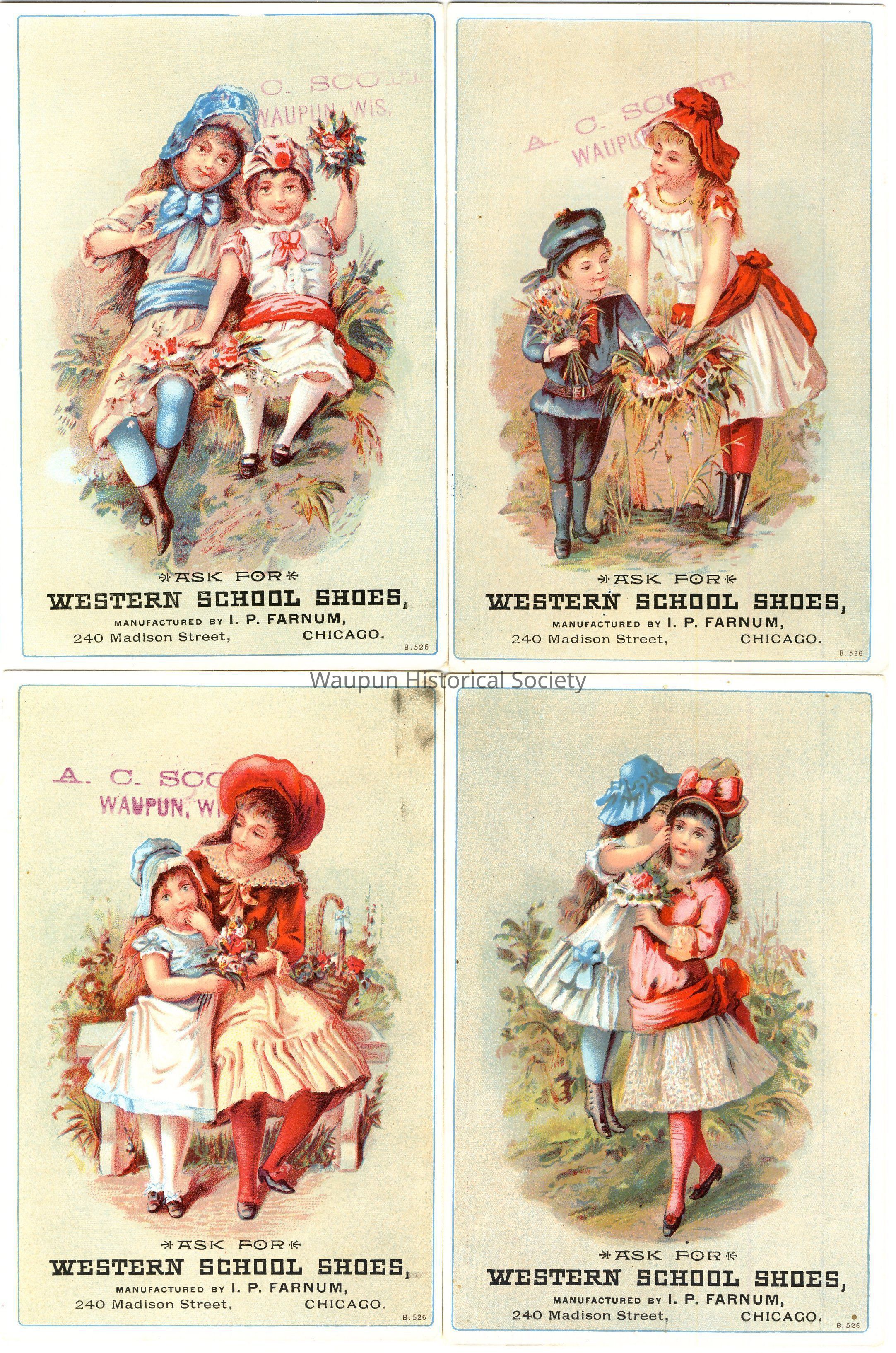 5 advertisement cards for Western School Shoes (A. C. Scott, Waupun, Wis stamped on the back of each one)Acquisition