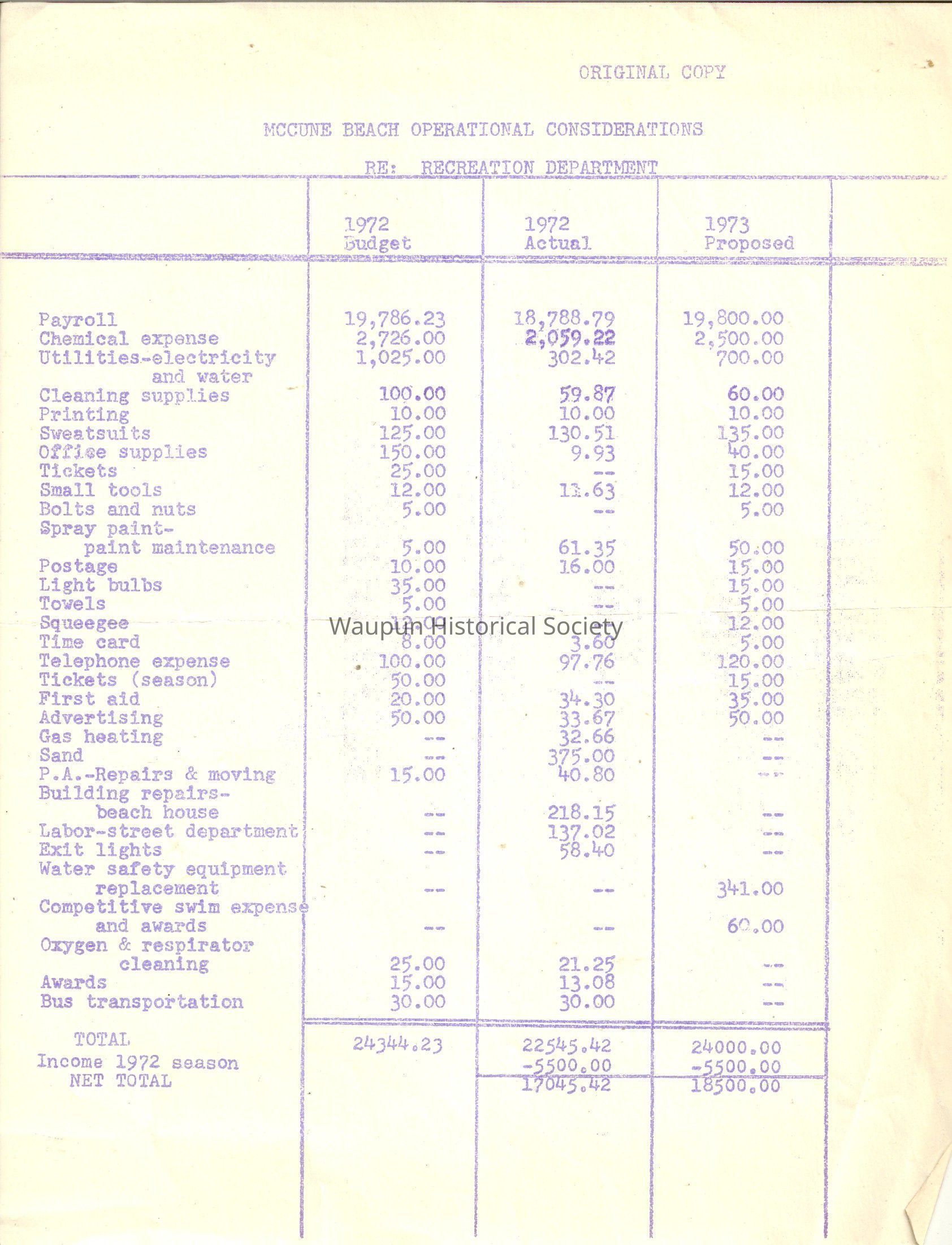 Parks, McCune Beach, 1973 Proposed BudgetEntry/Object ID