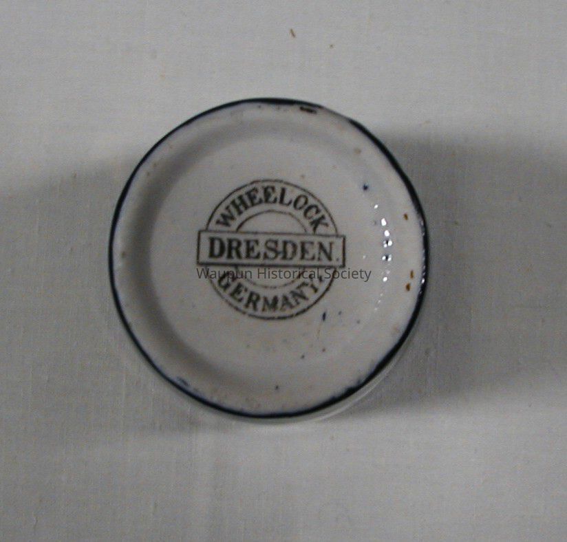 Cup with "Wisconsin State Prison at Waupun" on it. On the bottom it indicates "Wheelock, Dresden, Germany."Acquisition