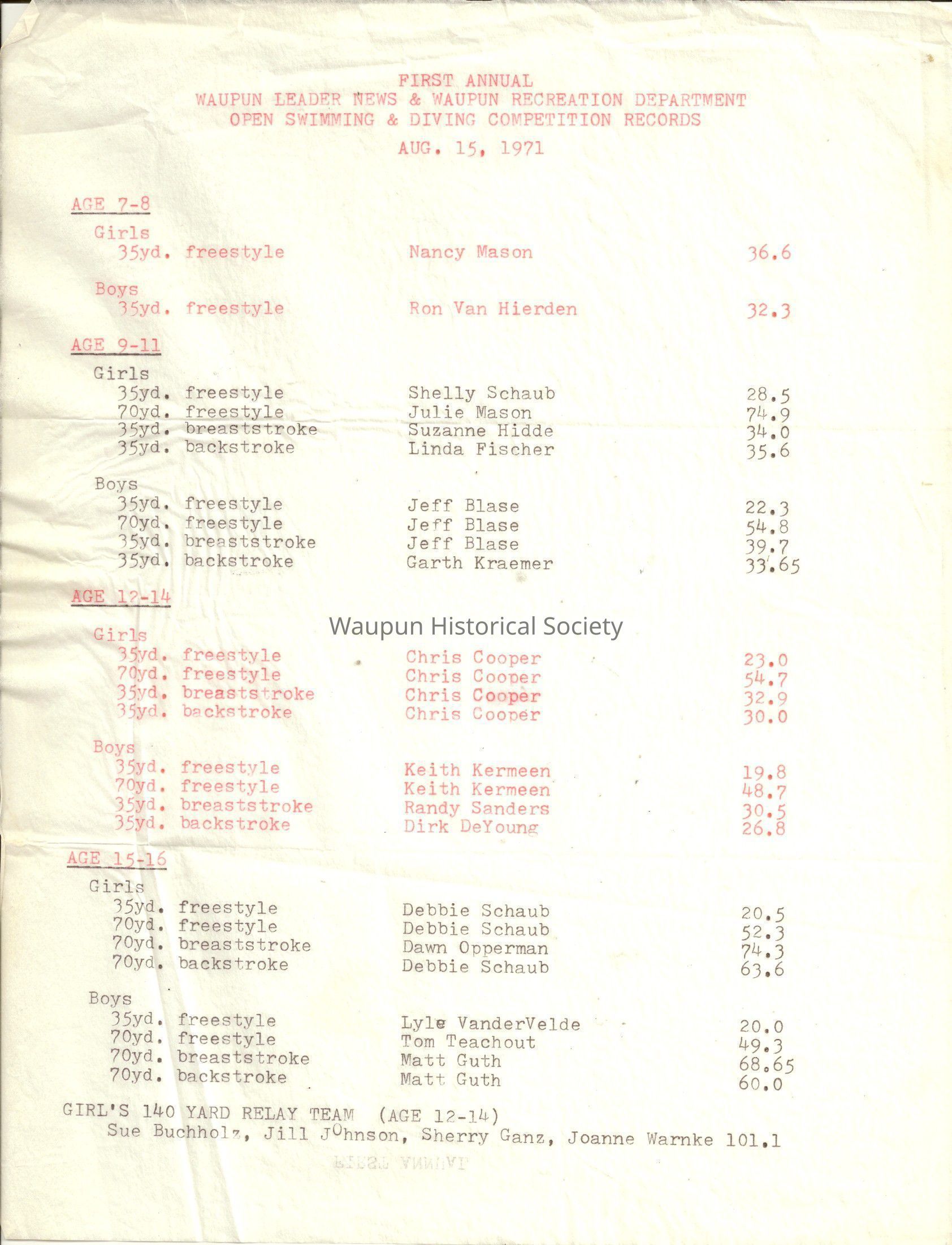 GIRL'S 140 YARD RELAY TEAM (AGE 12-14)