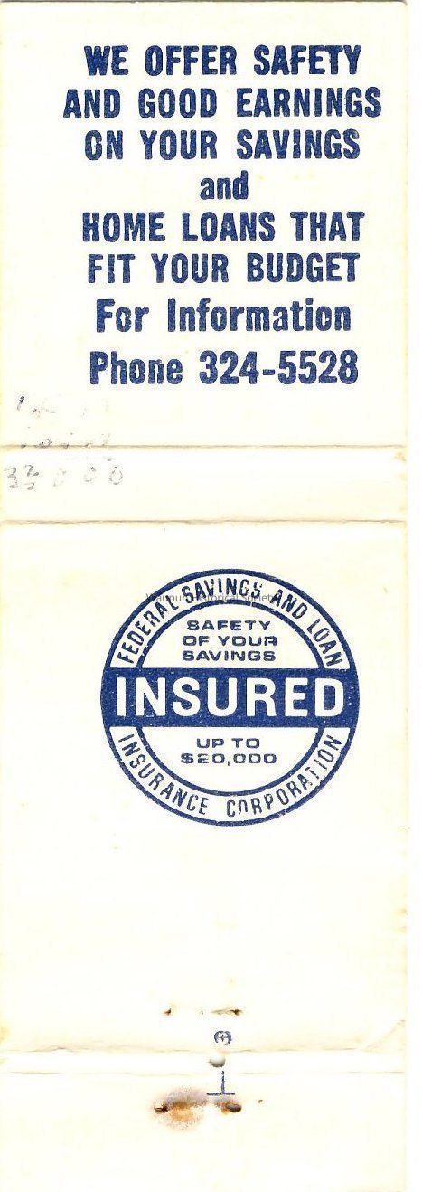 Matchbook advertising Waupun business - Waupun Savings And Loan Association, 101 S. Madison St., Waupun, Wis., Phone - 324-5528