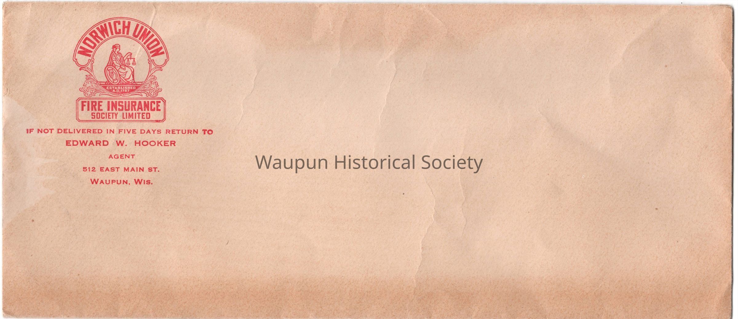 Edward Hooker envelope for the Norwich Union Fire Insurance Co.Acquisition