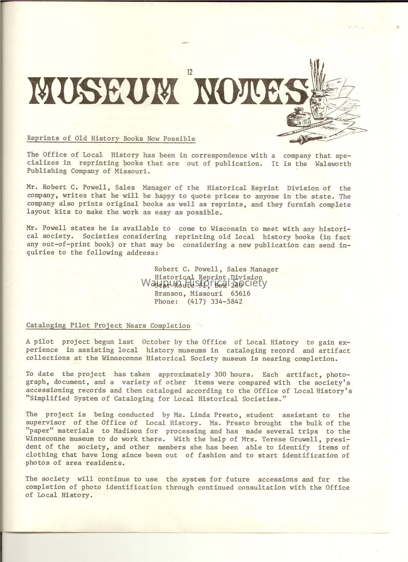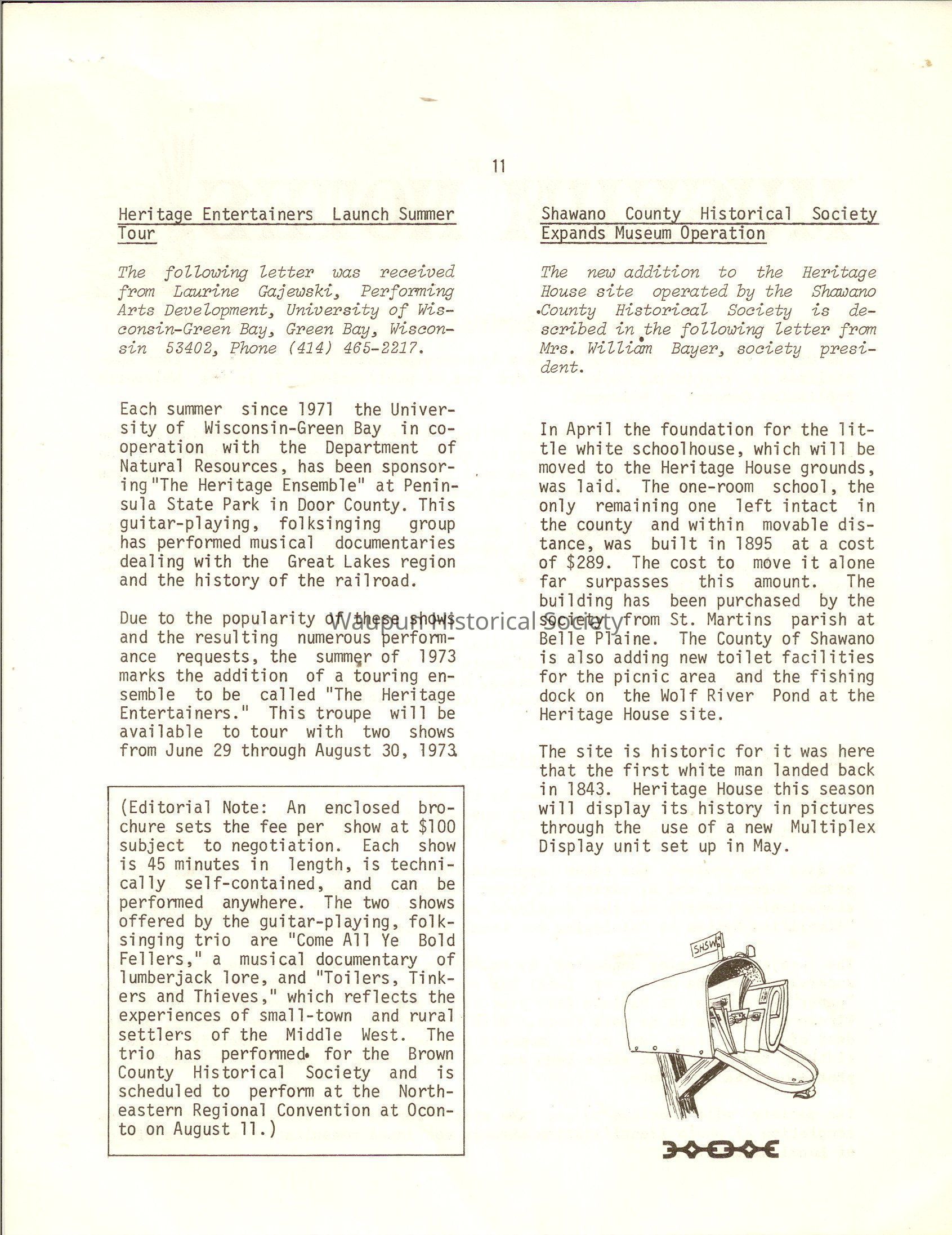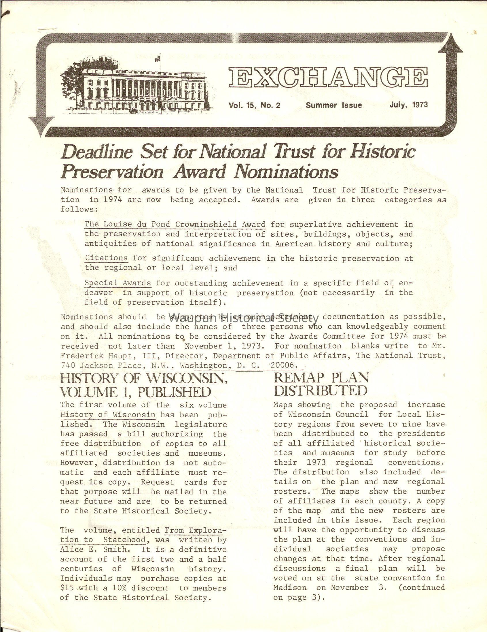 Waupun Historical Society, EXCHAN, 1973Entry/Object ID