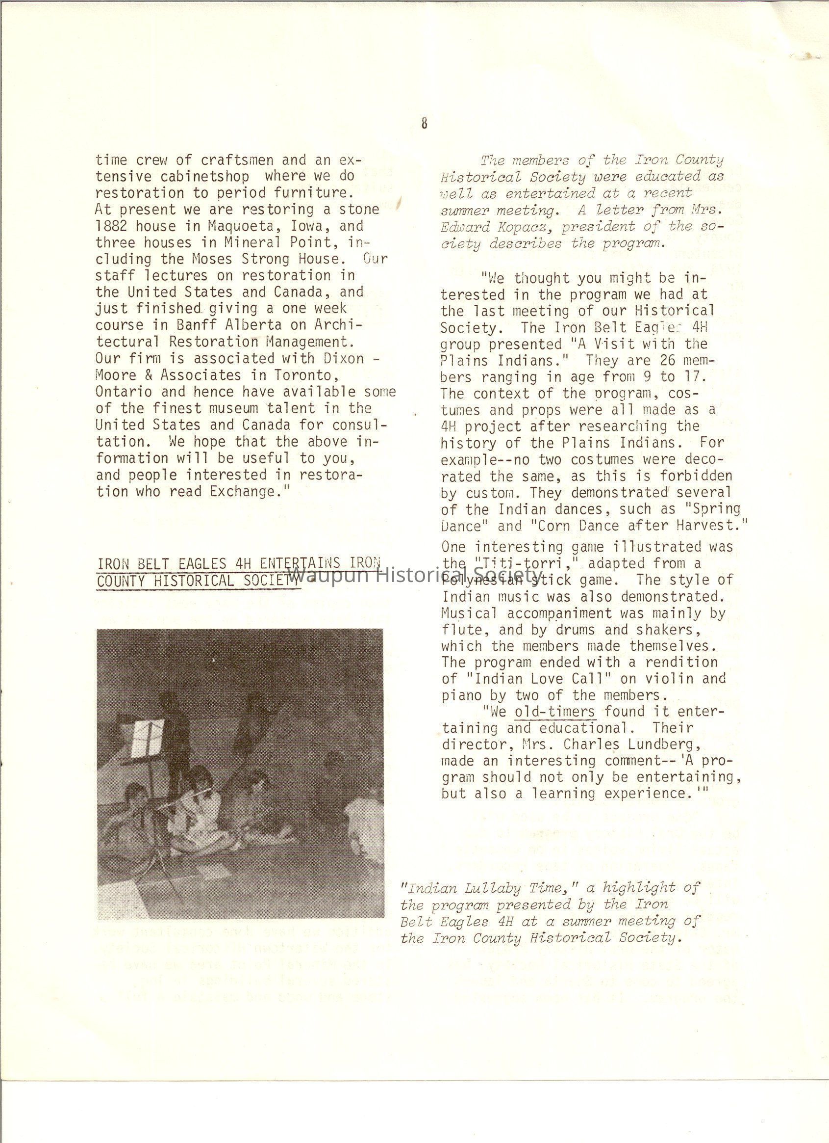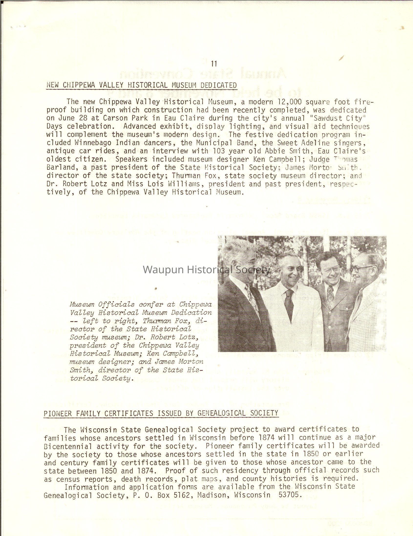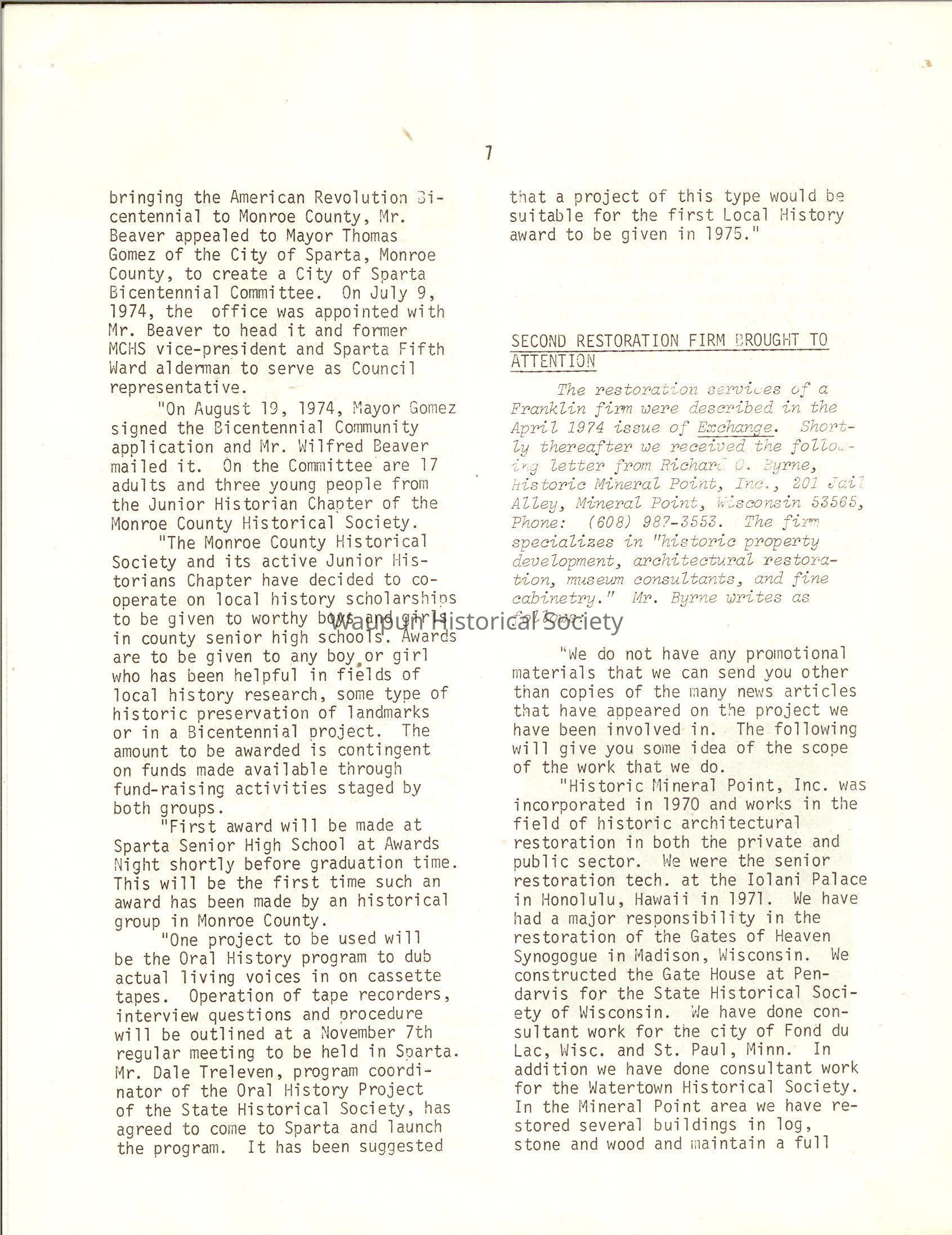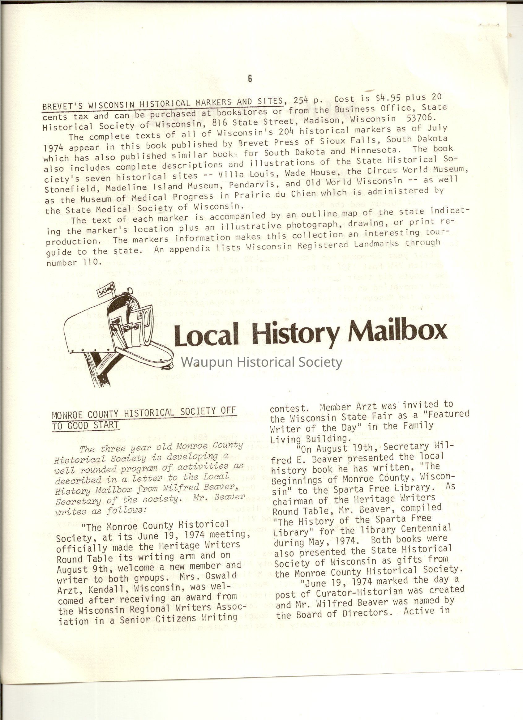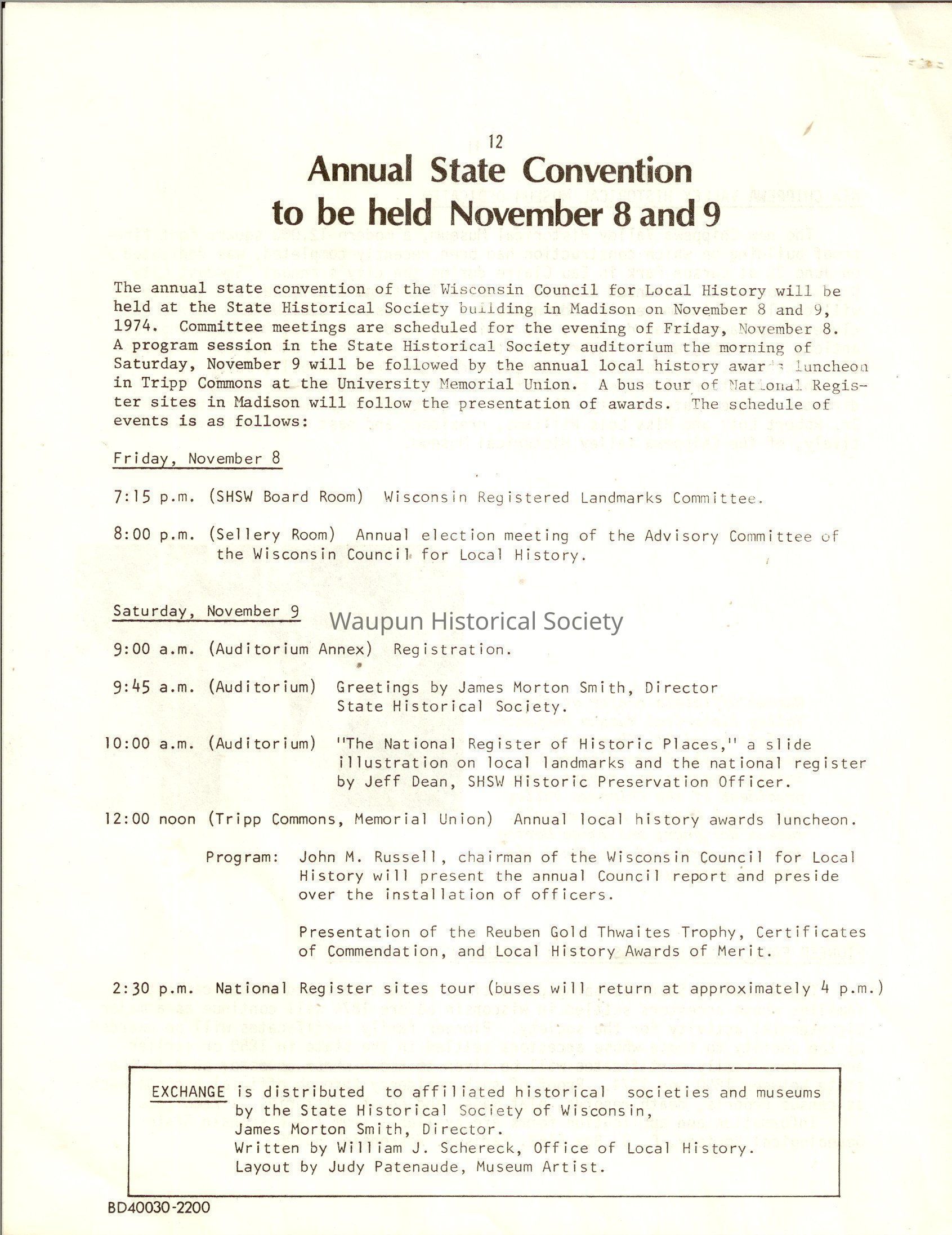 Waupun Historical Society, EXCHANGE, 1974Entry/Object ID