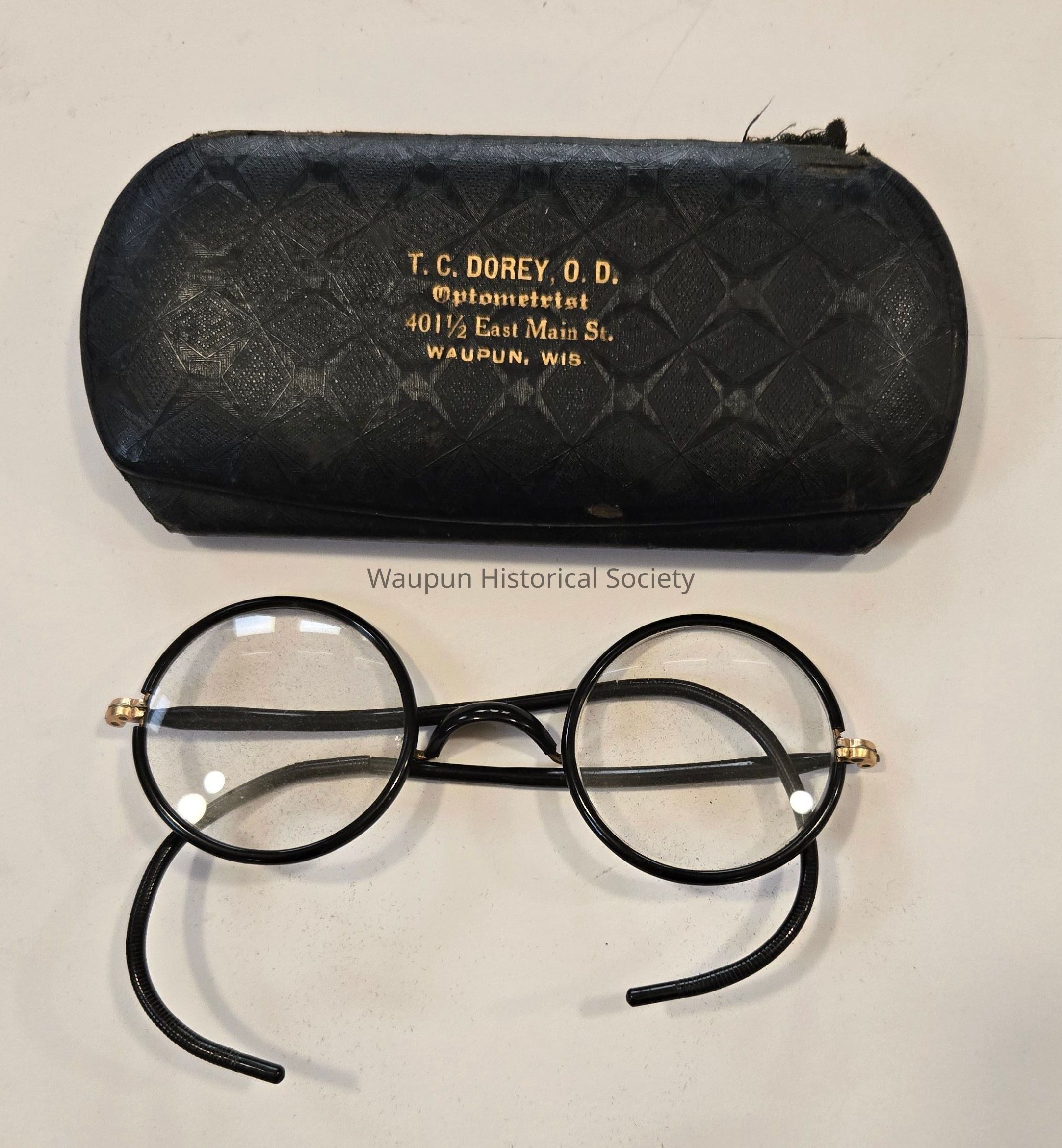 Eye Glasses and Case, T. C. Dorey, Optometrist, 401 1/2 East Main Street