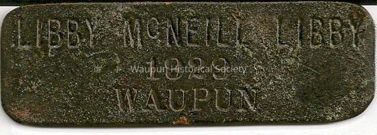 A 7/8" X 2 3/4 medal plate inscribed "Libby McNeal Libby, 1929, Waupun." Purchased by James Charles Laird from eBay.Acquisition