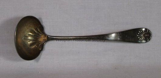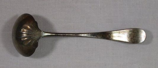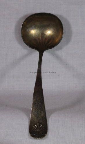 Spoon with the word DAY engraved on front of handle. The words Pat. 1889 are on the back of the handle. Not sure if this is silver; it looks tarnished so possibly could be silver.Acquisition