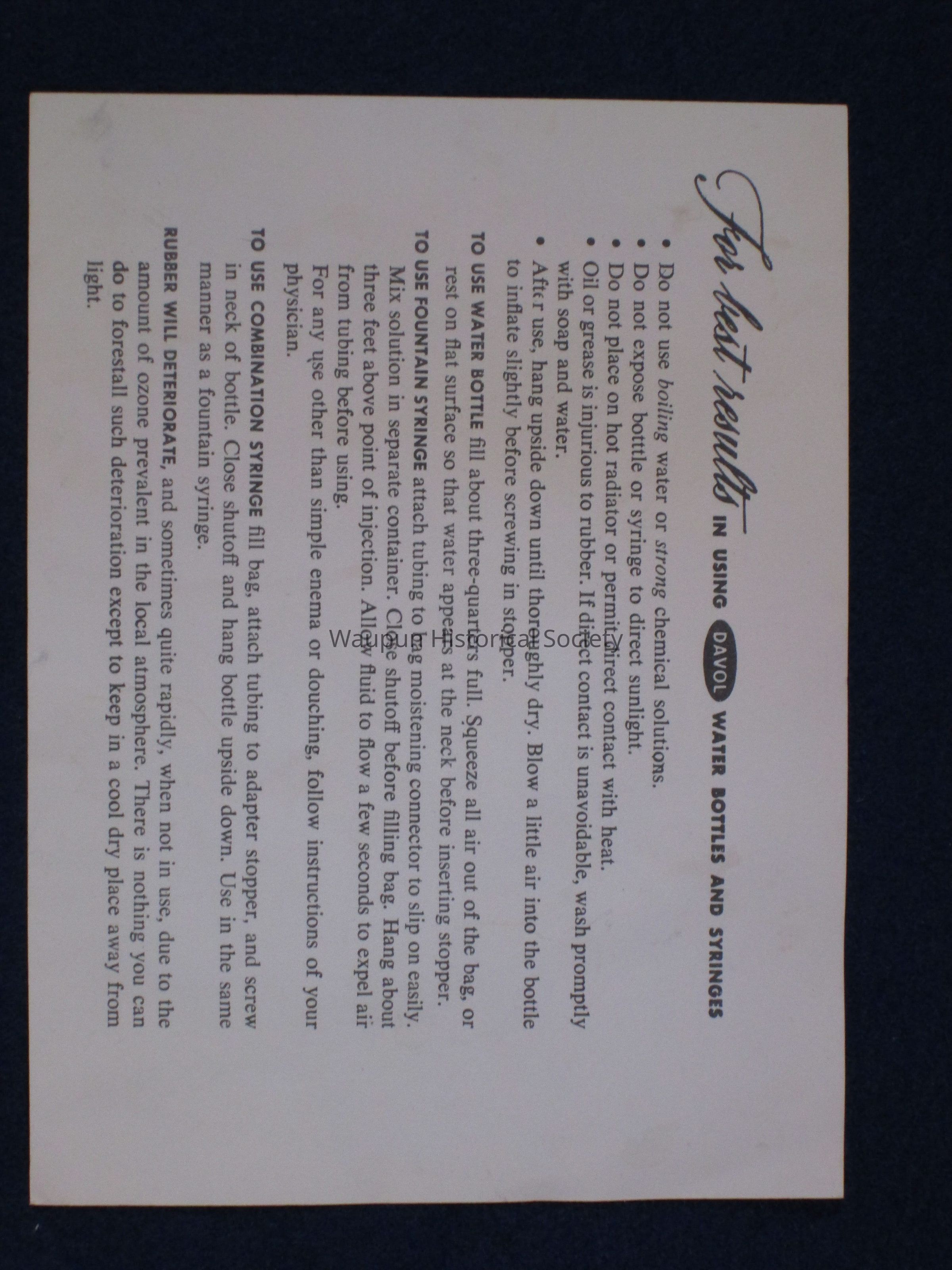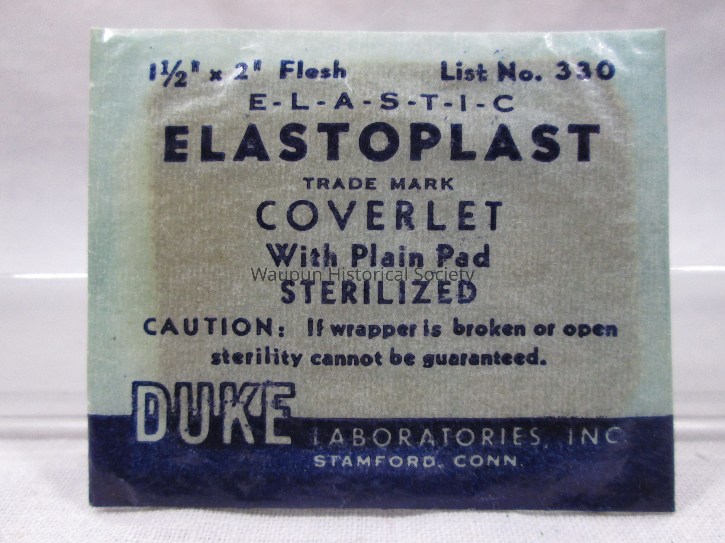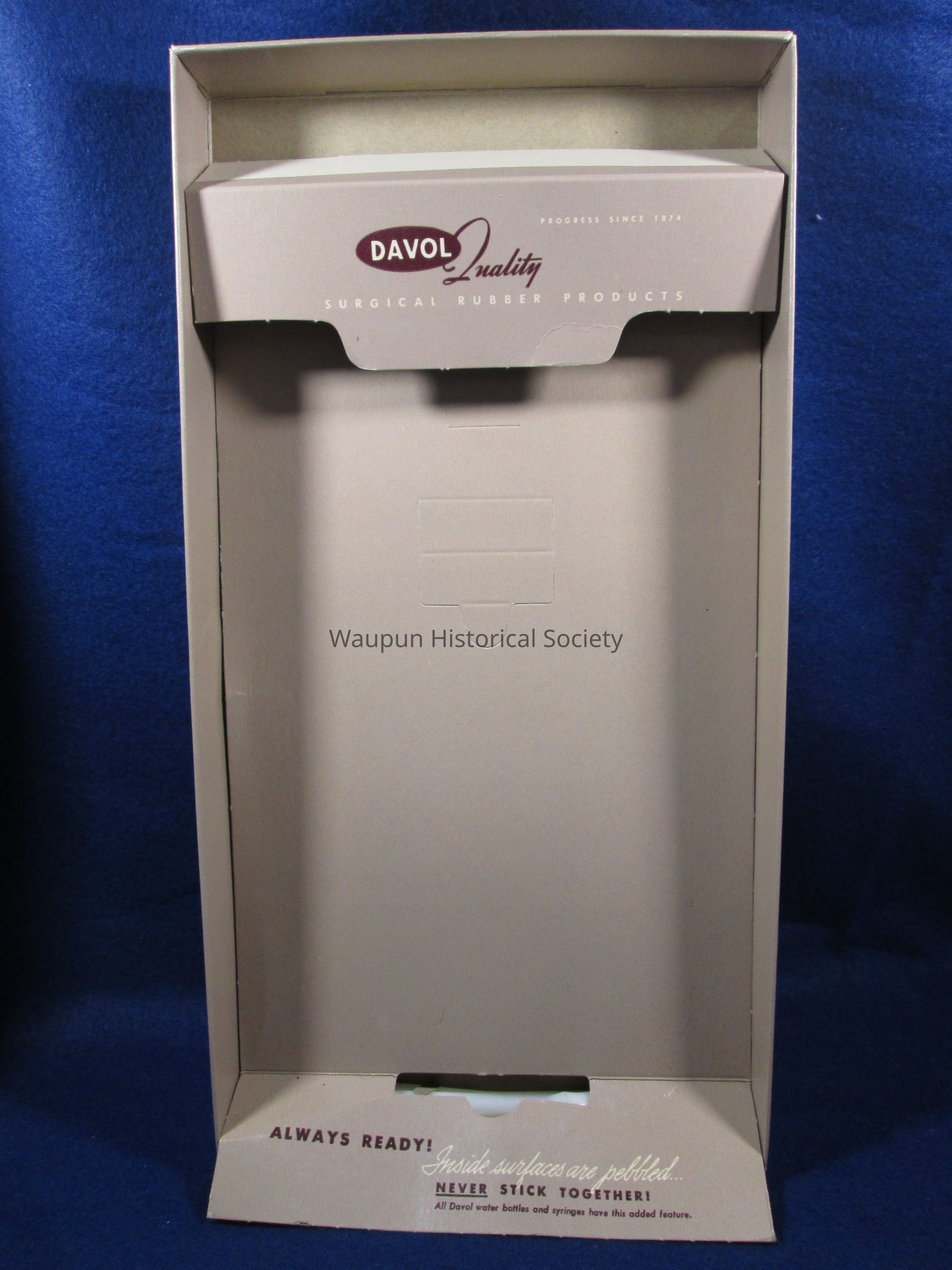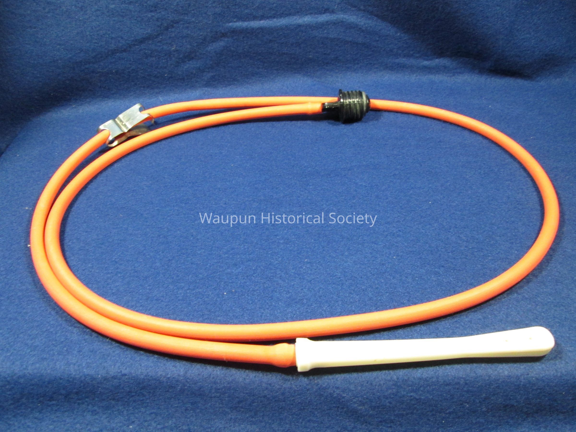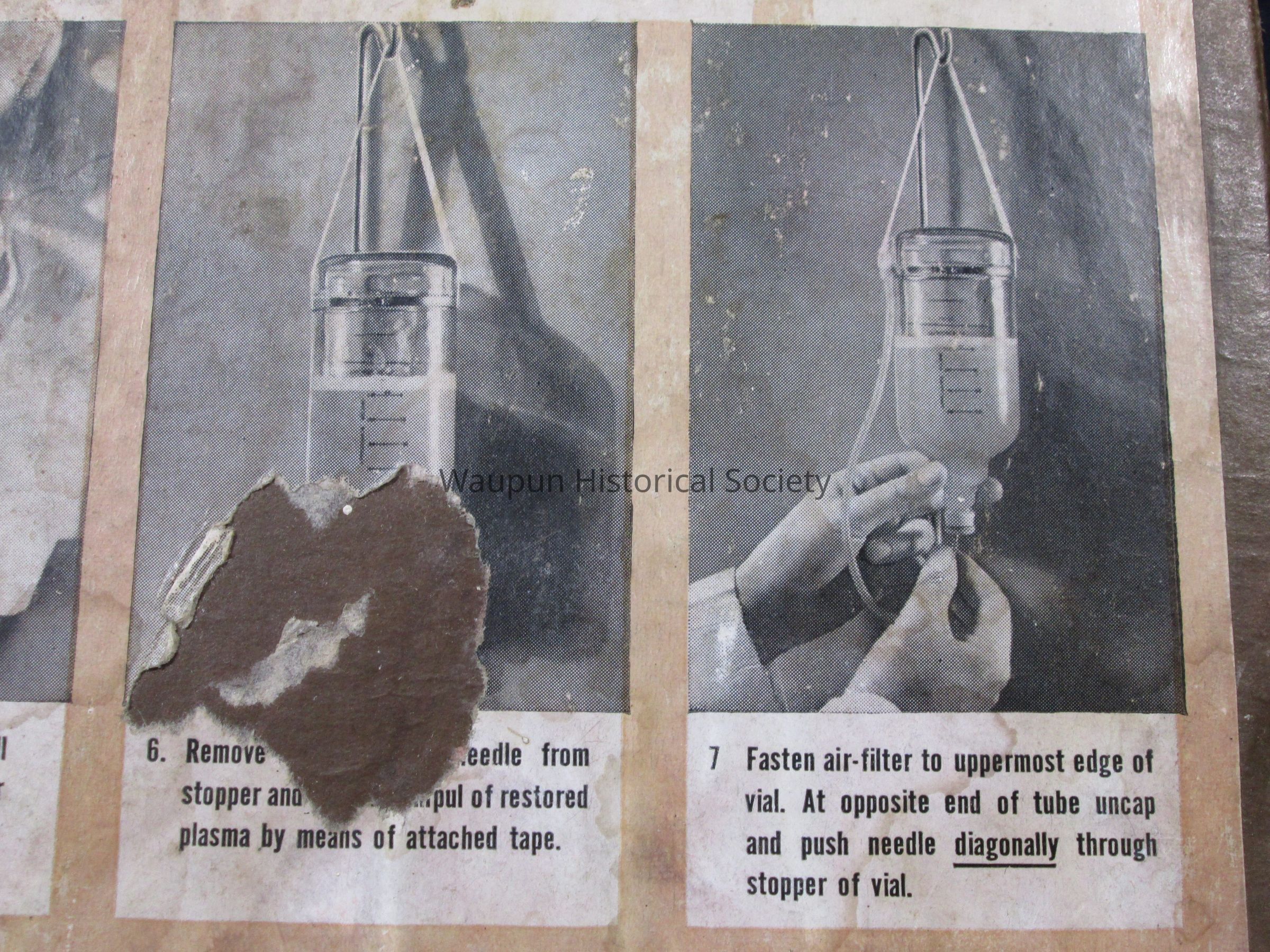 Open blade fan. Black in color, made by Westinghouse. Medical pieces including three hot water bottles and tubing. Medical pieces are red in color and made from rubber. One box of first aid items. Items include bandages, tourniquet, cleaning solutions, tongue depressor, clip, sticks, and instructions.Acquisition