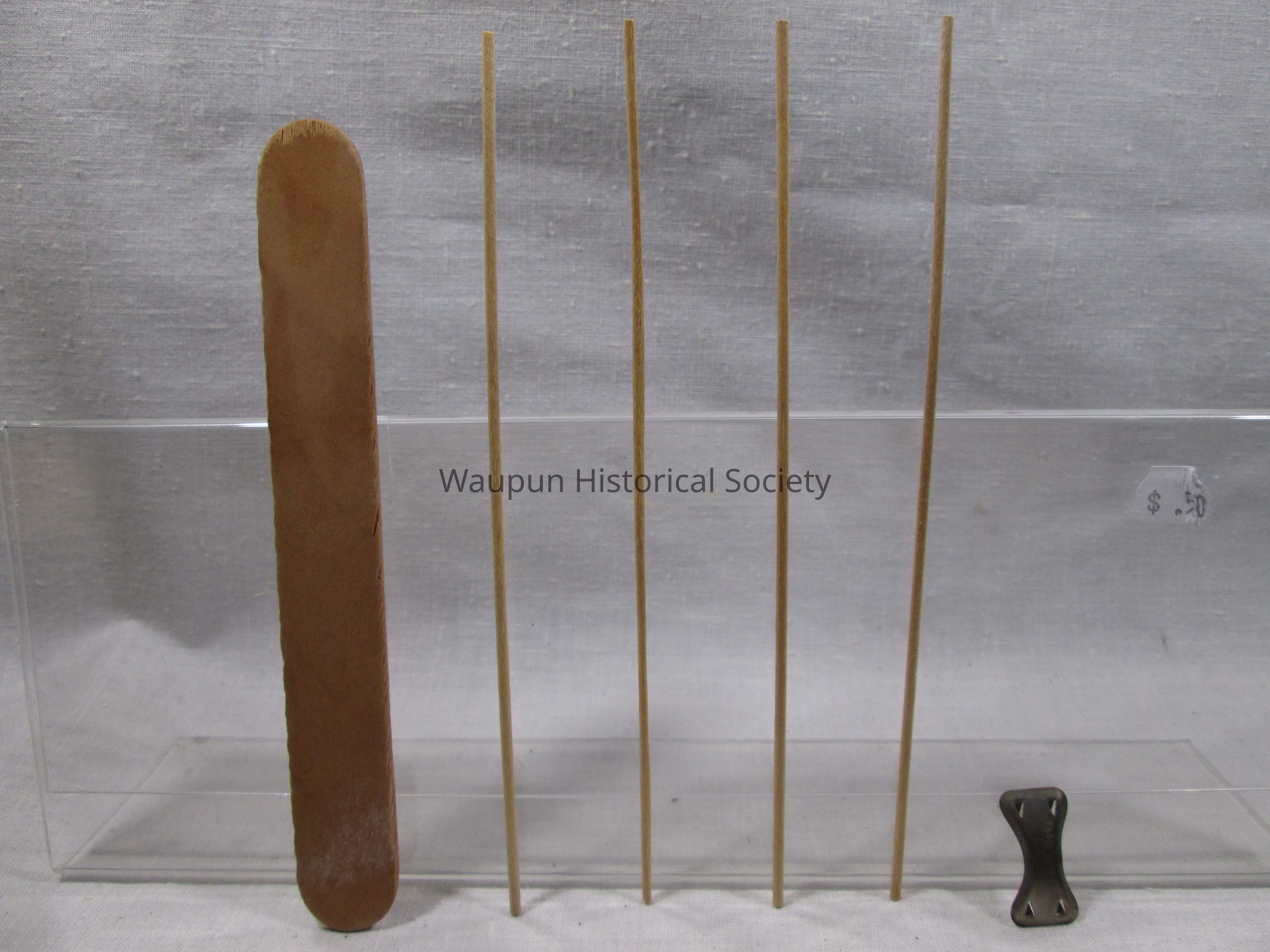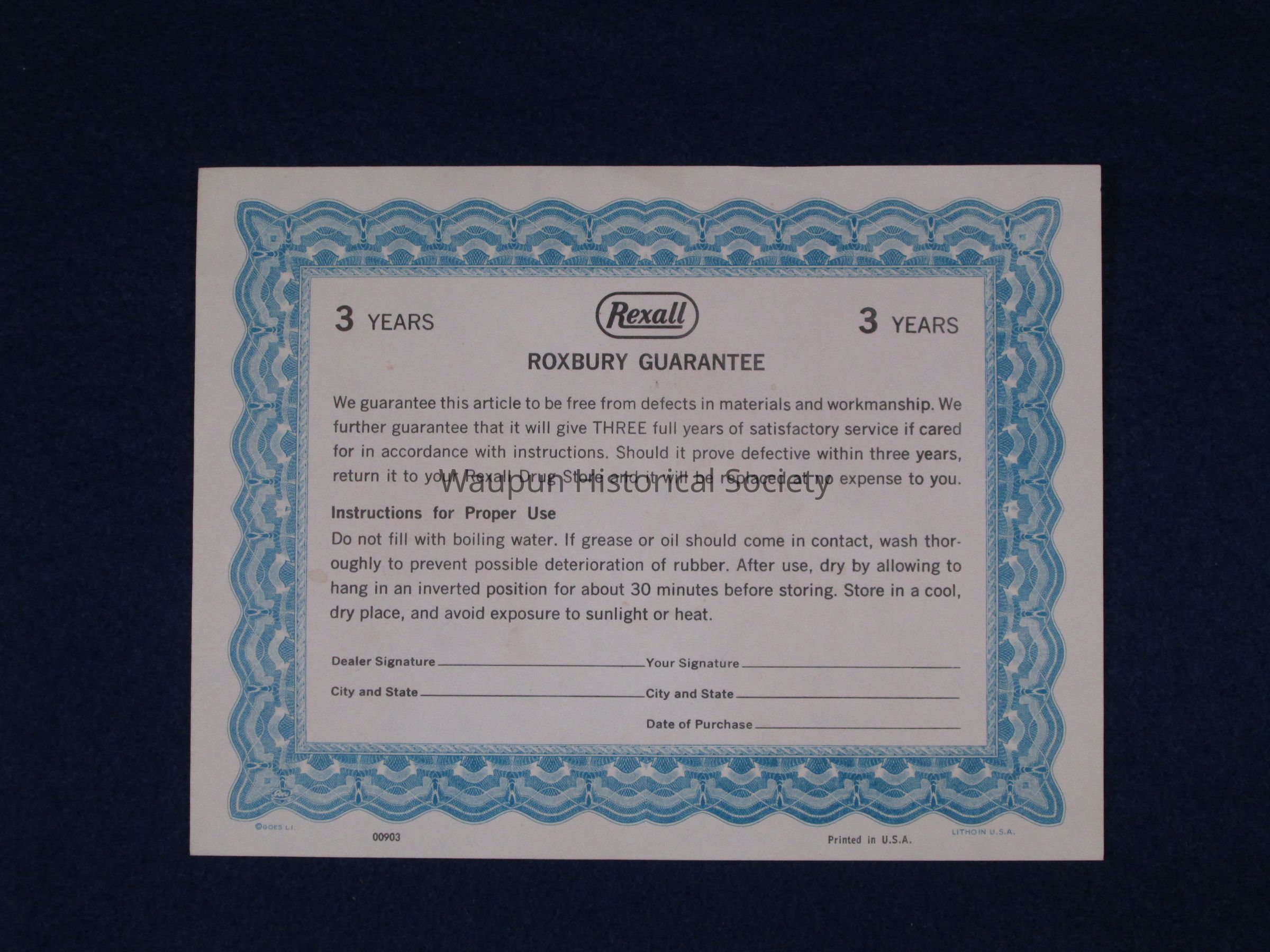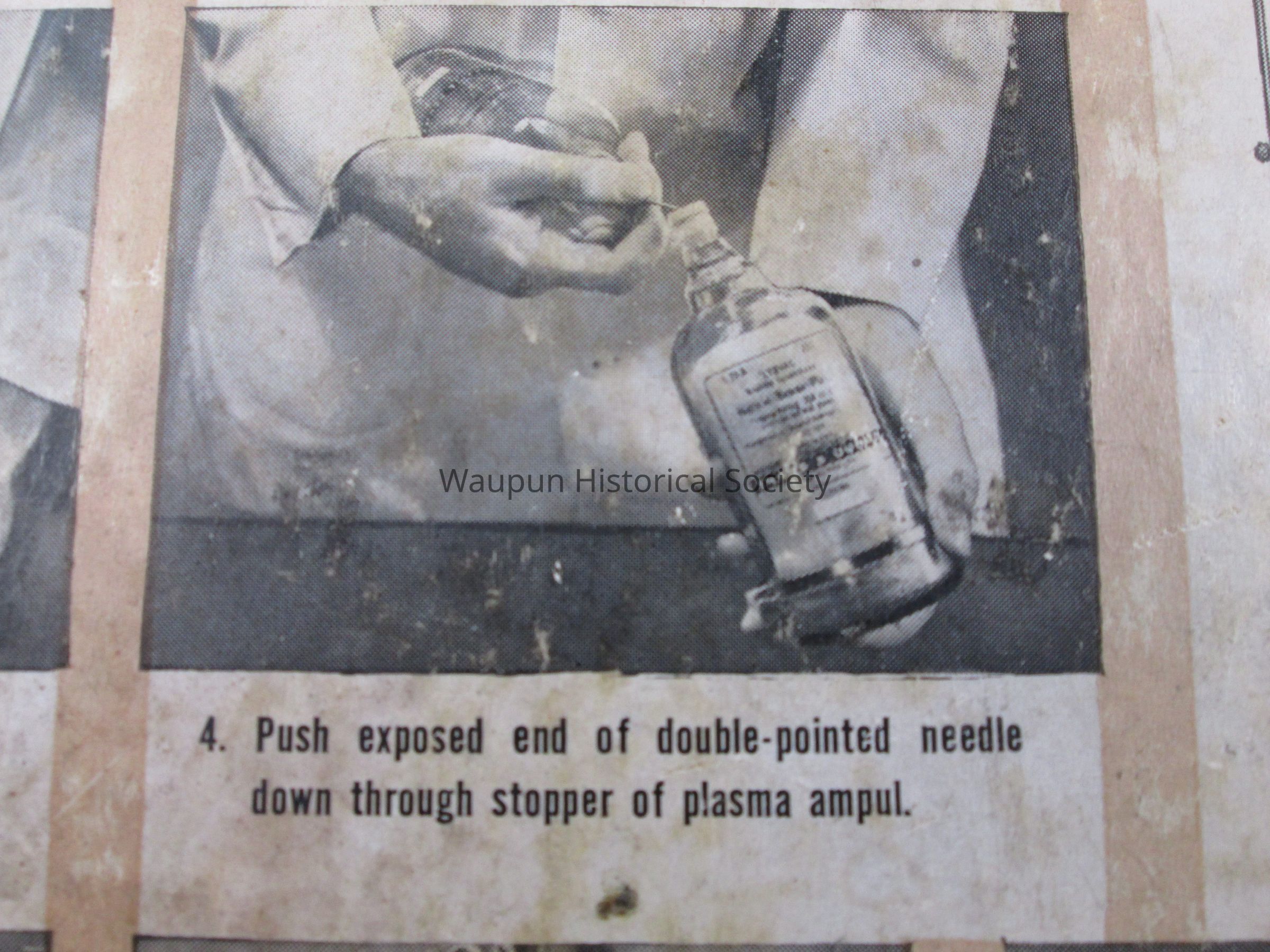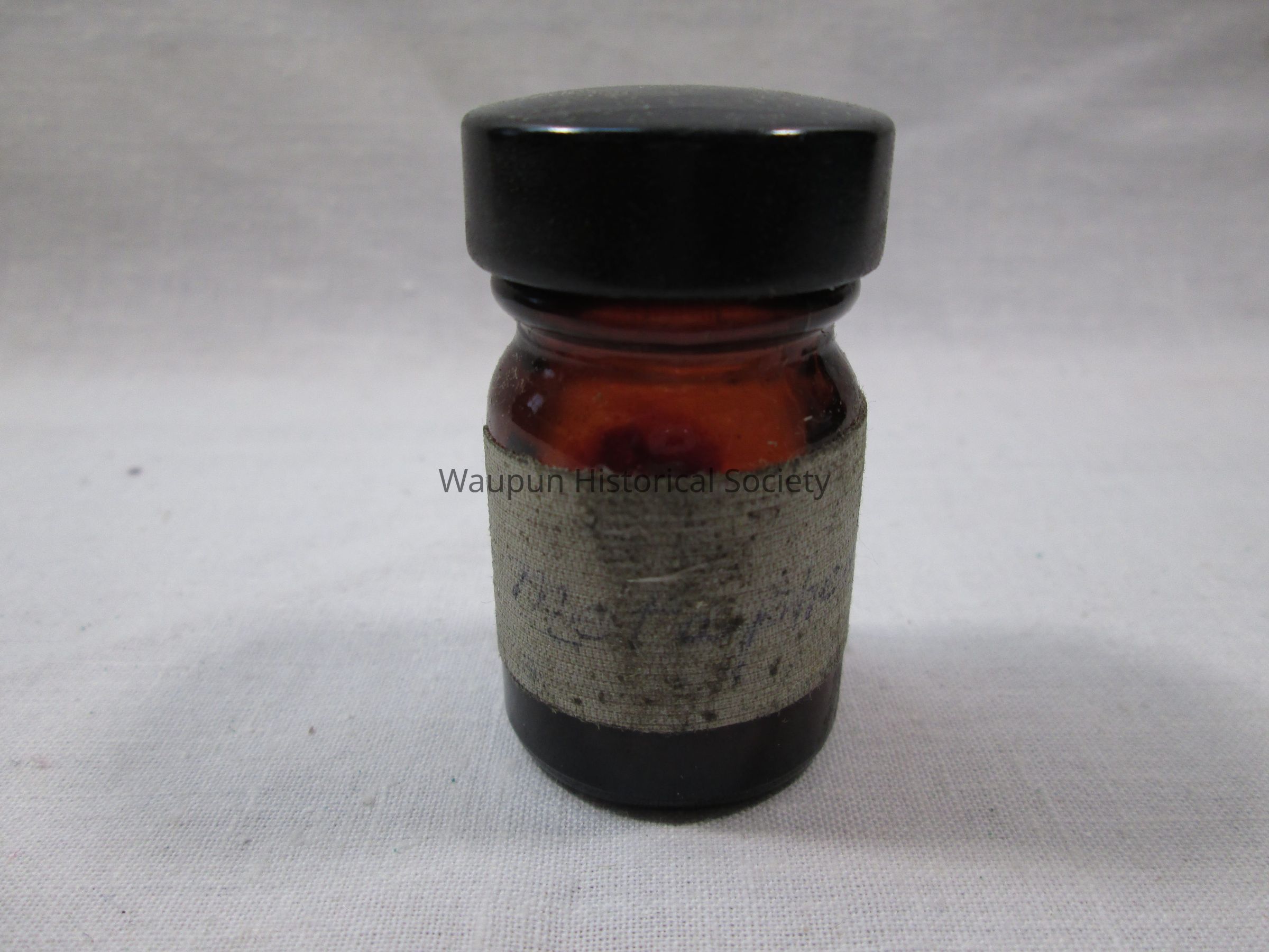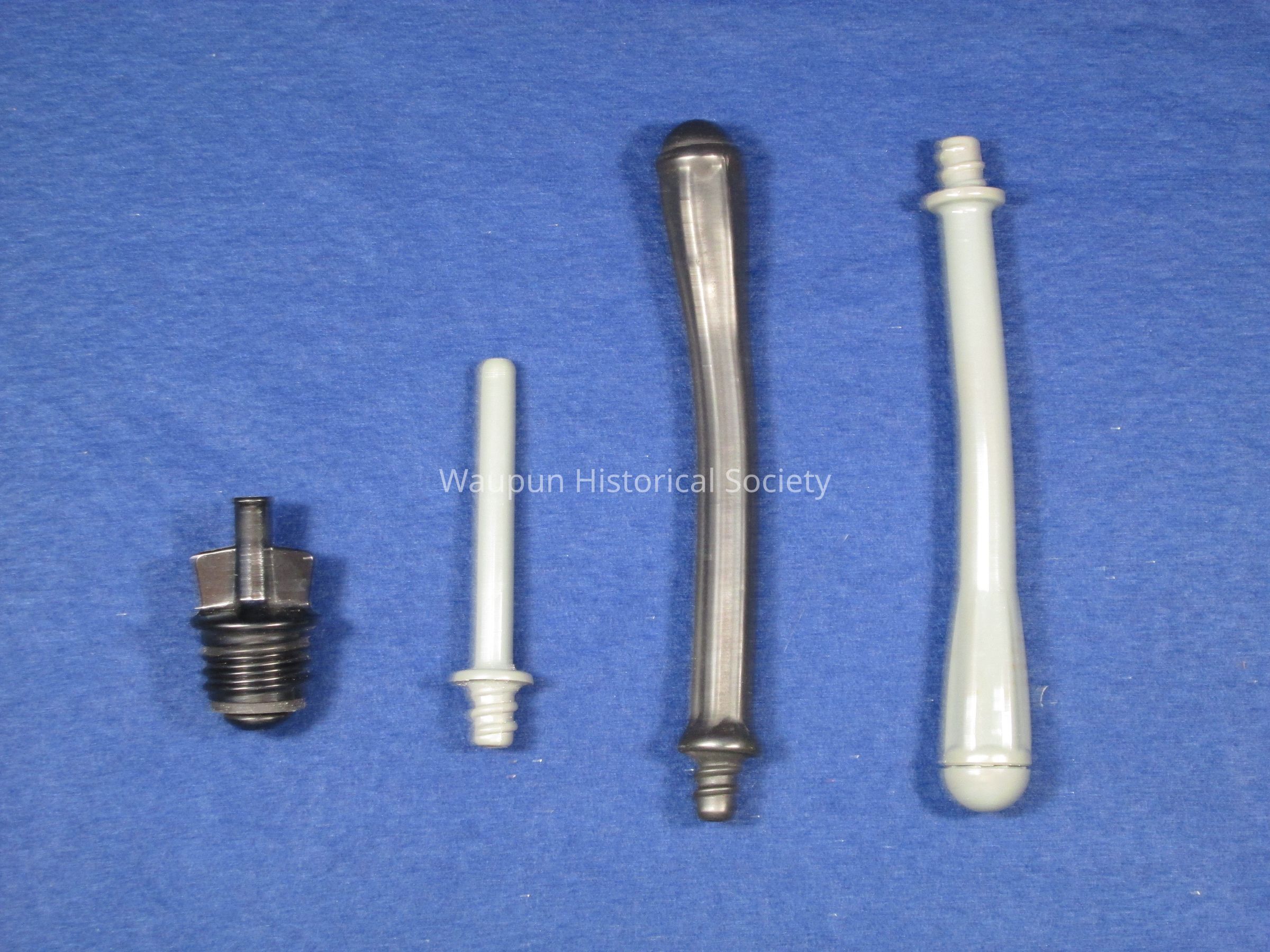 Open blade fan. Black in color, made by Westinghouse. Medical pieces including three hot water bottles and tubing. Medical pieces are red in color and made from rubber. One box of first aid items. Items include bandages, tourniquet, cleaning solutions, tongue depressor, clip, sticks, and instructions.Acquisition