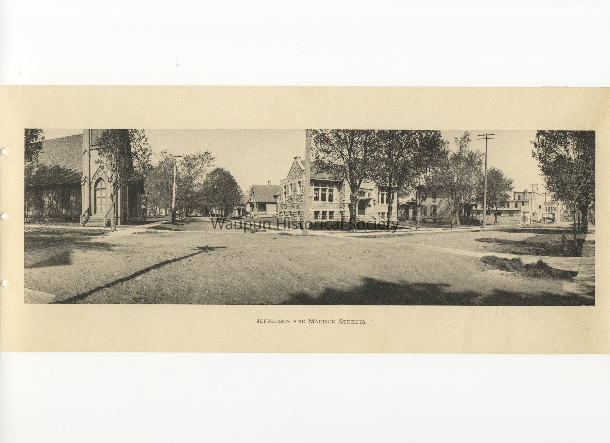 Panoram Views of Waupun. This is a photo taken from a photo booklet with 17 panoramic photos of Waupun Wisconsin. The booklet is entitled "Panoram Views of Waupun, Wisconsin" copyright date of 1906, by J.A. Kastein, Jr. Waupun, Wisconsin, and published by "The Albertype Co., Brooklyn, N.Y.