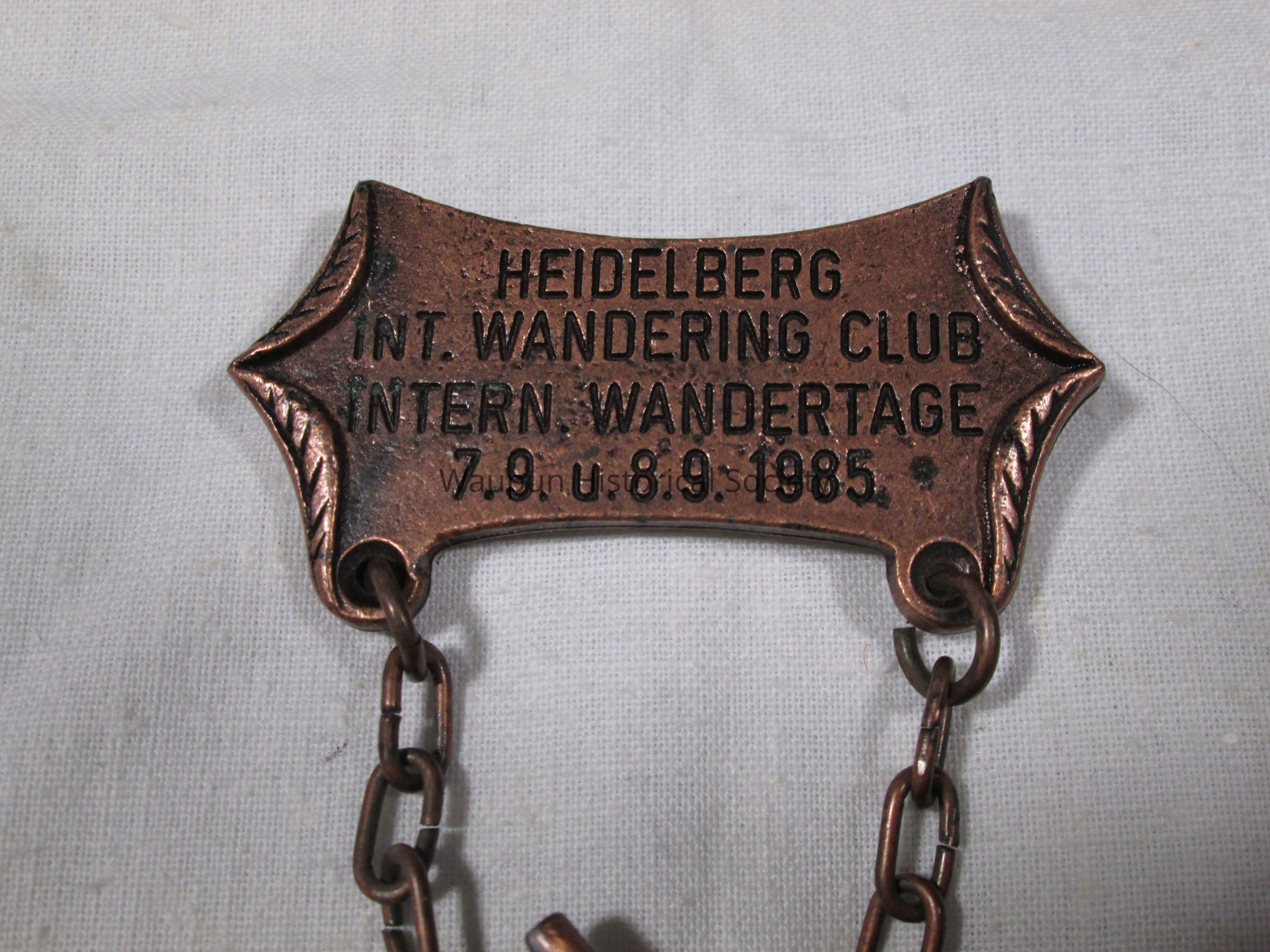 1 - Pin Heidelberg Int. Wandering Club Intern, Wandertage 7.9. u. 8.9; 1985. End of the Trail at the bottom and copper in color.Acquisition