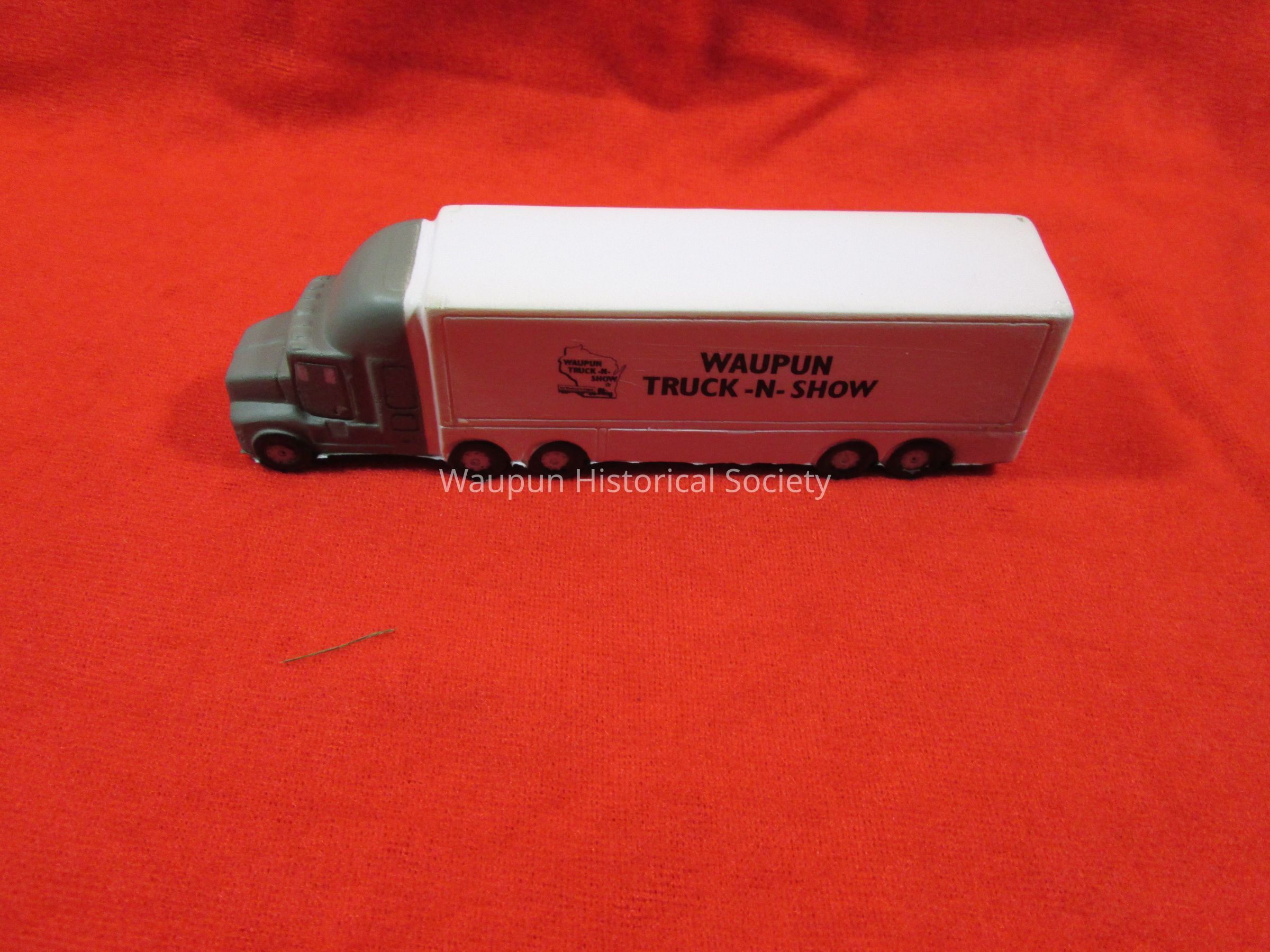 Semi Truck 2 1/2 inch cab and 4 1/2 inch trailer Gray and White in Color with the Waupun Truck -N- ShowAcquisition