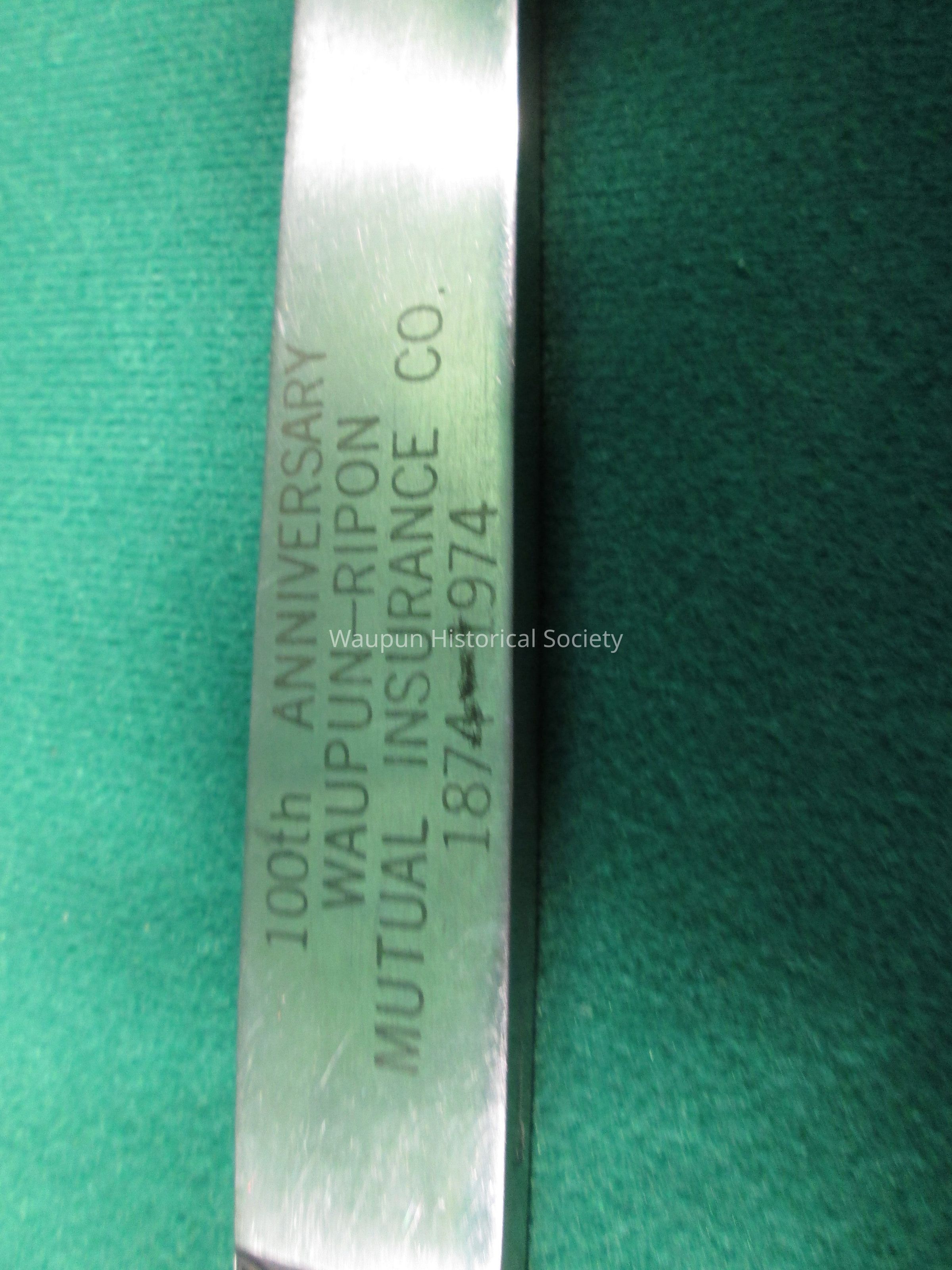 Letter Opener, Waupun-Ripon Mutual Insurance Co., 100th AnniversaryEntry/Object ID