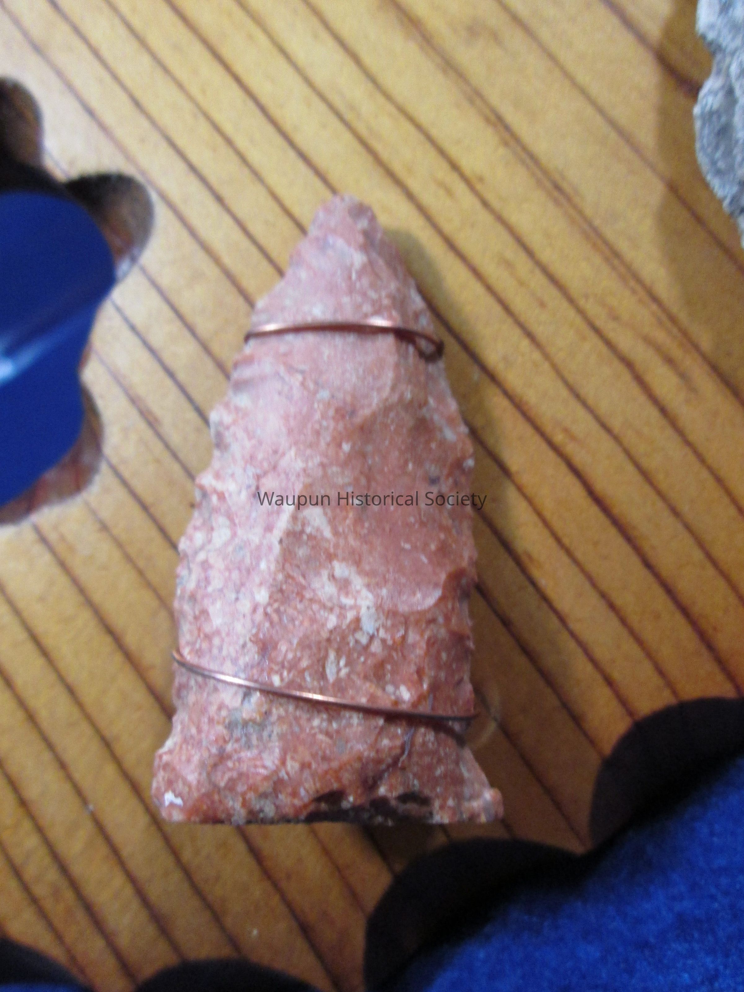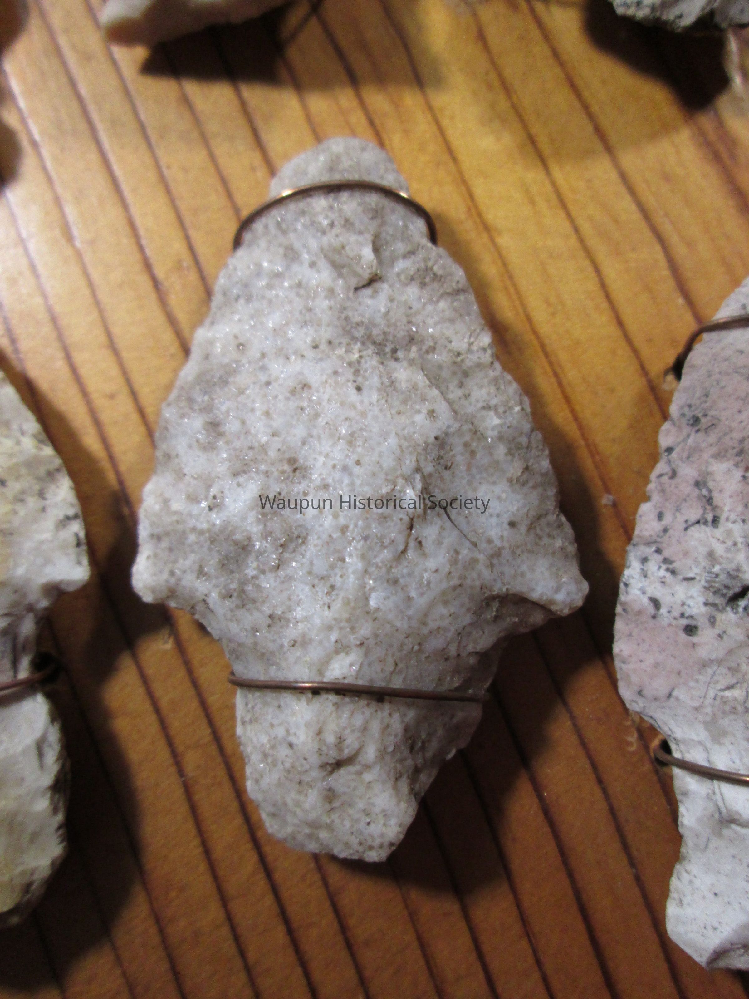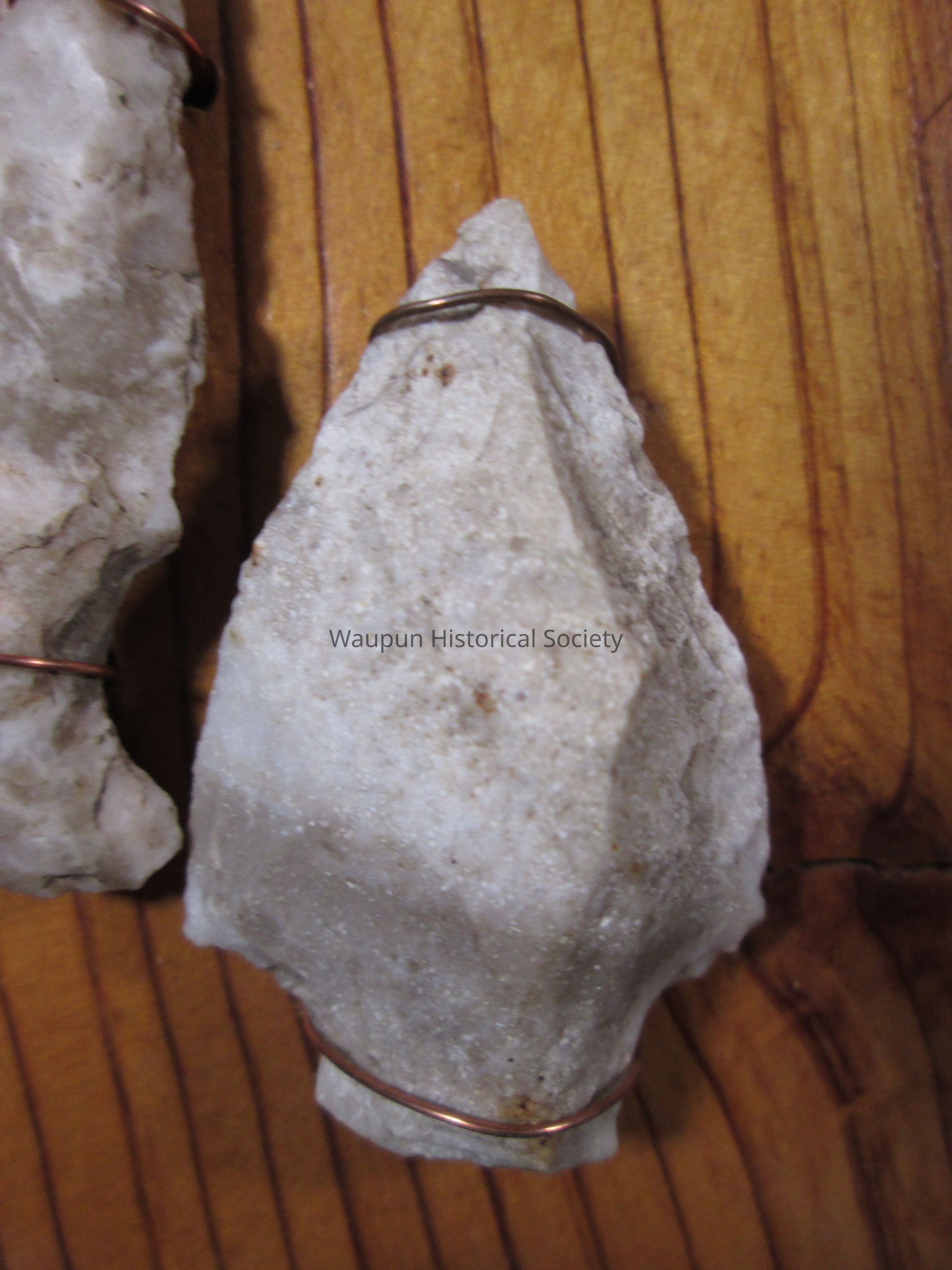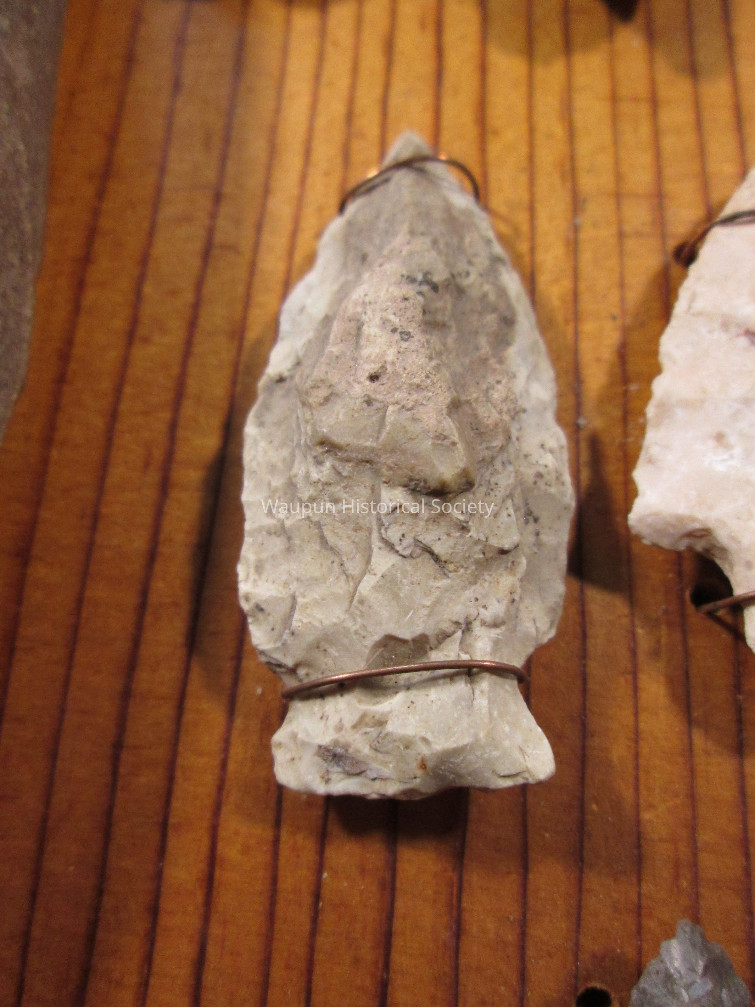 Recieved 28 groups of Native American artifacts. The artifacts are mounted on wood frames or located in a wooden box. Artifacts include axes, hammers, knives, points, arrowheads, scrappers, and drills.Acquisition