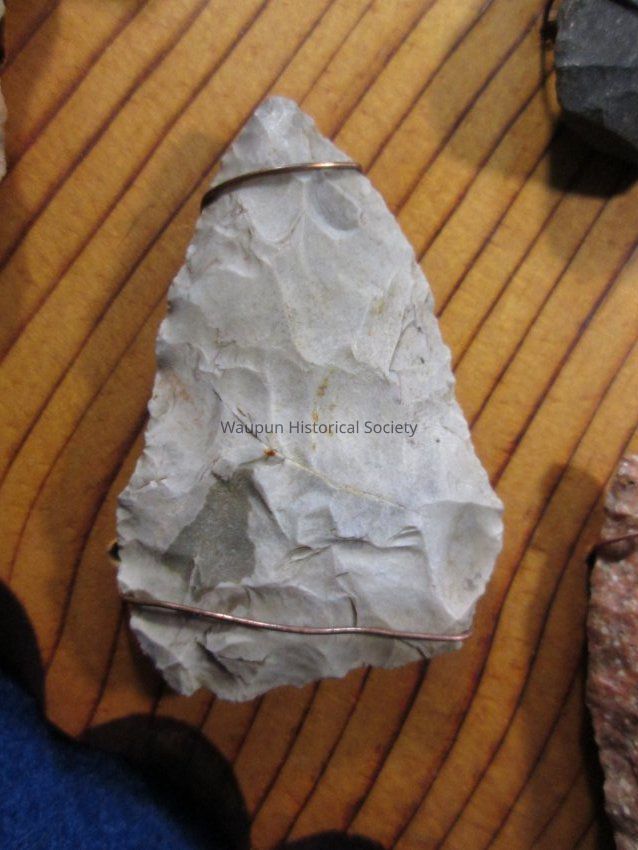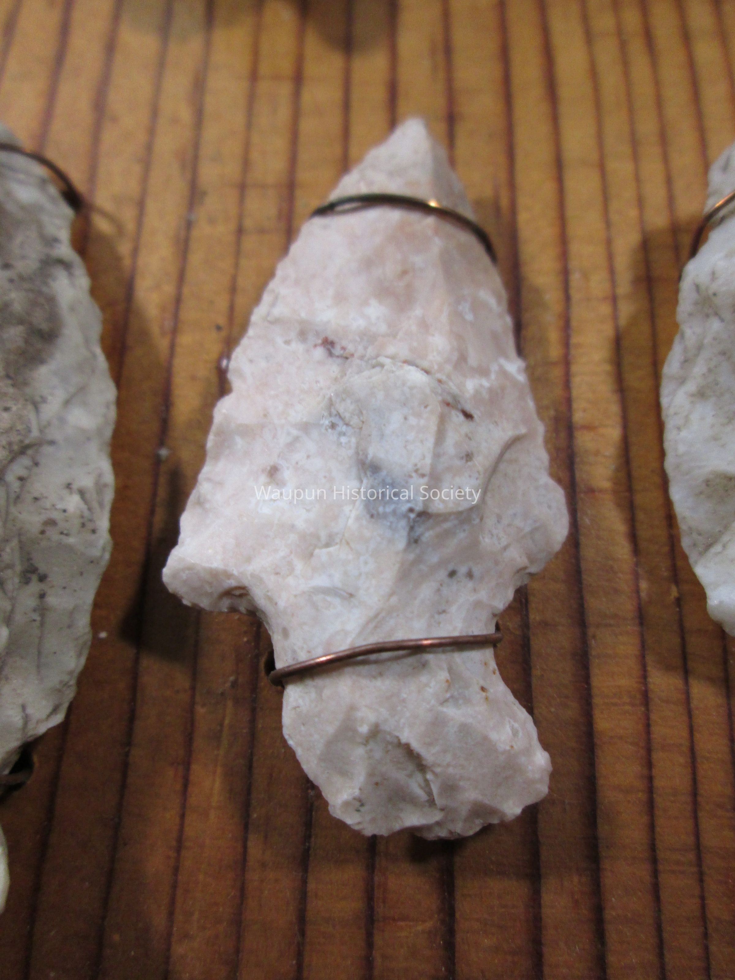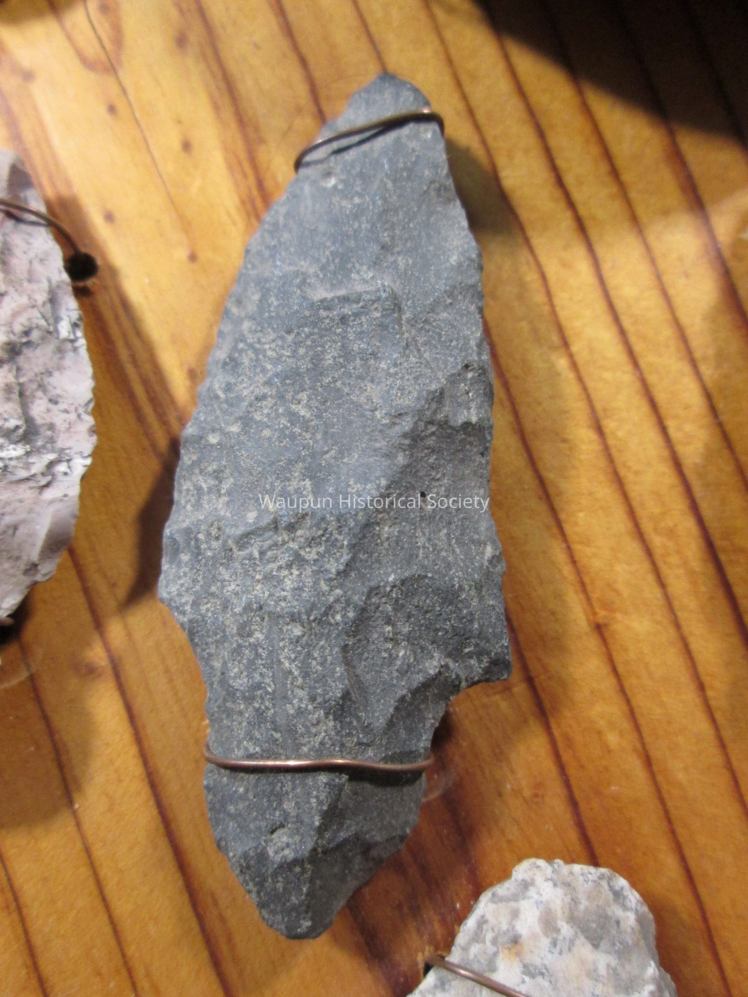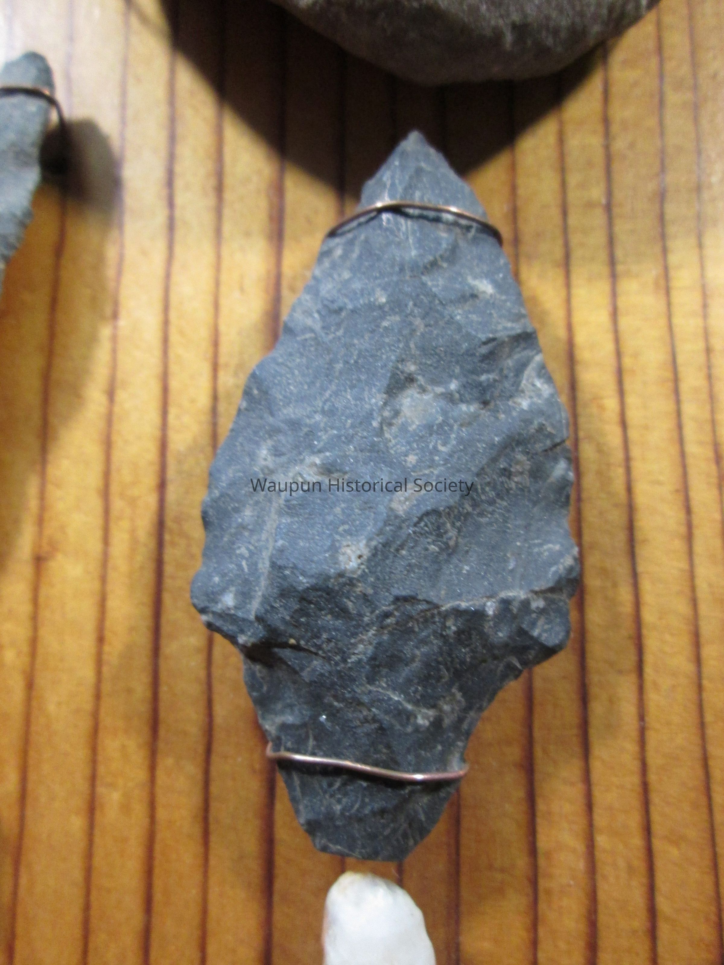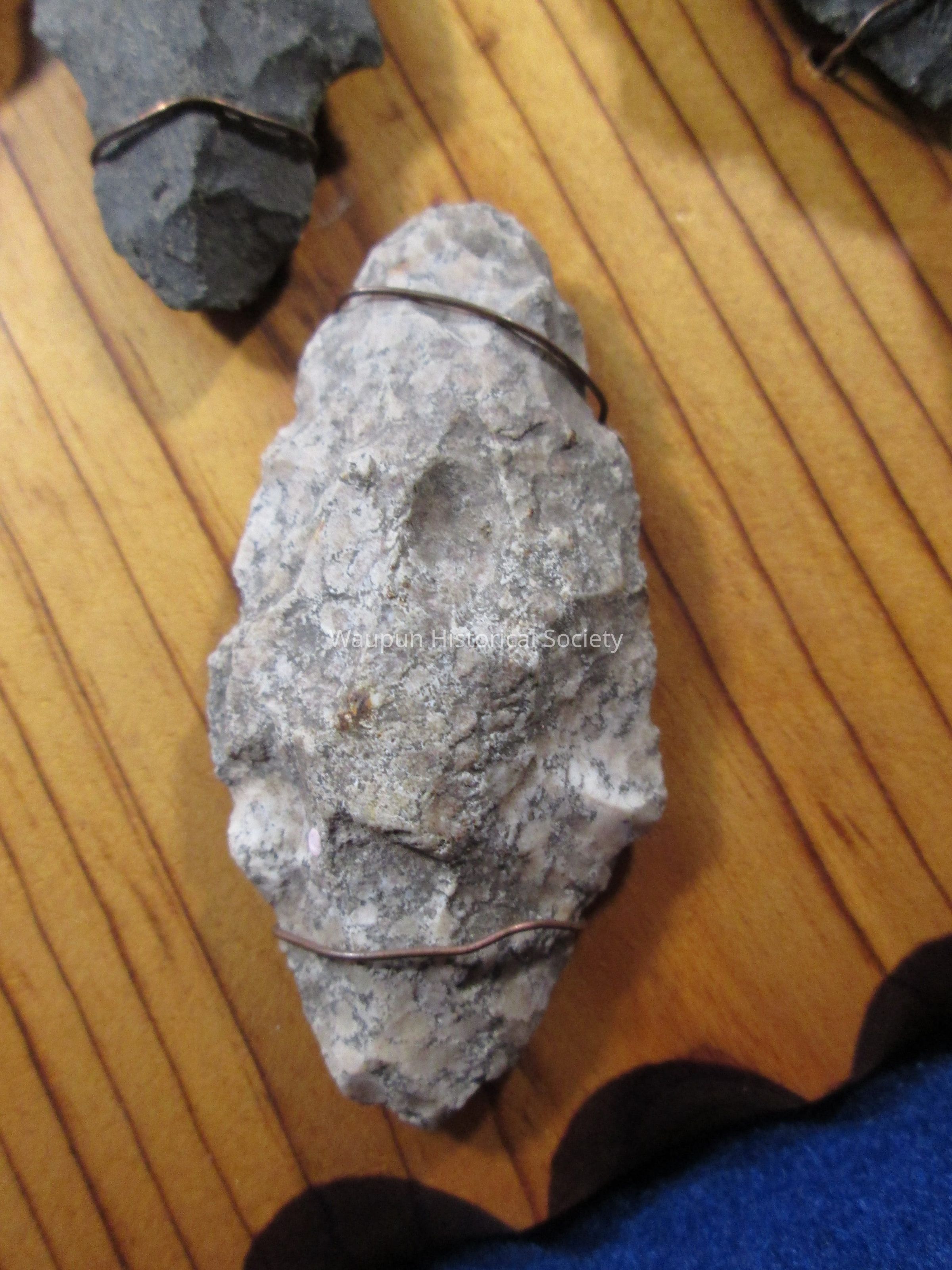 Recieved 28 groups of Native American artifacts. The artifacts are mounted on wood frames or located in a wooden box. Artifacts include axes, hammers, knives, points, arrowheads, scrappers, and drills.Acquisition