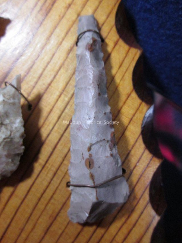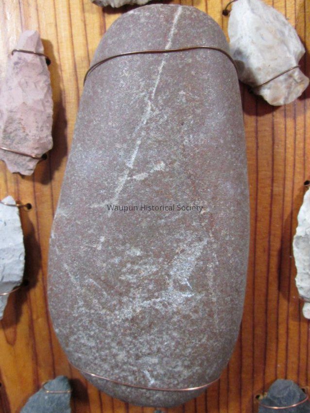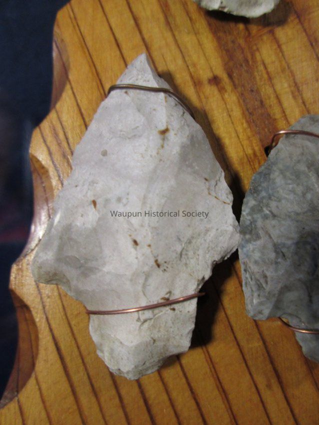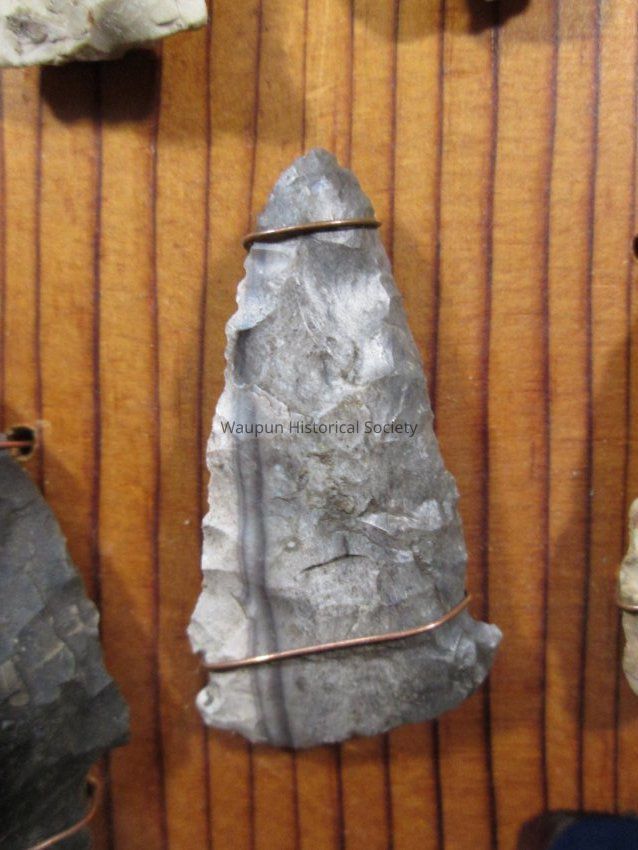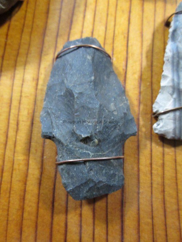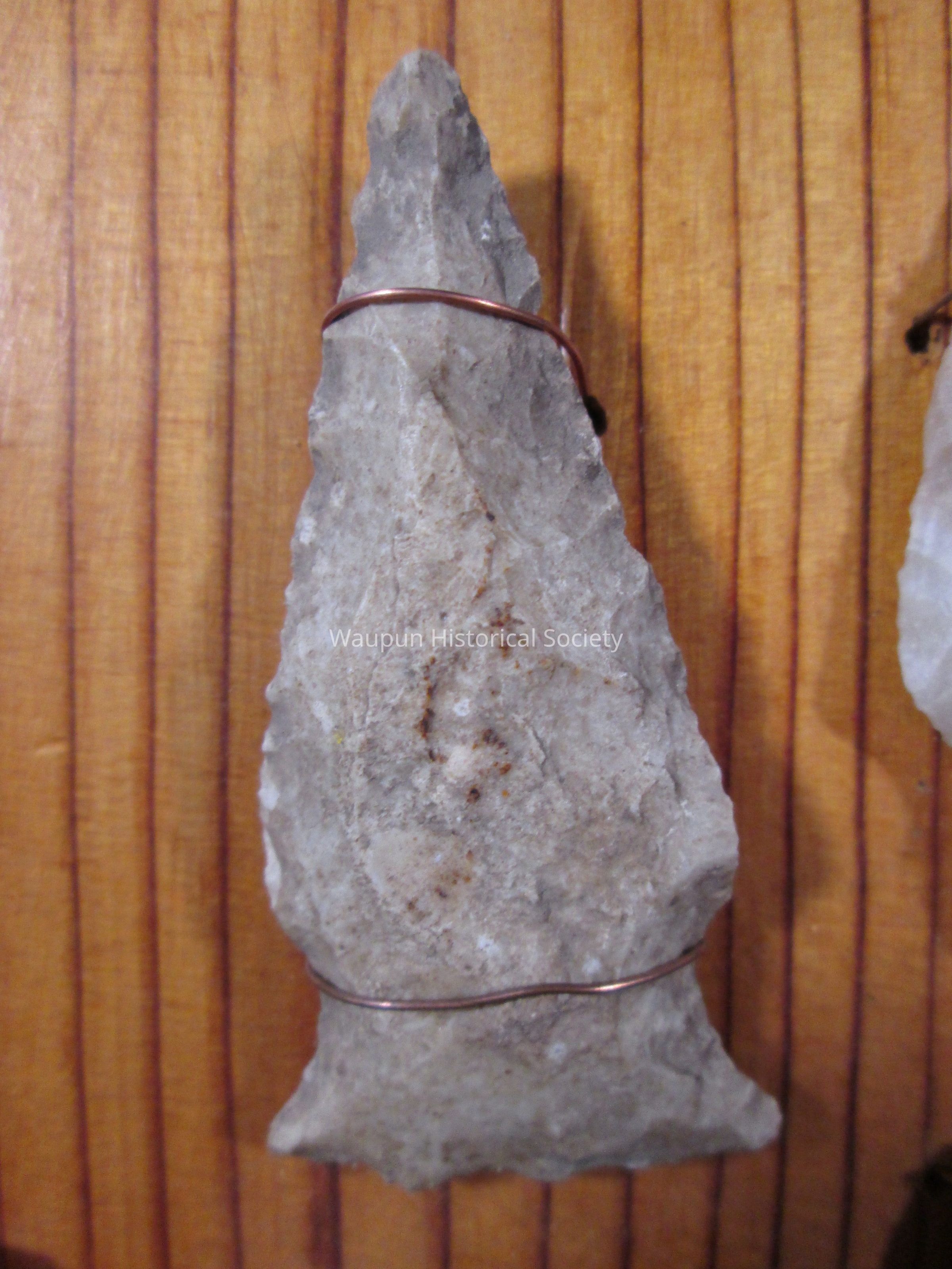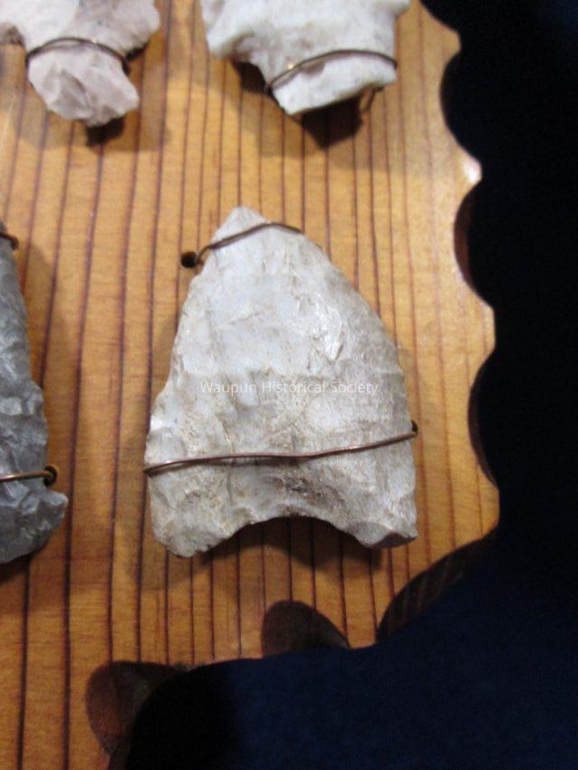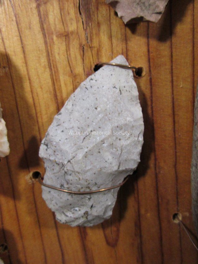 Recieved 28 groups of Native American artifacts. The artifacts are mounted on wood frames or located in a wooden box. Artifacts include axes, hammers, knives, points, arrowheads, scrappers, and drills.Acquisition
