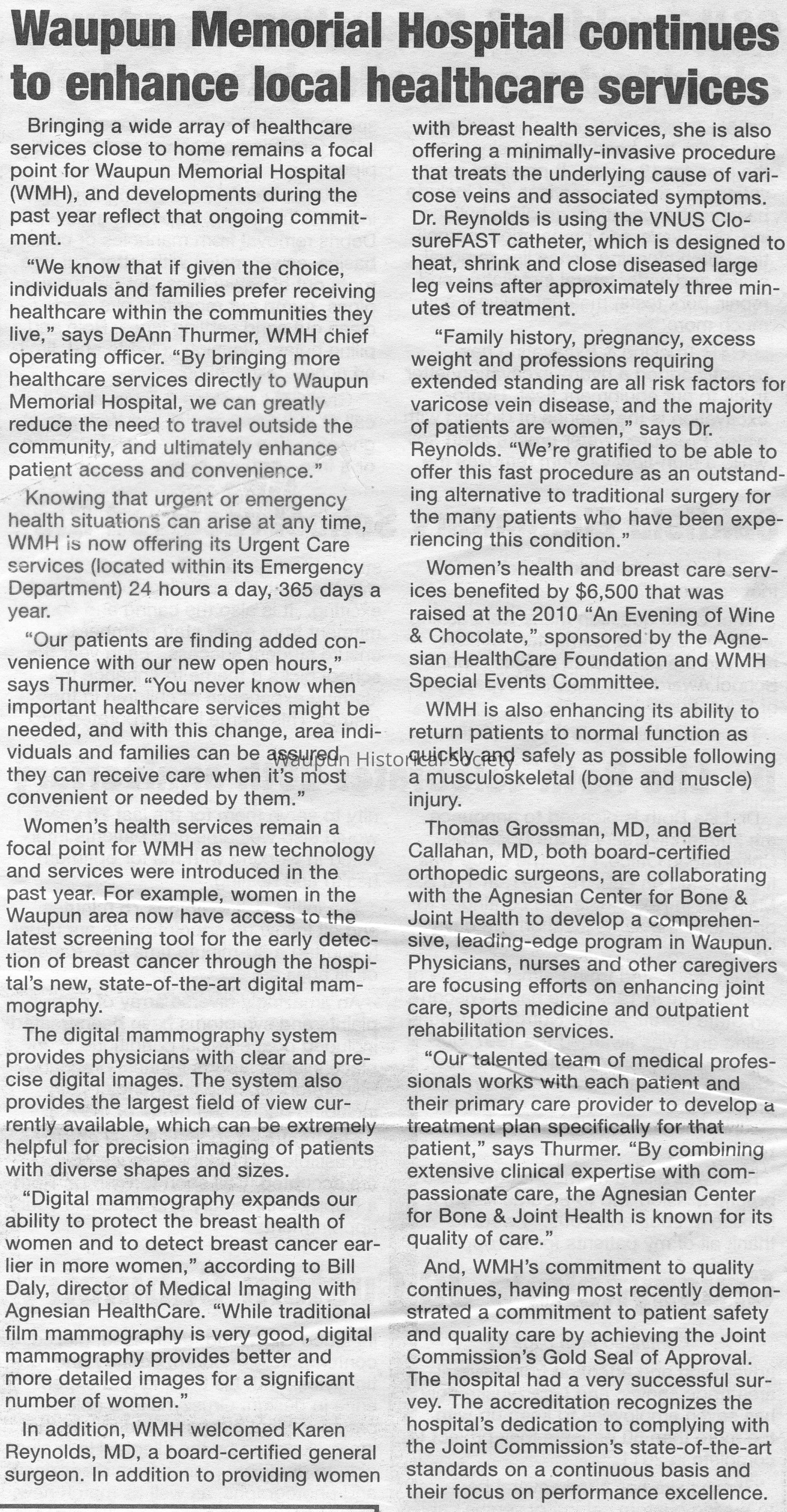 WQMH Enhances Healthcare Services from the Waupun/Lomira Progress February 23, 2011