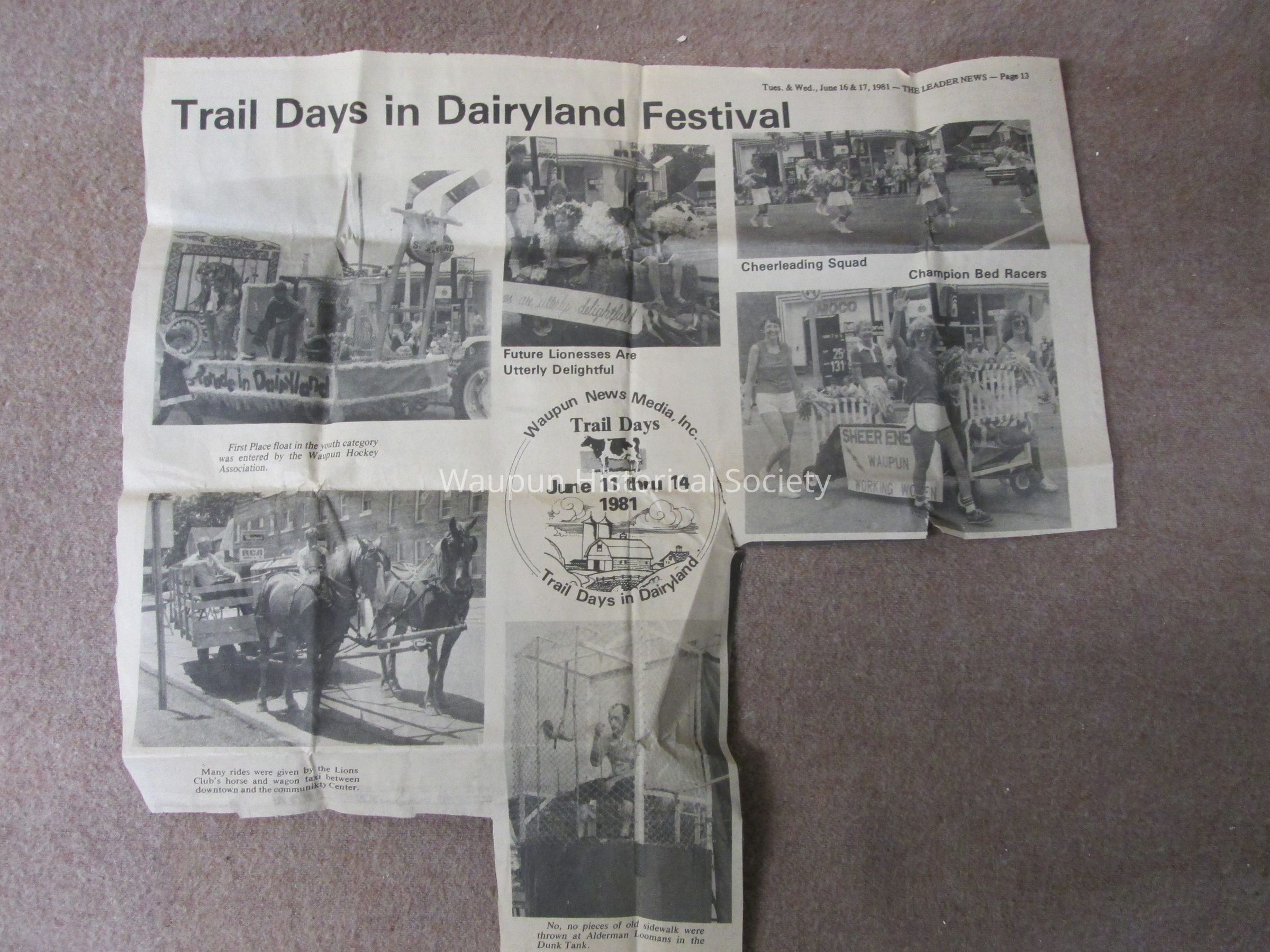 Trail Days in Dairyland Festival taken f rom The Leader News of June 16-17, 1981.