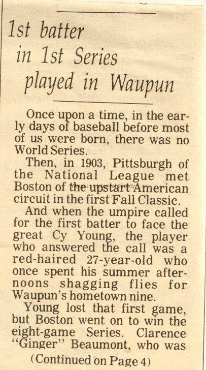 And when the umpire called for the first batter to face the great Cy Young, the player who answered the call was a red-haired 27-year-old who once spent his summer afternoons shagging flies for Waupun's hometown nine.