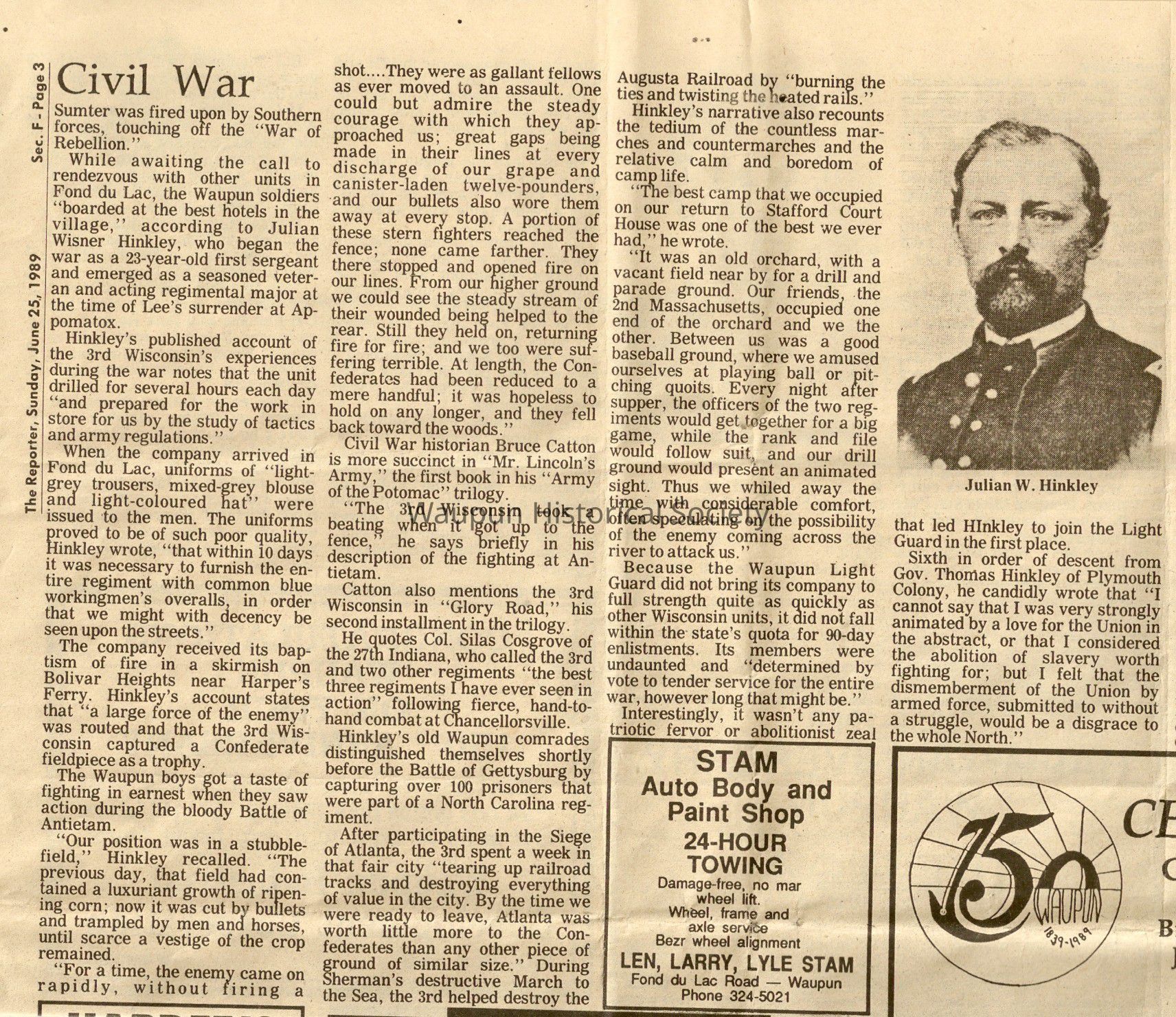 Waupun Sesquicentennial Edition from The Fond du Lac Reporter of Sunday, June 25, 1989.