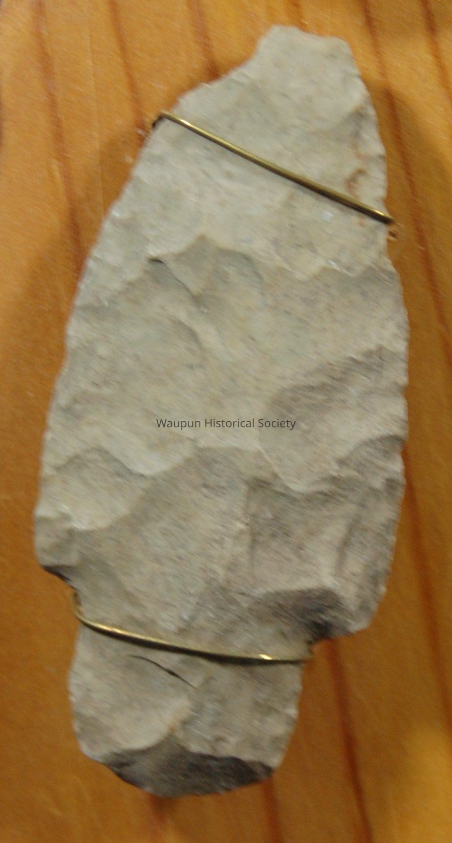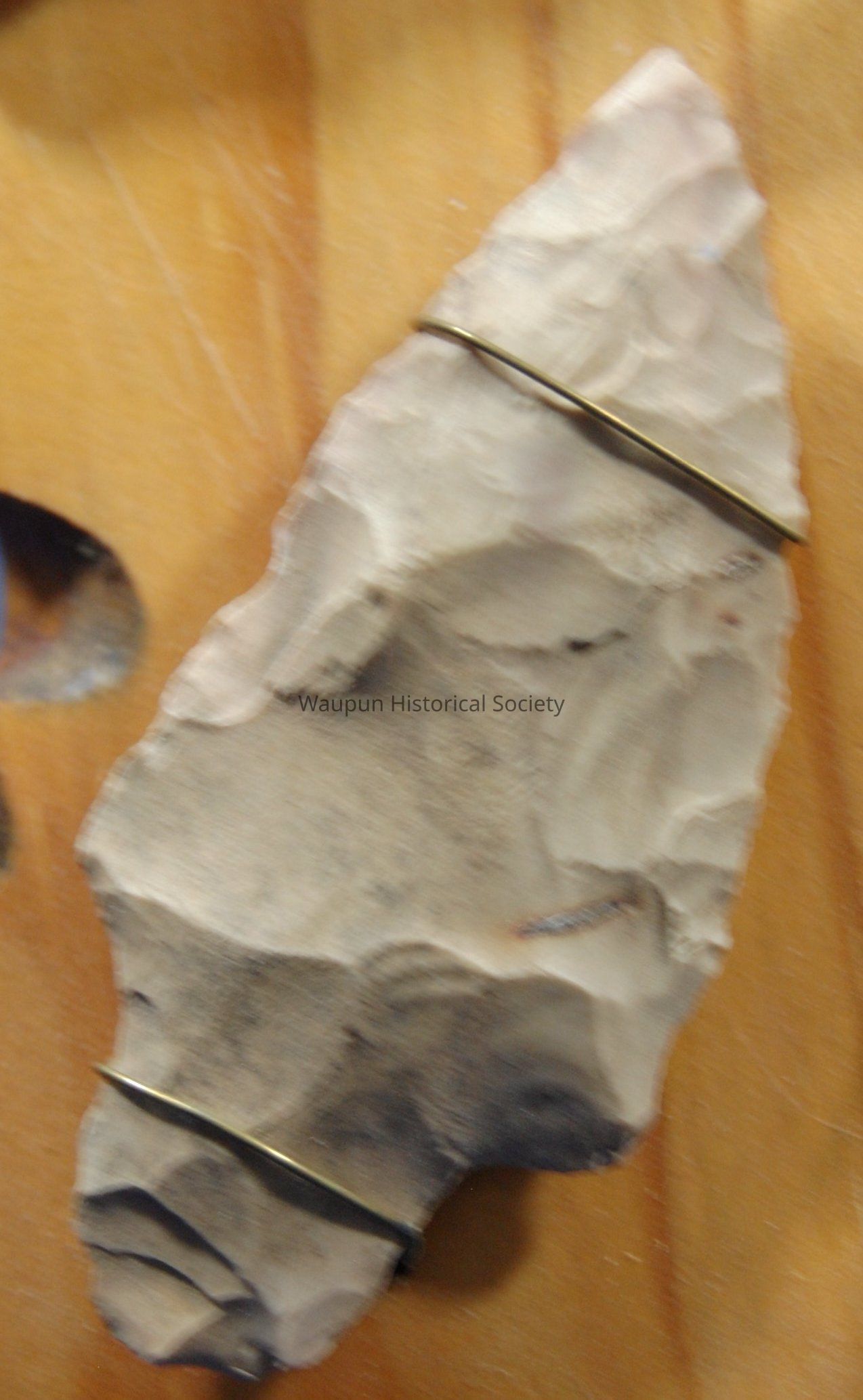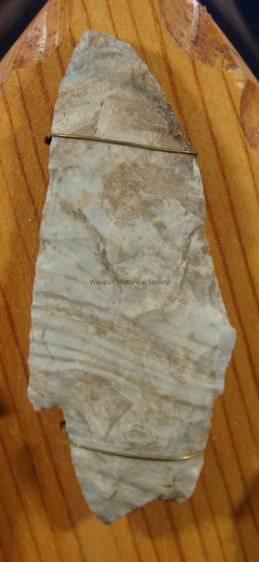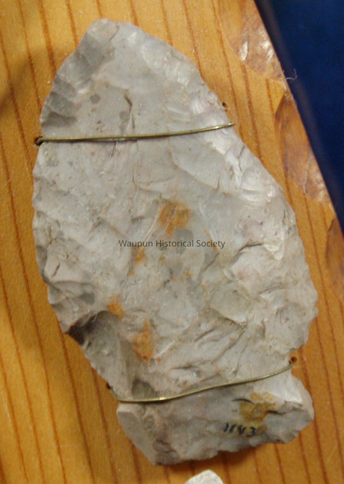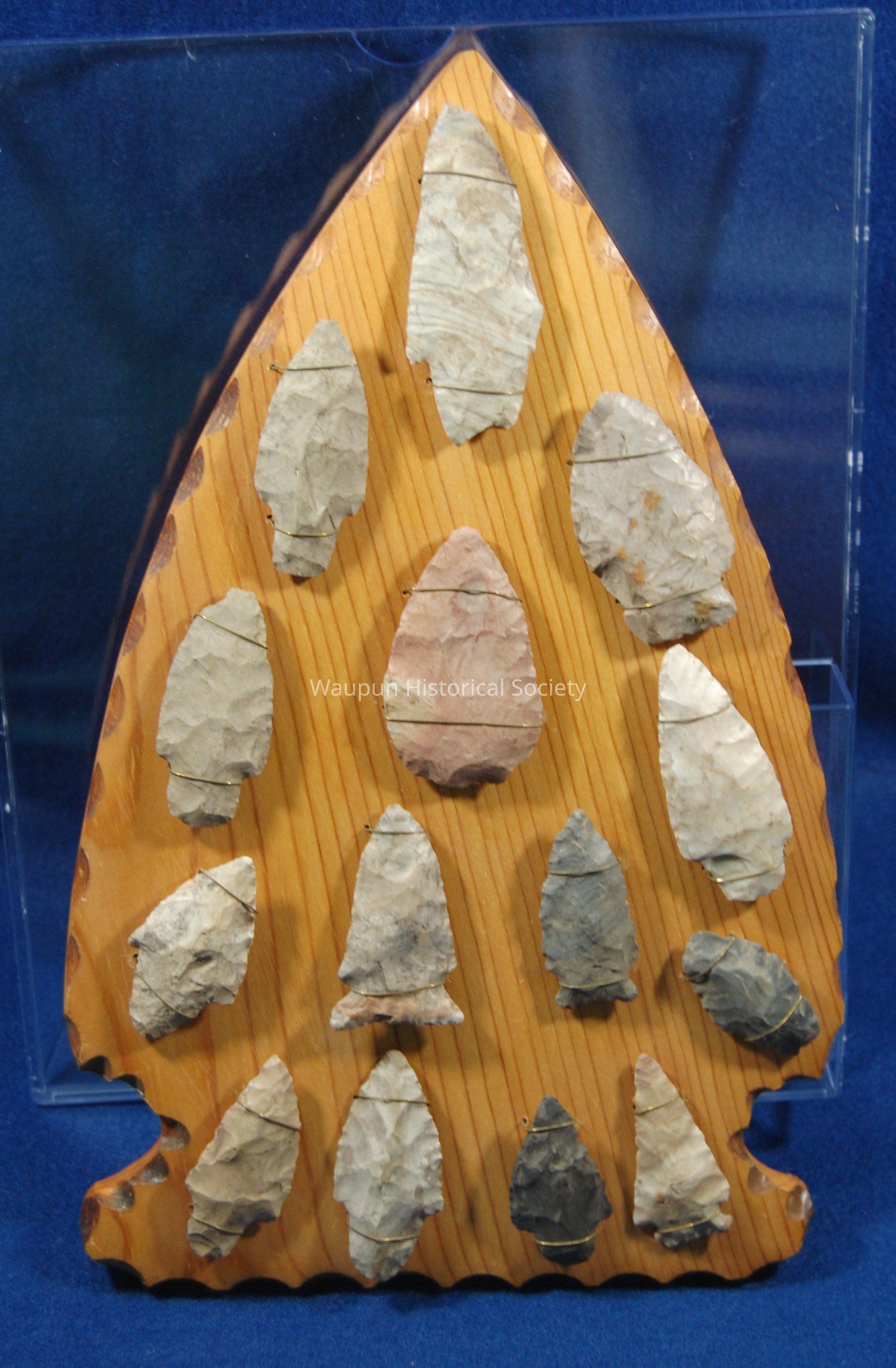 Recieved 28 groups of Native American artifacts. The artifacts are mounted on wood frames or located in a wooden box. Artifacts include axes, hammers, knives, points, arrowheads, scrappers, and drills.Acquisition