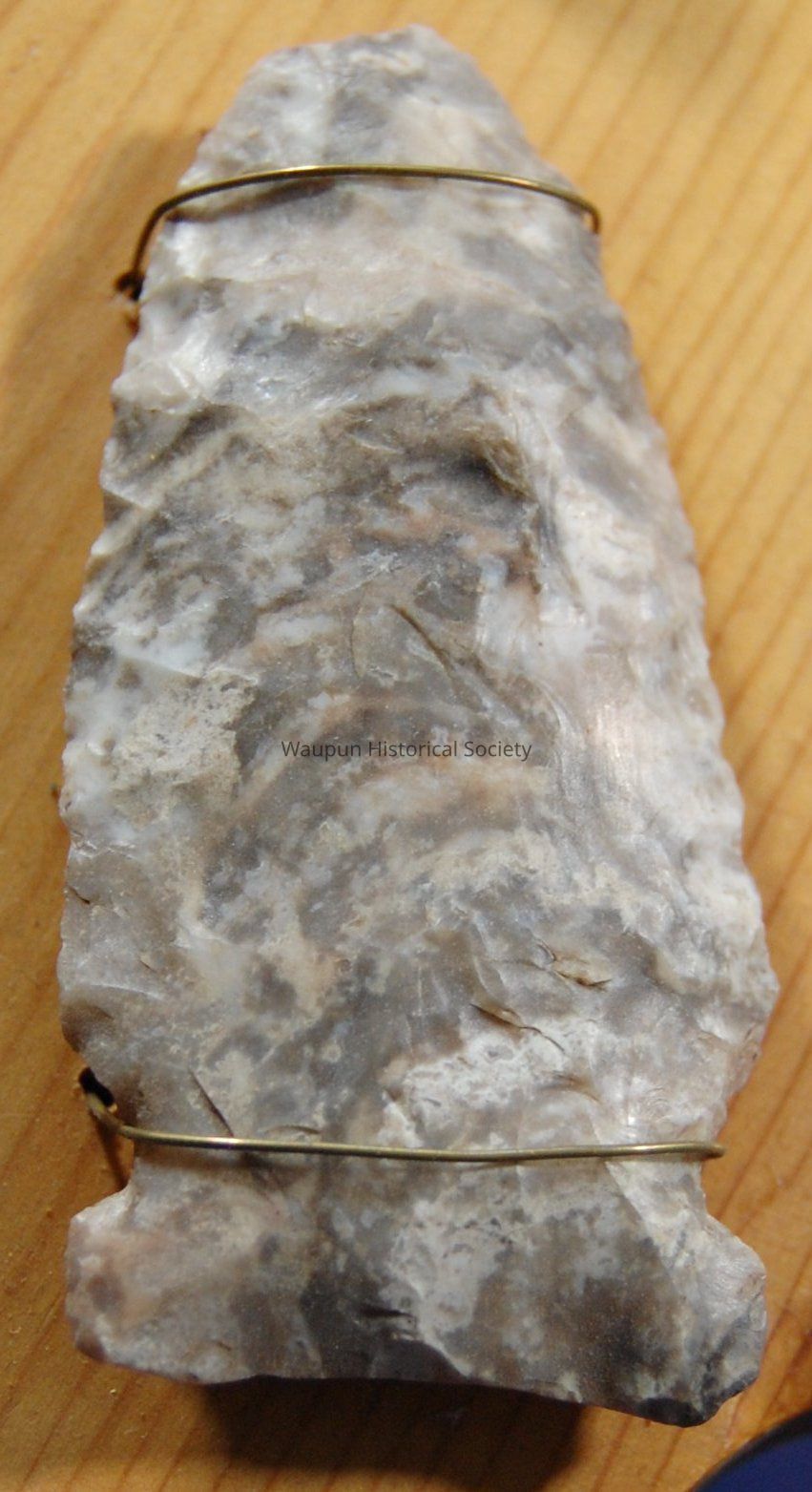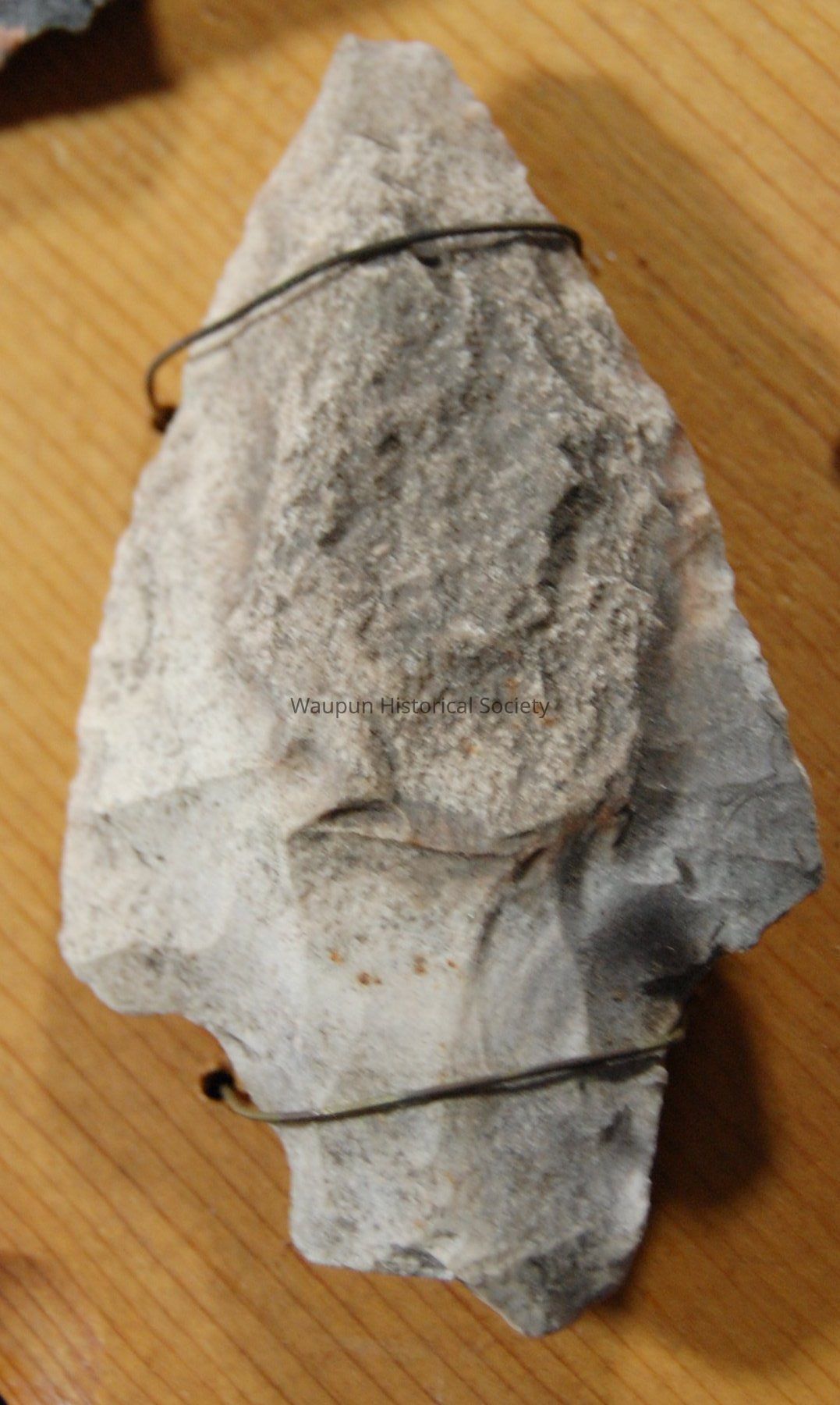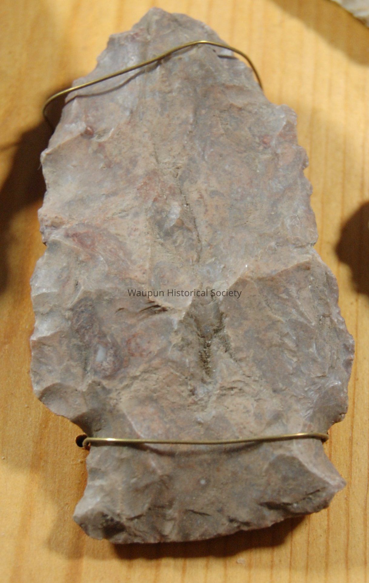 Recieved 28 groups of Native American artifacts. The artifacts are mounted on wood frames or located in a wooden box. Artifacts include axes, hammers, knives, points, arrowheads, scrappers, and drills.Acquisition