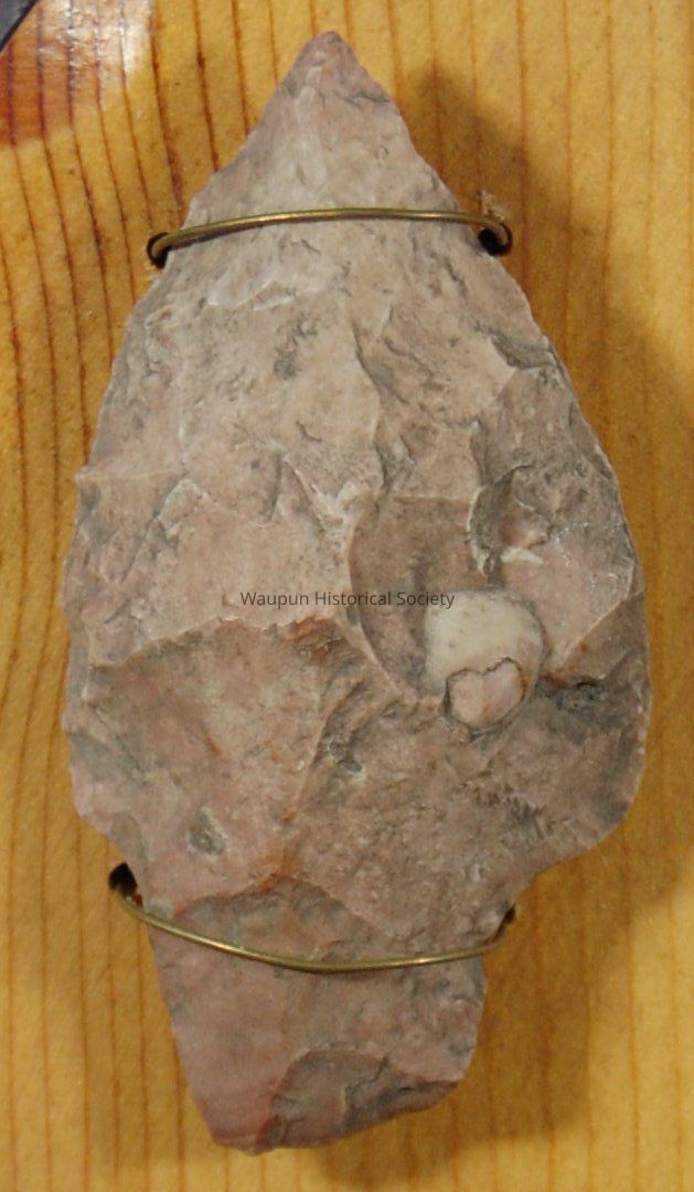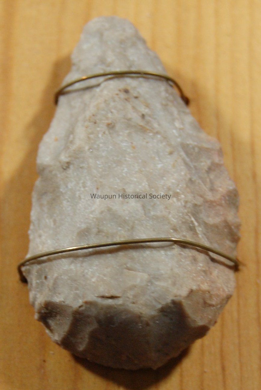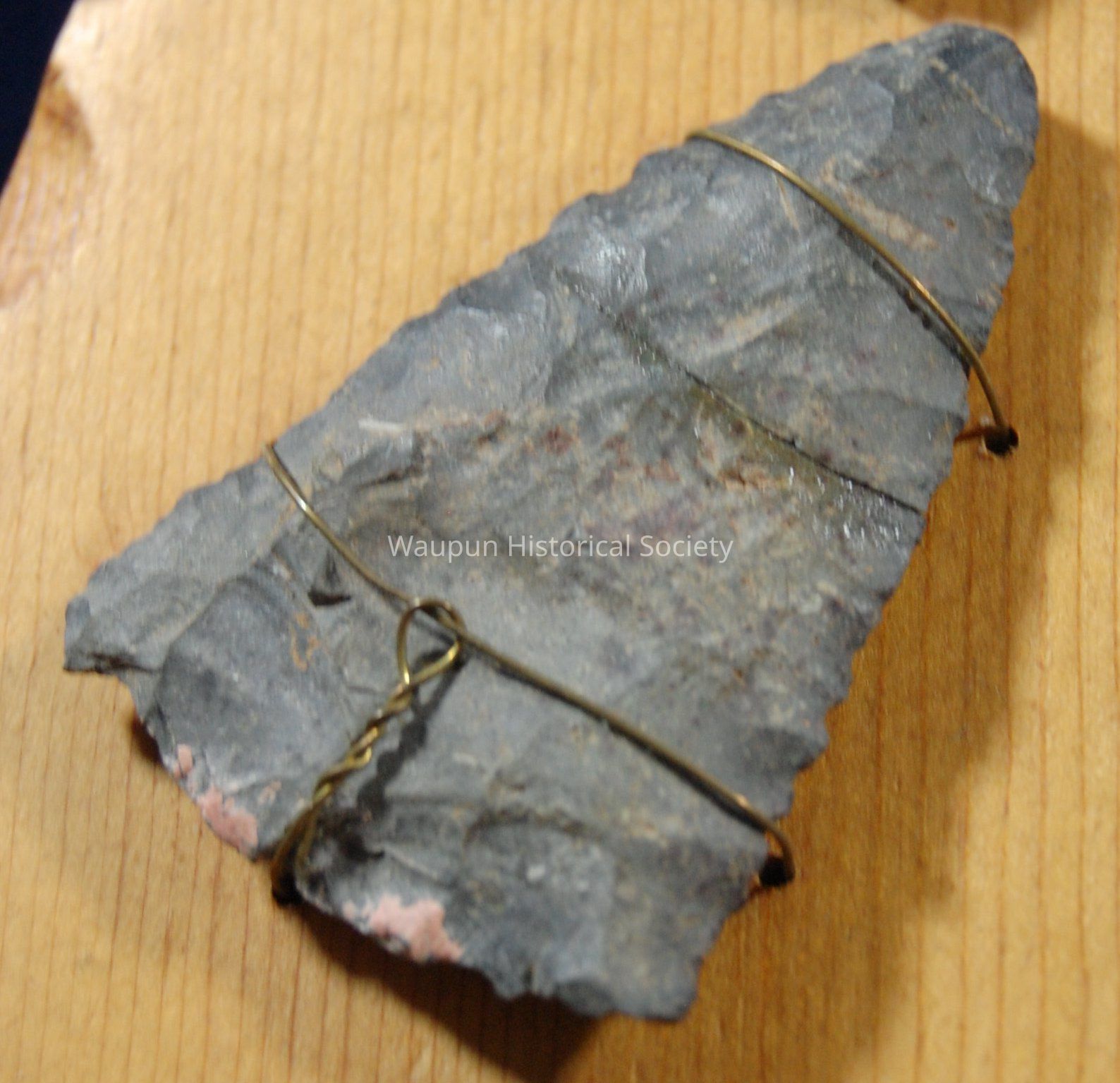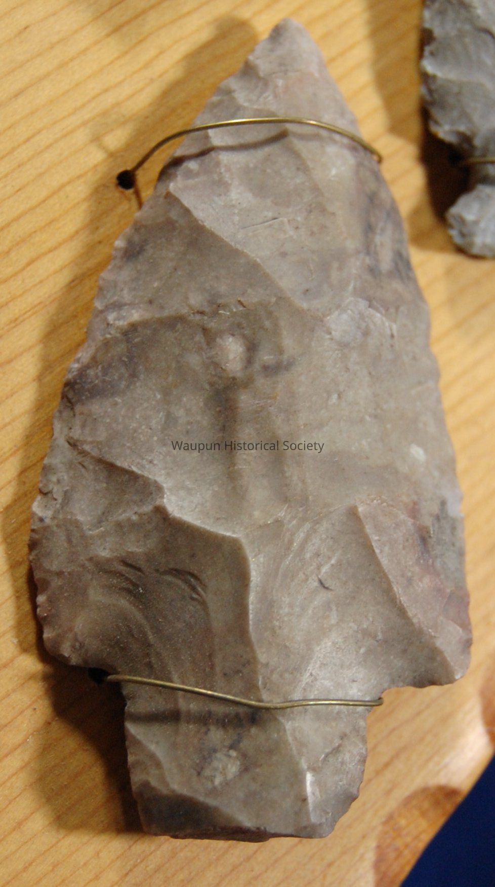 Recieved 28 groups of Native American artifacts. The artifacts are mounted on wood frames or located in a wooden box. Artifacts include axes, hammers, knives, points, arrowheads, scrappers, and drills.Acquisition