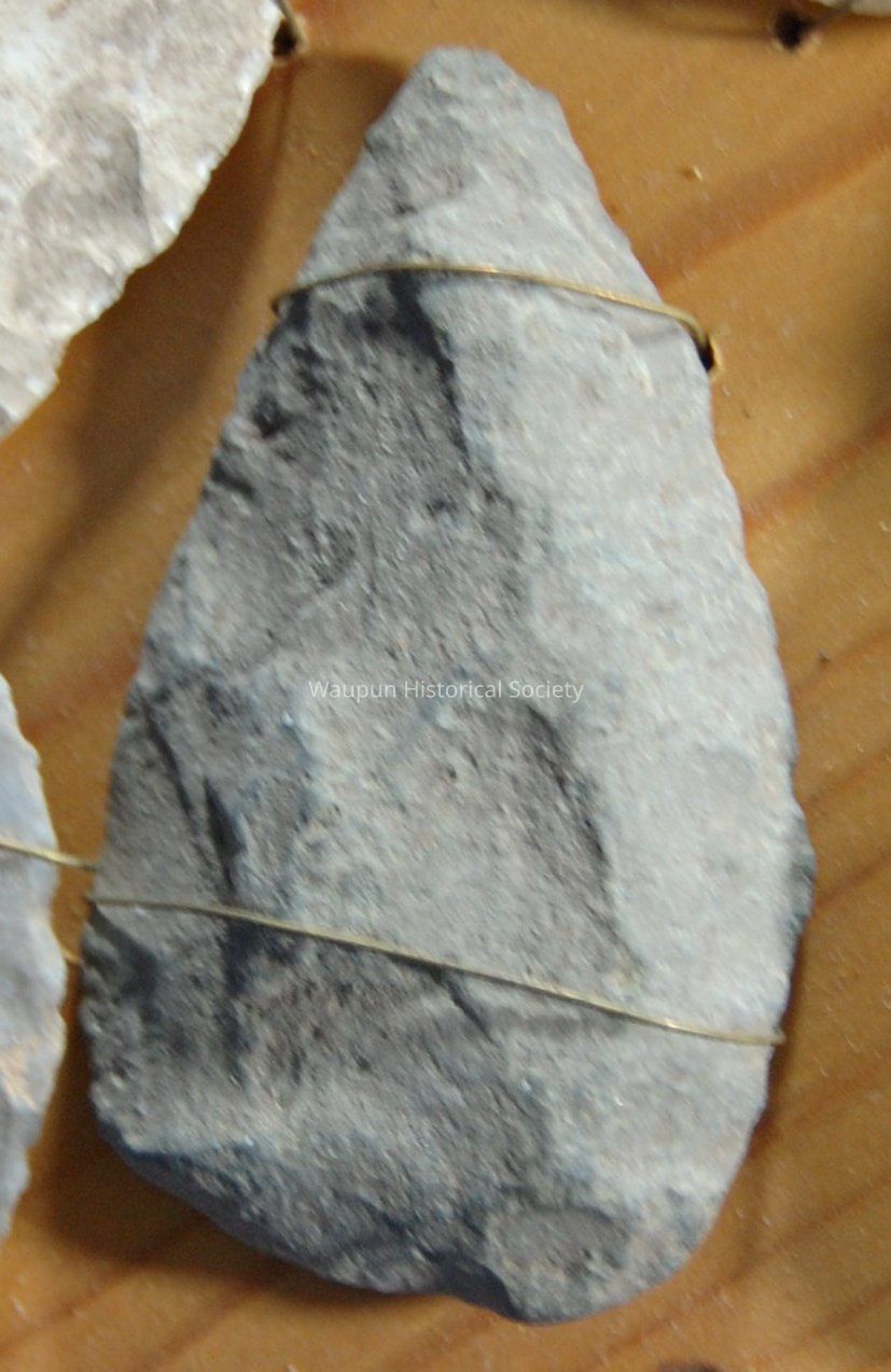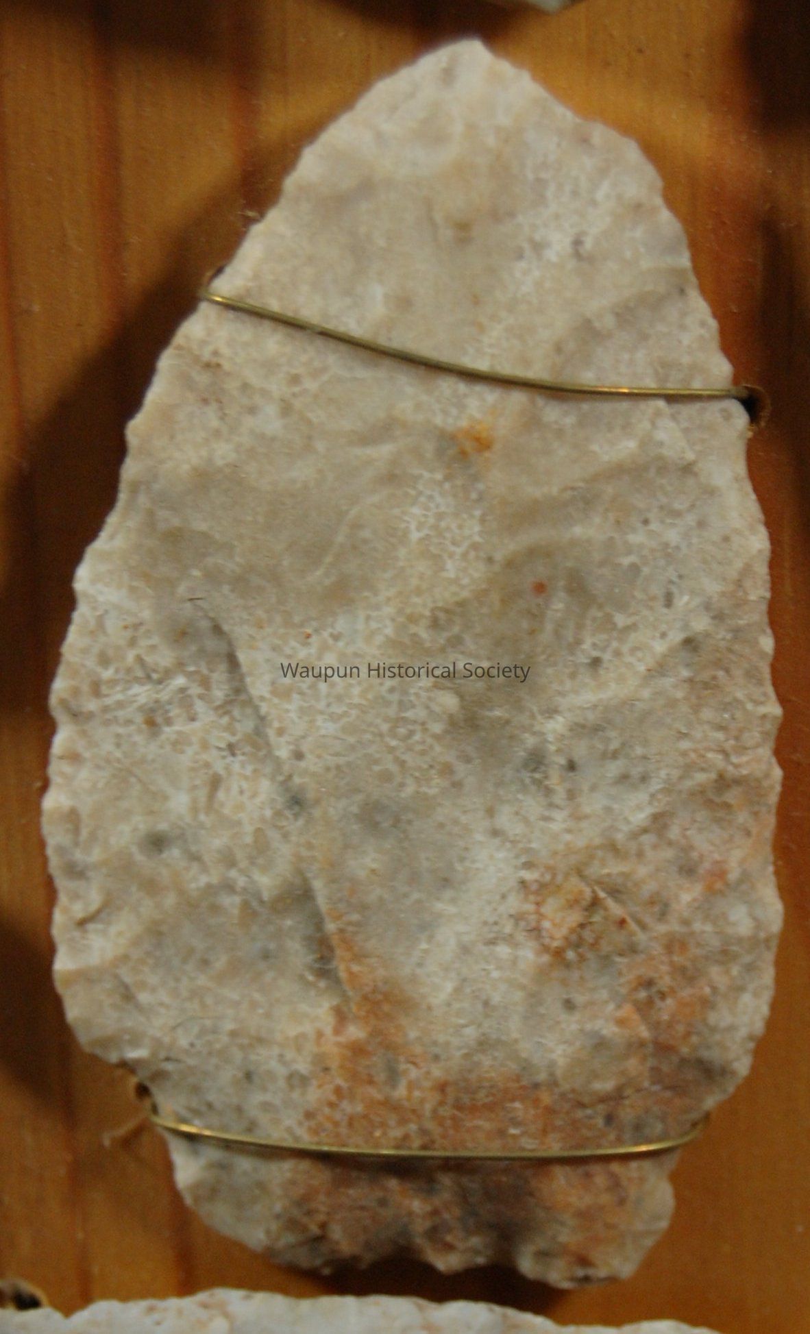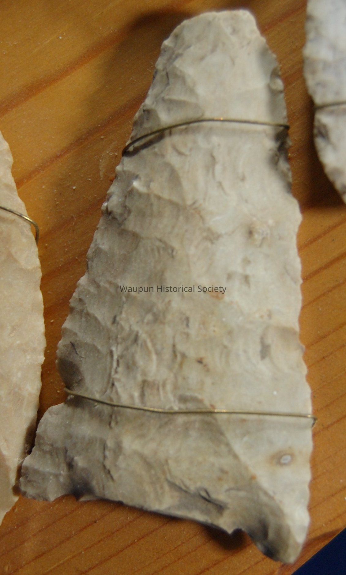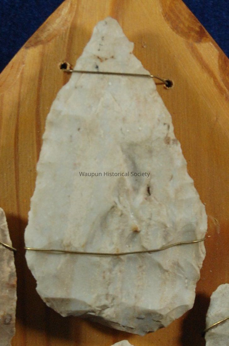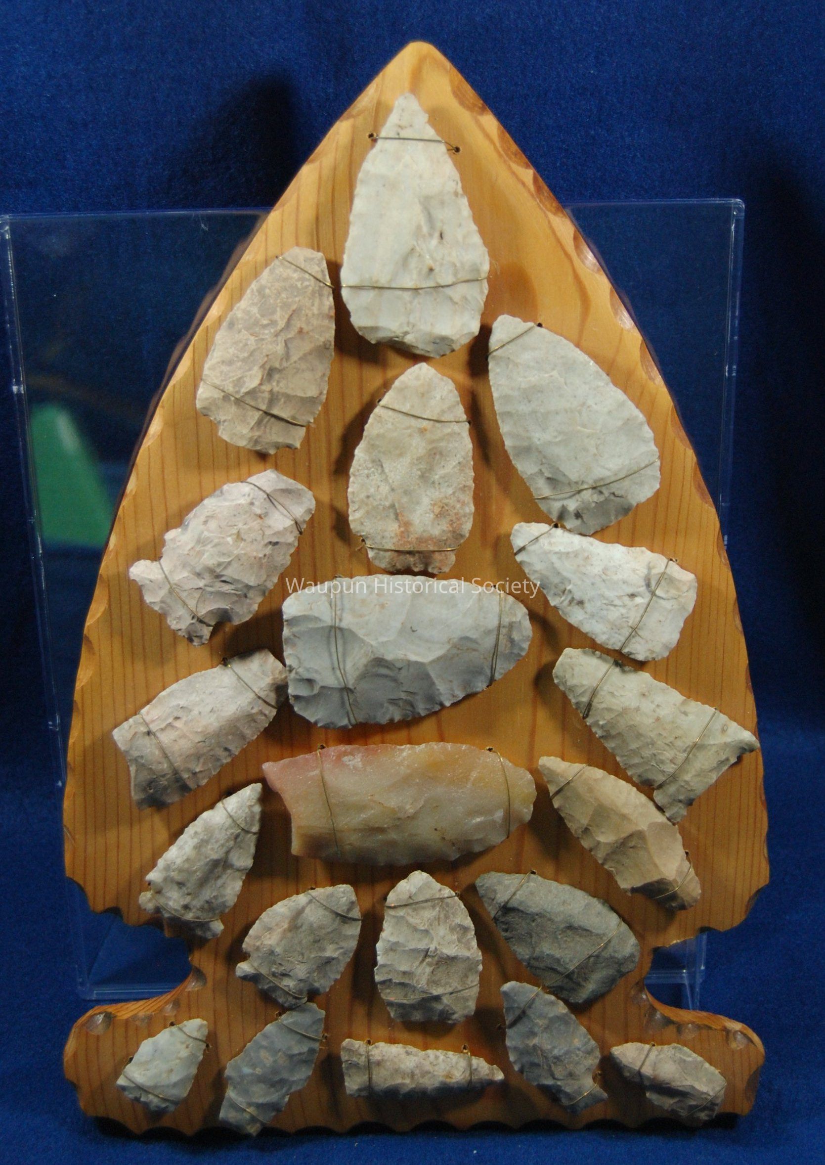 Recieved 28 groups of Native American artifacts. The artifacts are mounted on wood frames or located in a wooden box. Artifacts include axes, hammers, knives, points, arrowheads, scrappers, and drills.Acquisition