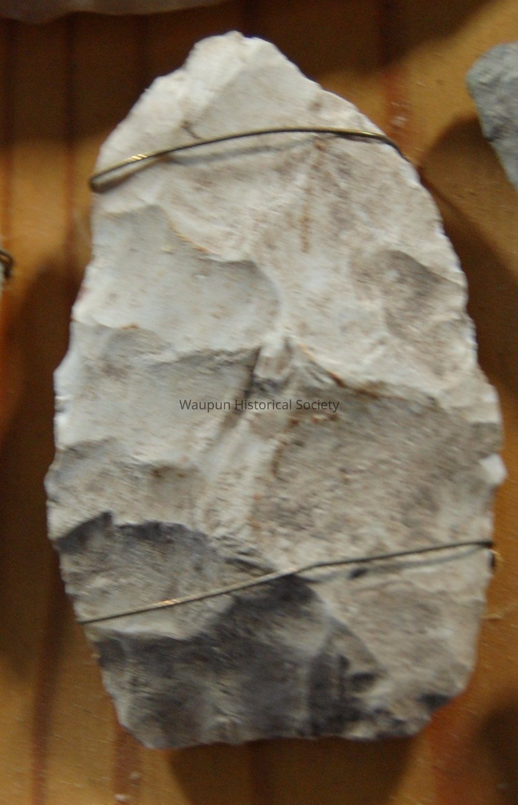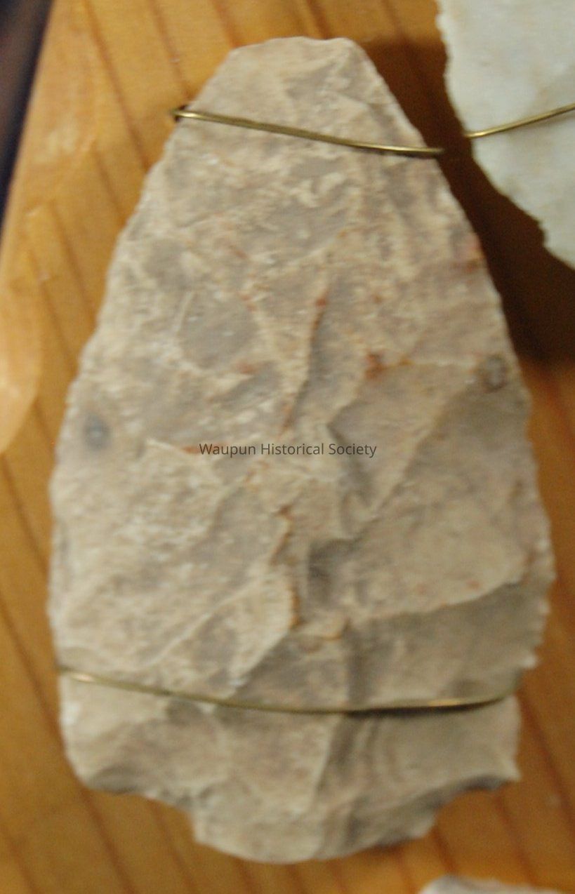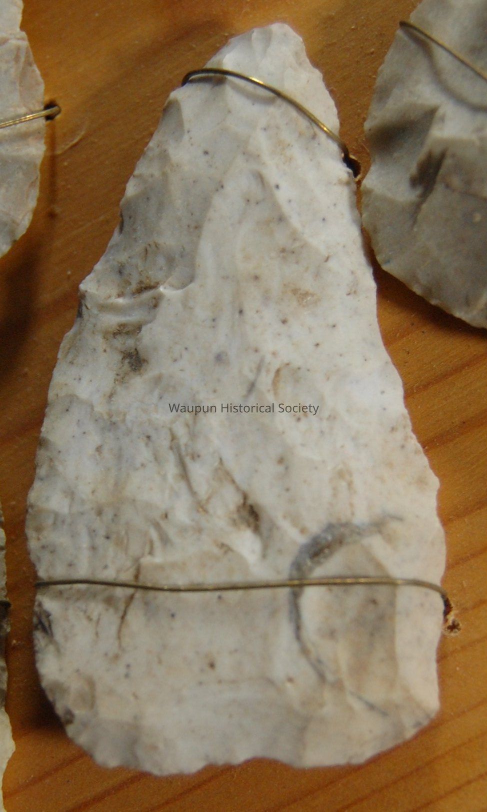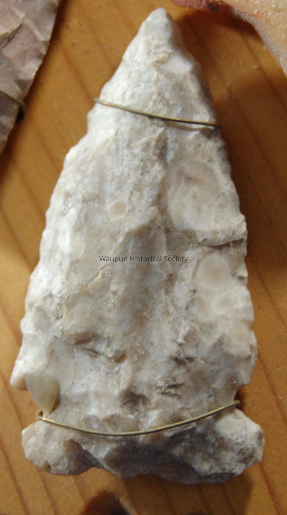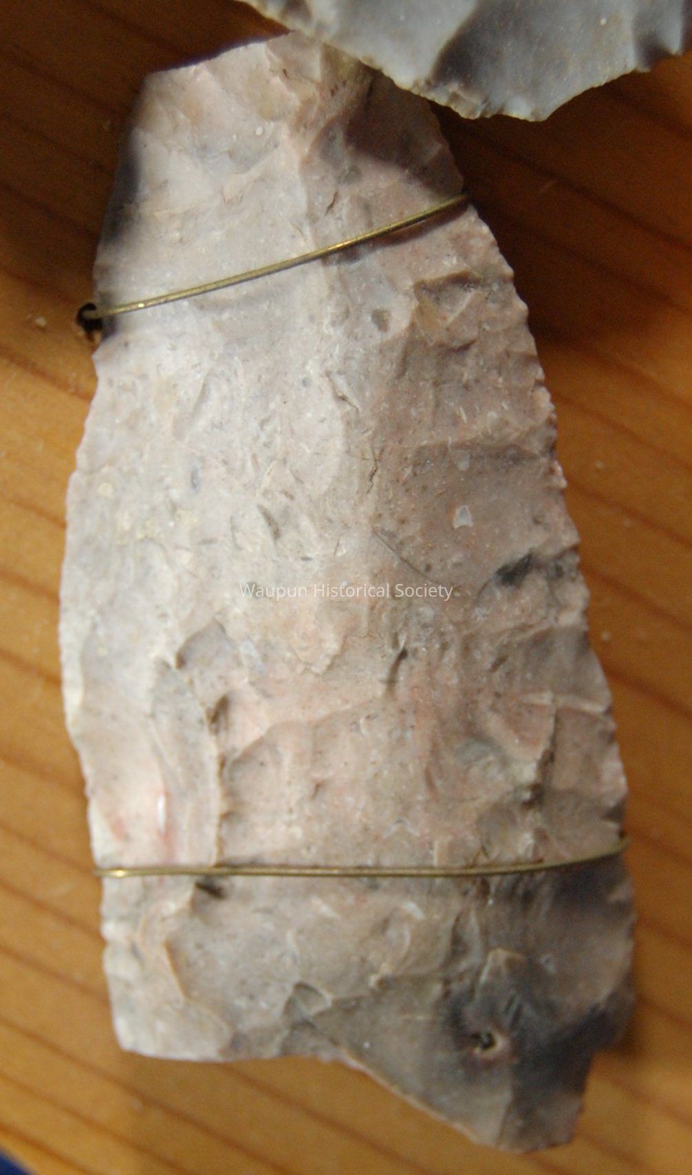 Recieved 28 groups of Native American artifacts. The artifacts are mounted on wood frames or located in a wooden box. Artifacts include axes, hammers, knives, points, arrowheads, scrappers, and drills.Acquisition