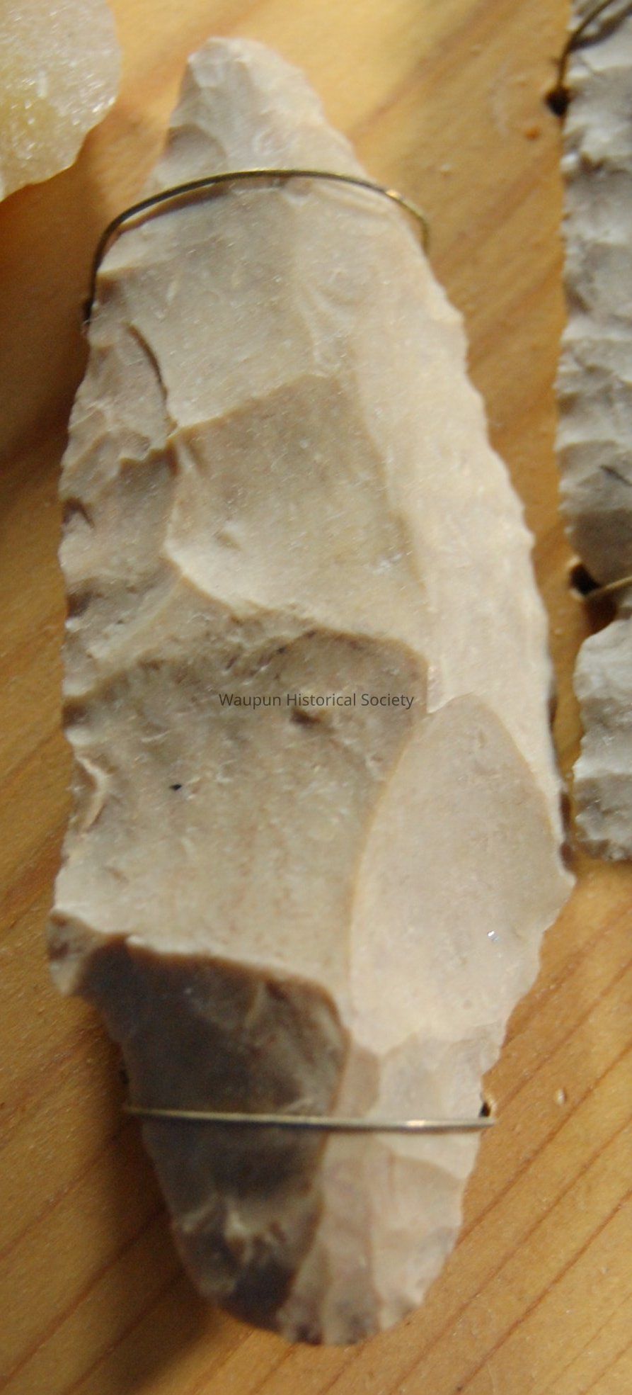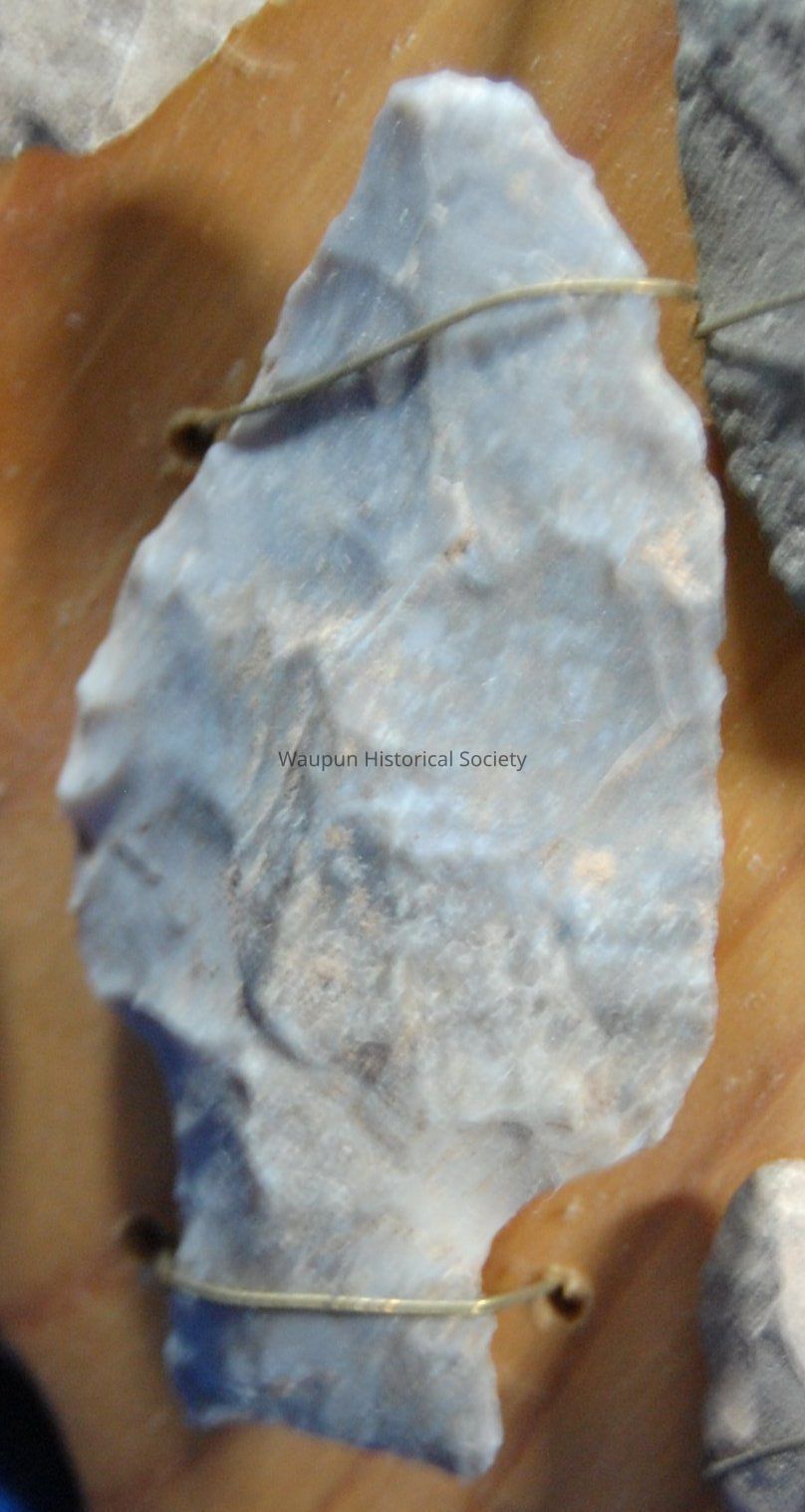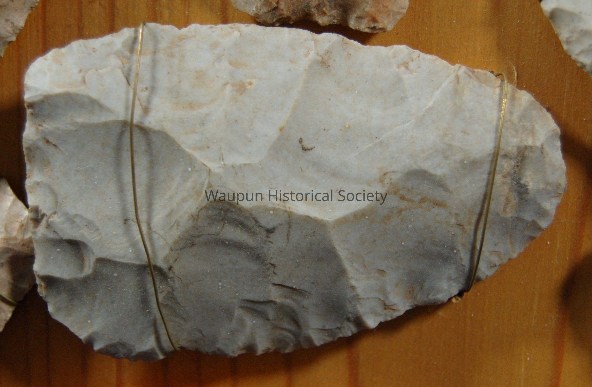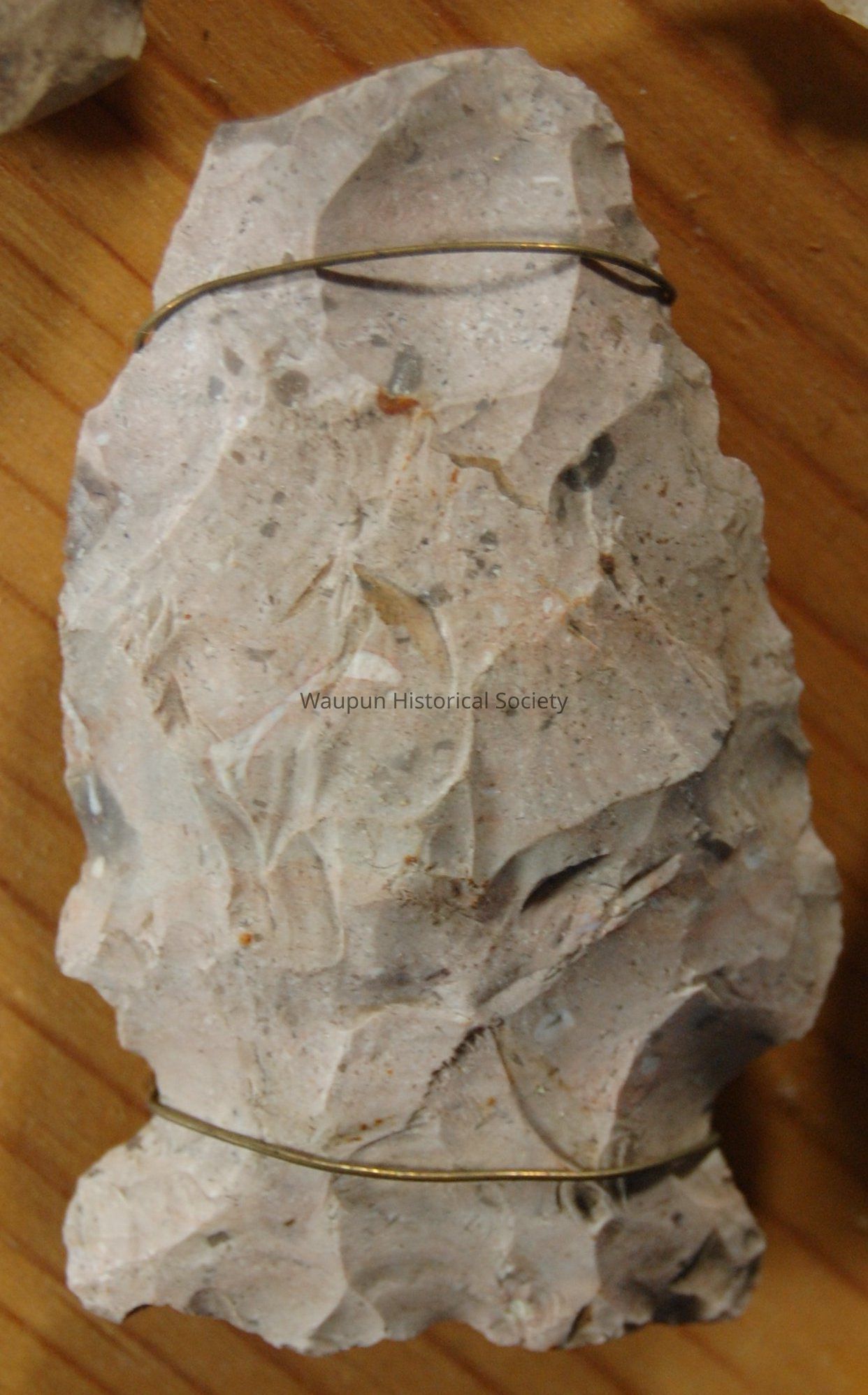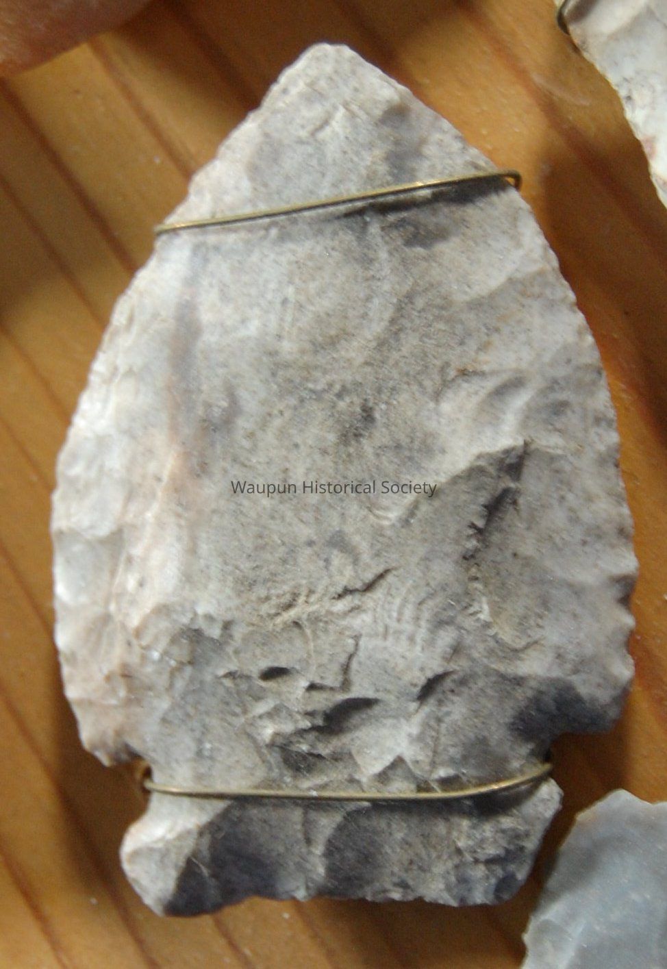 Recieved 28 groups of Native American artifacts. The artifacts are mounted on wood frames or located in a wooden box. Artifacts include axes, hammers, knives, points, arrowheads, scrappers, and drills.Acquisition