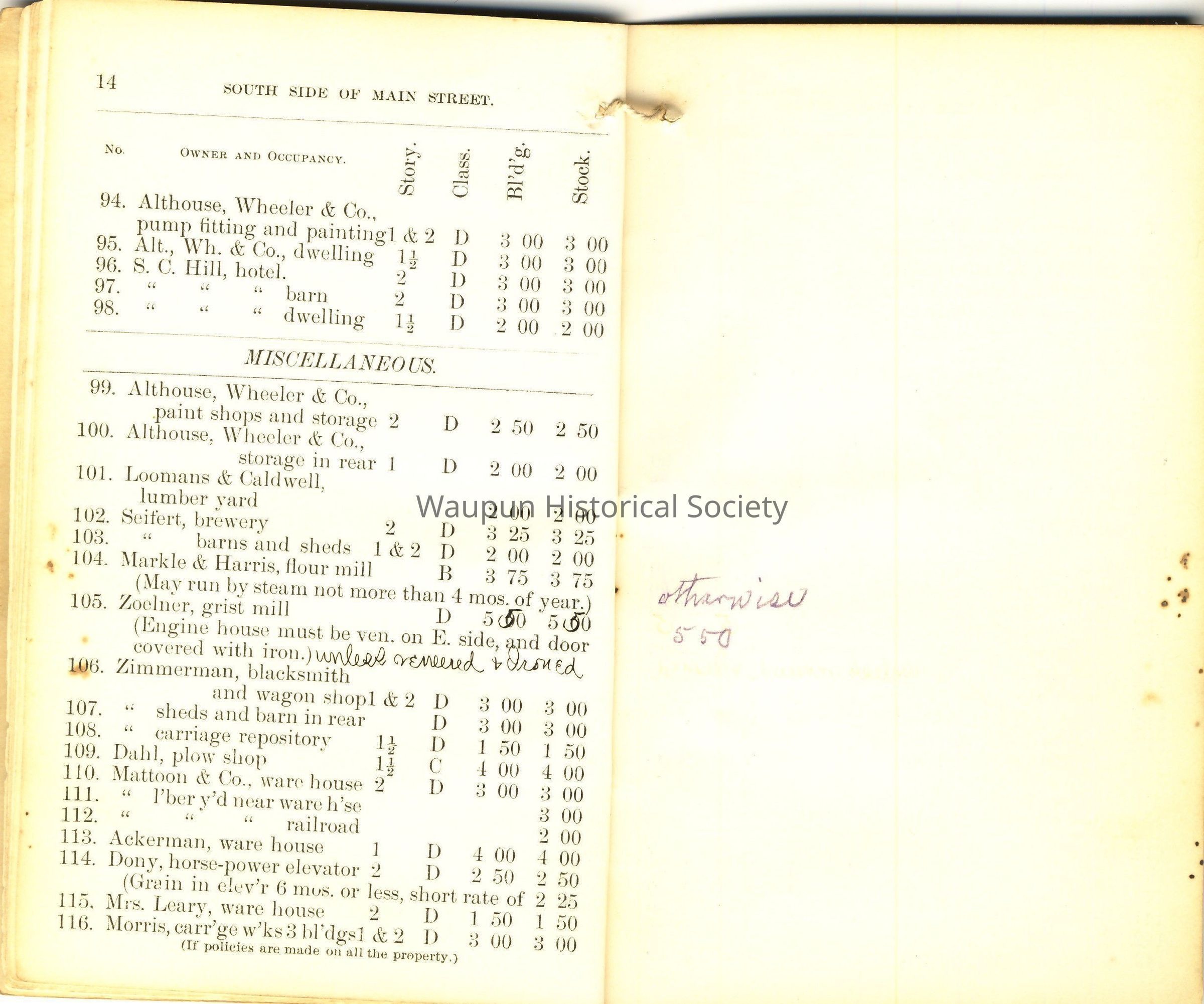105. Zoelner, grist mill D 5 50 5 50 (Engine house must be yen. on E. side, and door covered with iron.) unless veneered and ironed