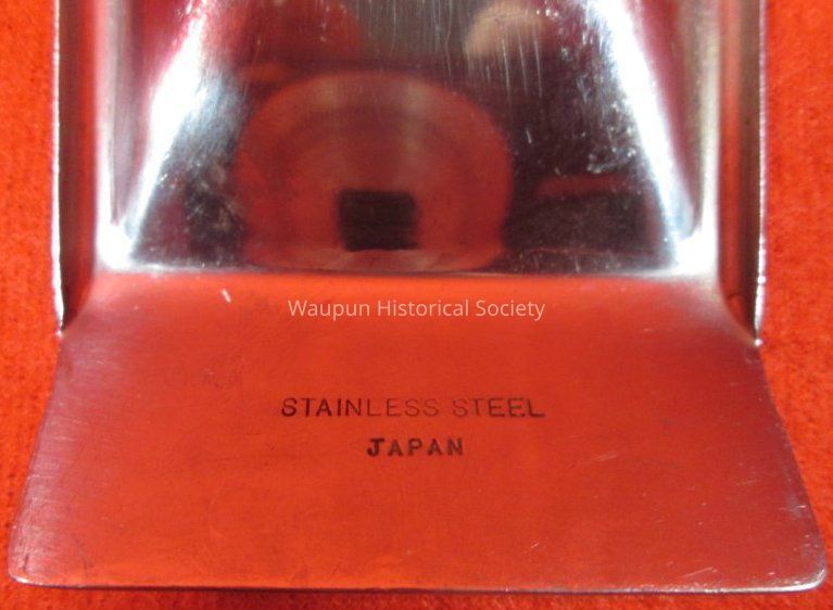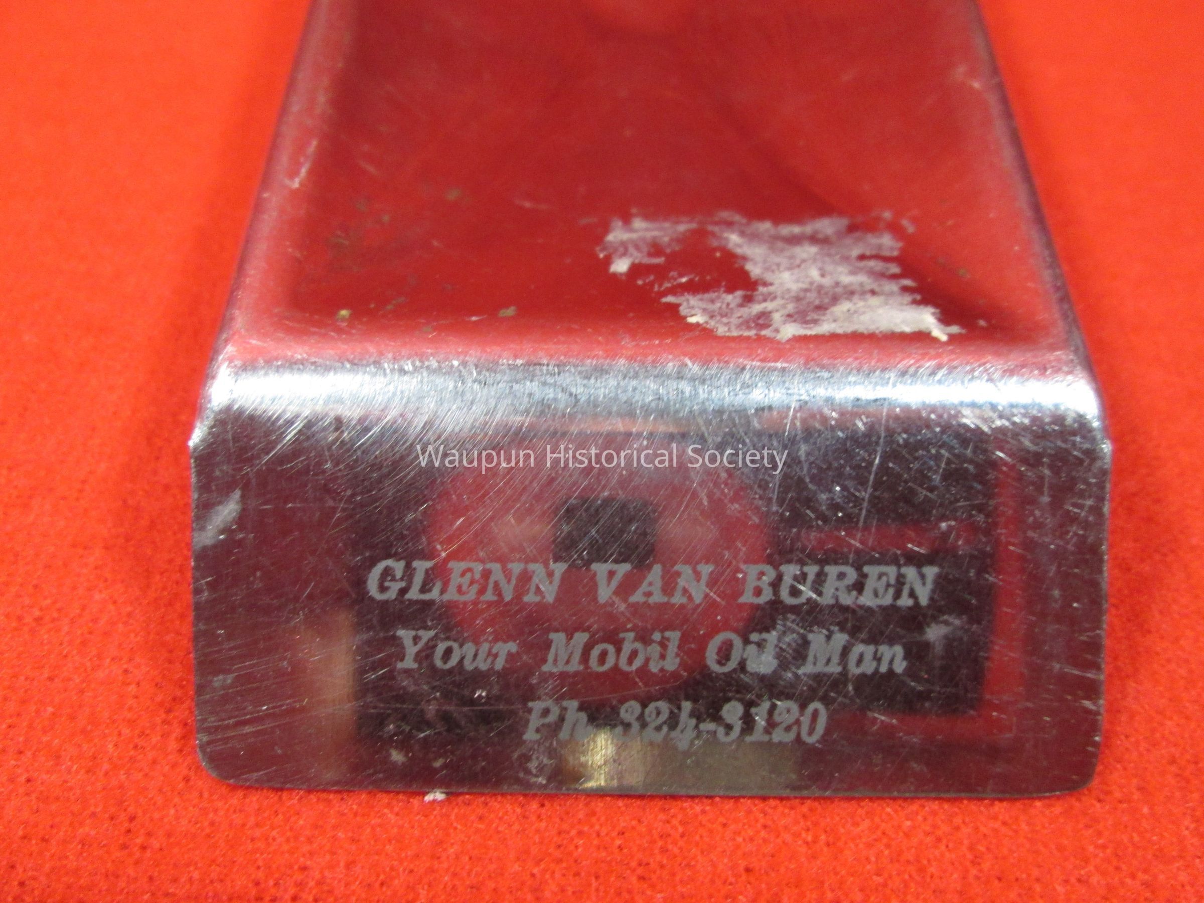 Stainless steel spoon holder advertising Glenn VanBuren, Your Mobil Oil Man, Ph. 324-3120.Acquisition