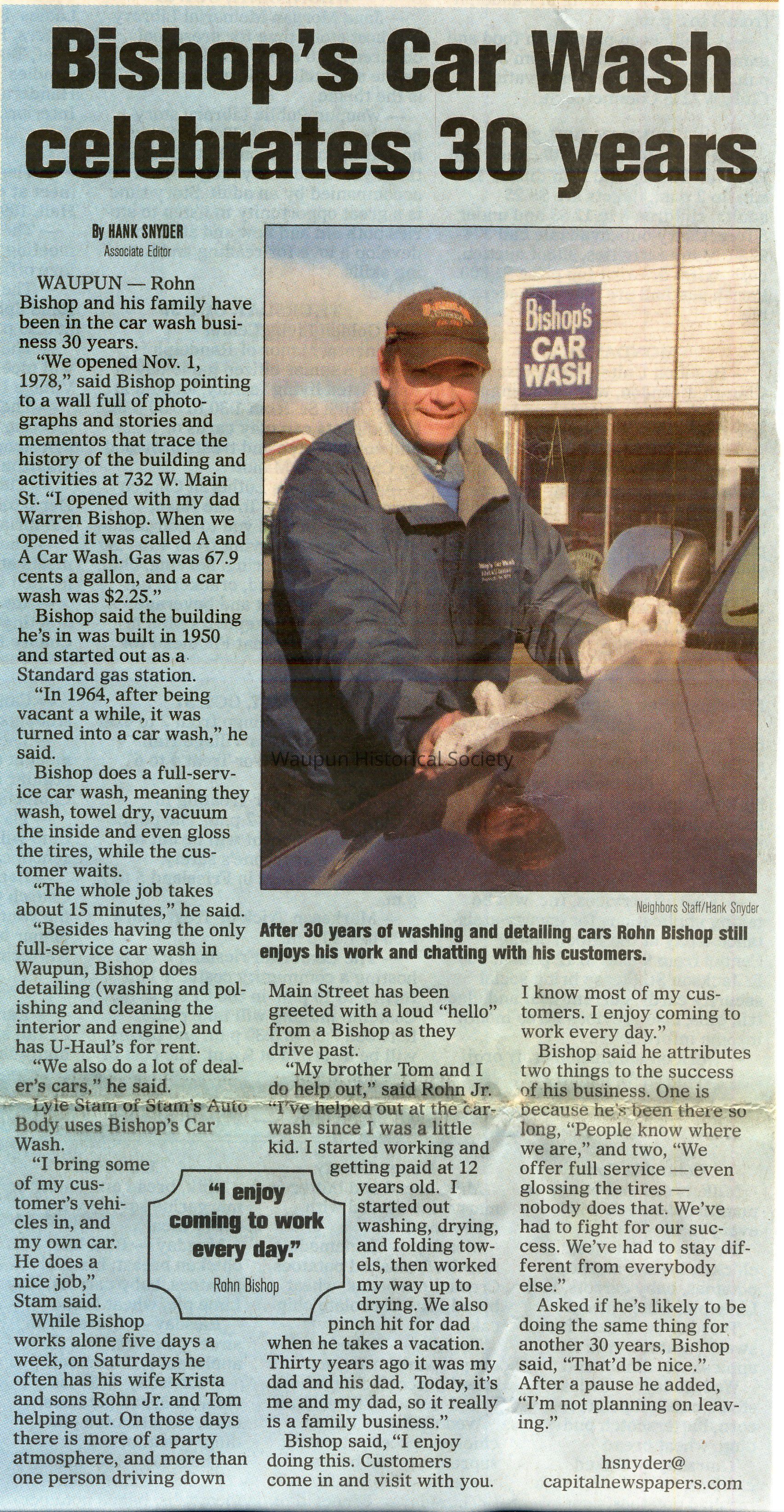 WAUPUN - Rohn Bishop and his family have been in the car wash business 30 years.