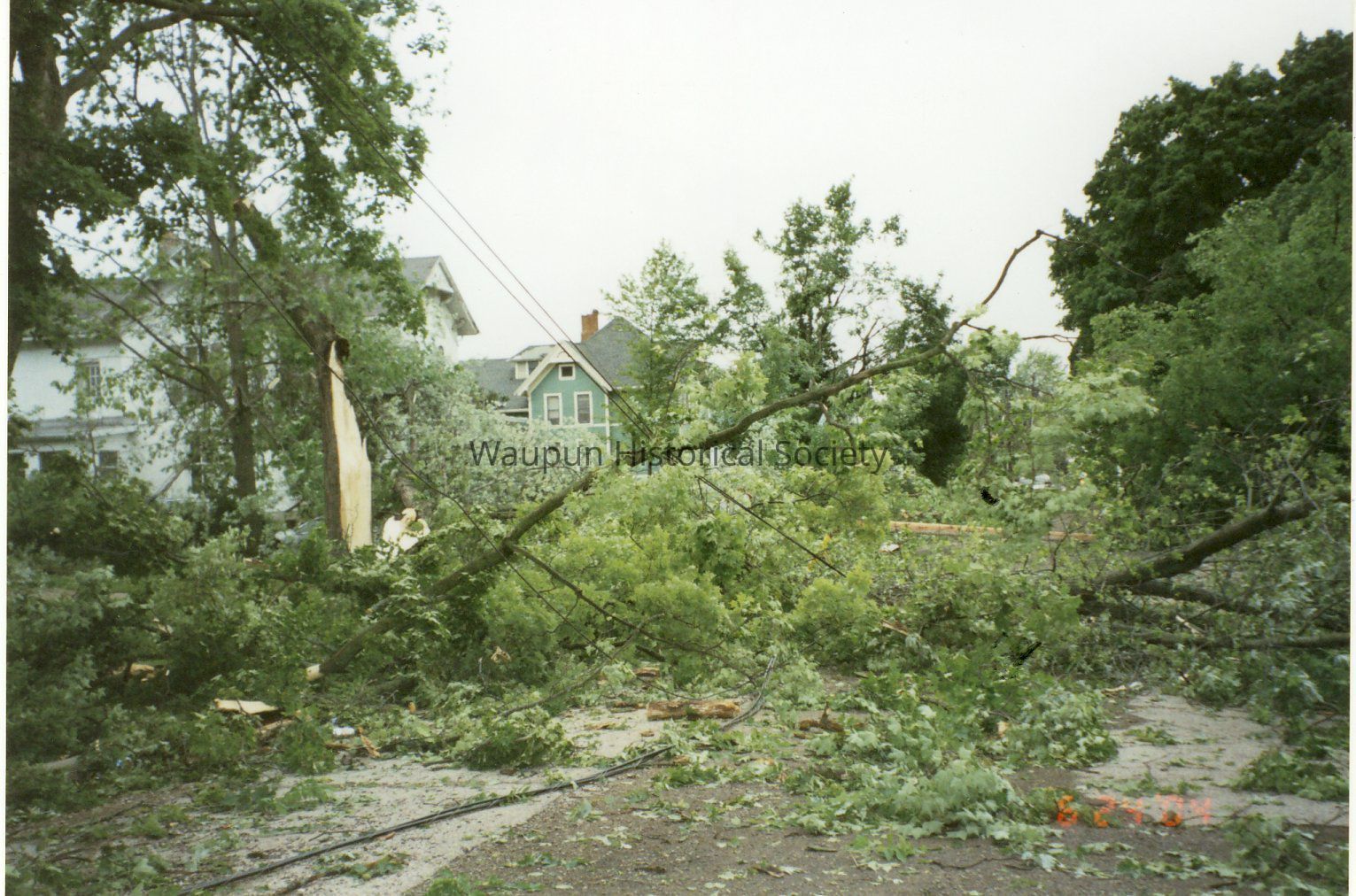 2004 Tornado. This photo is of tornado damage done during the 2004 Tornado. These photos were donated to the museum by the David Stelsel family. On the back is written " Carrington North, Tornado of 2004.Acquisition