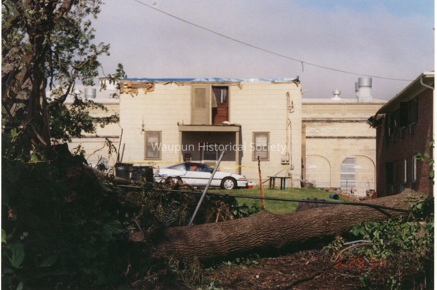 2004 Tornado. This photo is of tornado damage done during the 2004 Tornado. These photos were donated to the museum by the David Stelsel family. On the back is written " Madison St. condemned house, 2004. This photo was taken from the back.Acquisition
