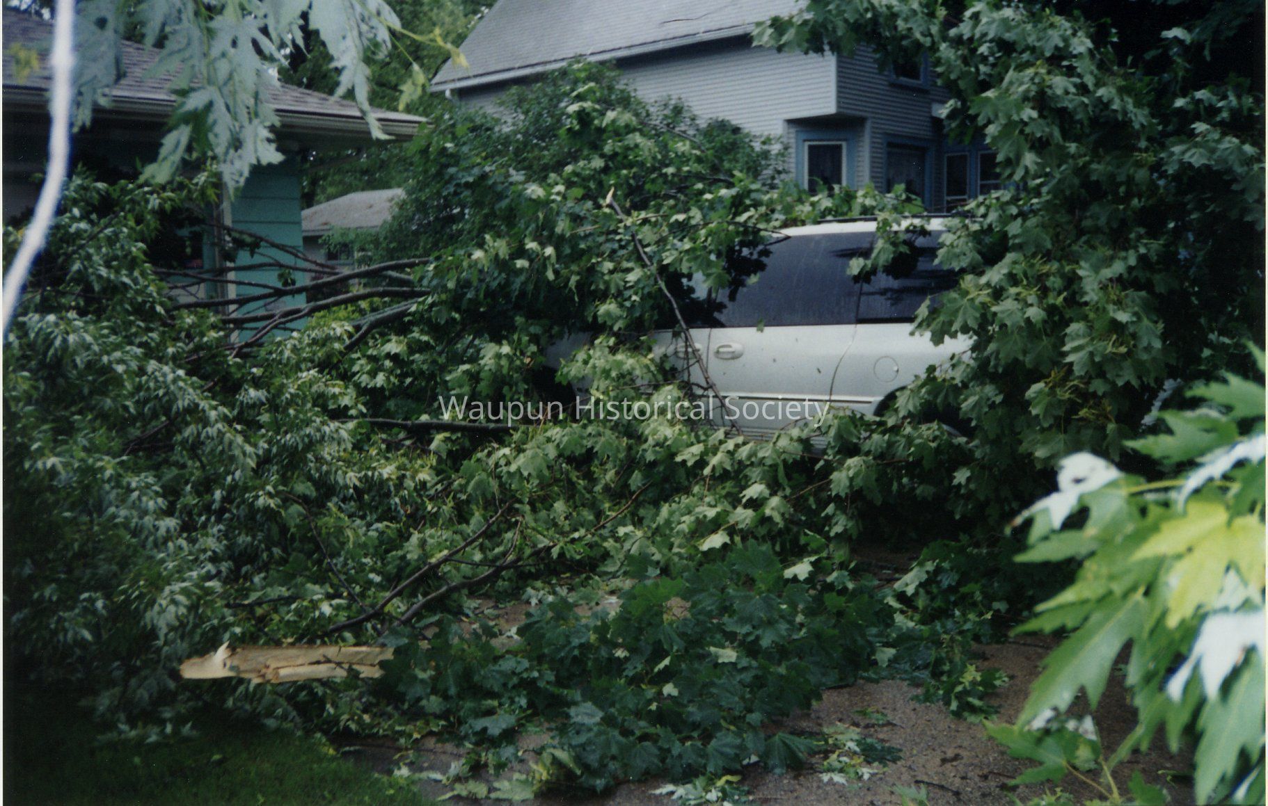 2004 Tornado. These photos were on loan from Gene and Betty Buchholz. They were returned to them after they were scanned. The only copies the Waupun Historical Society has are the electronic versions on disk. Caption on the back indicates, "Hello Car - Yes! It did start. 6-30-04Acquisition