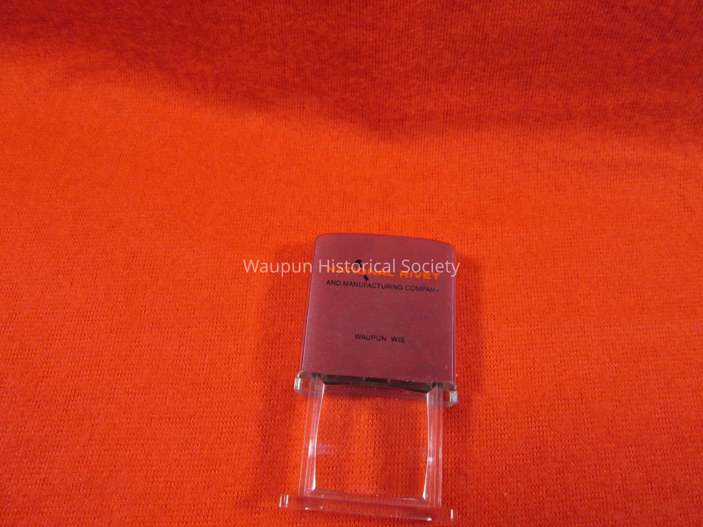 The Zippo magnifier is a high quality vision instrument to use just pull gently on the exposed plastic edge the clear plexiglas lenses slide easily out of the case, Slide out either one of the lenses and you have 21/2 X magnification pull out both lenses then you have double the magnificaton.Sliver in color from National Rivet and Manufacturing Company of Waupun Wis.Acquisition
