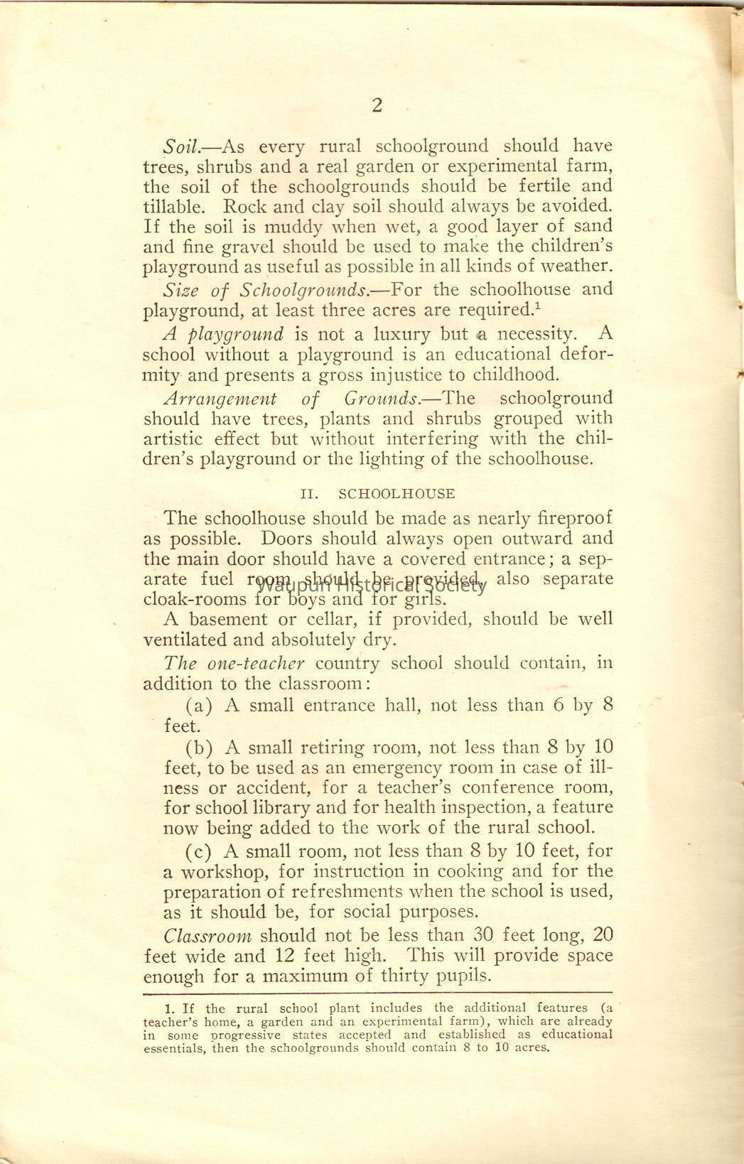 1. If the rural school plant includes the additional features (a teacher's home, a garden and an experimental farm), which are already in some progressive states accepted and established as educational essentials, then the schoolgrounds should contain 8 to 10 acres.