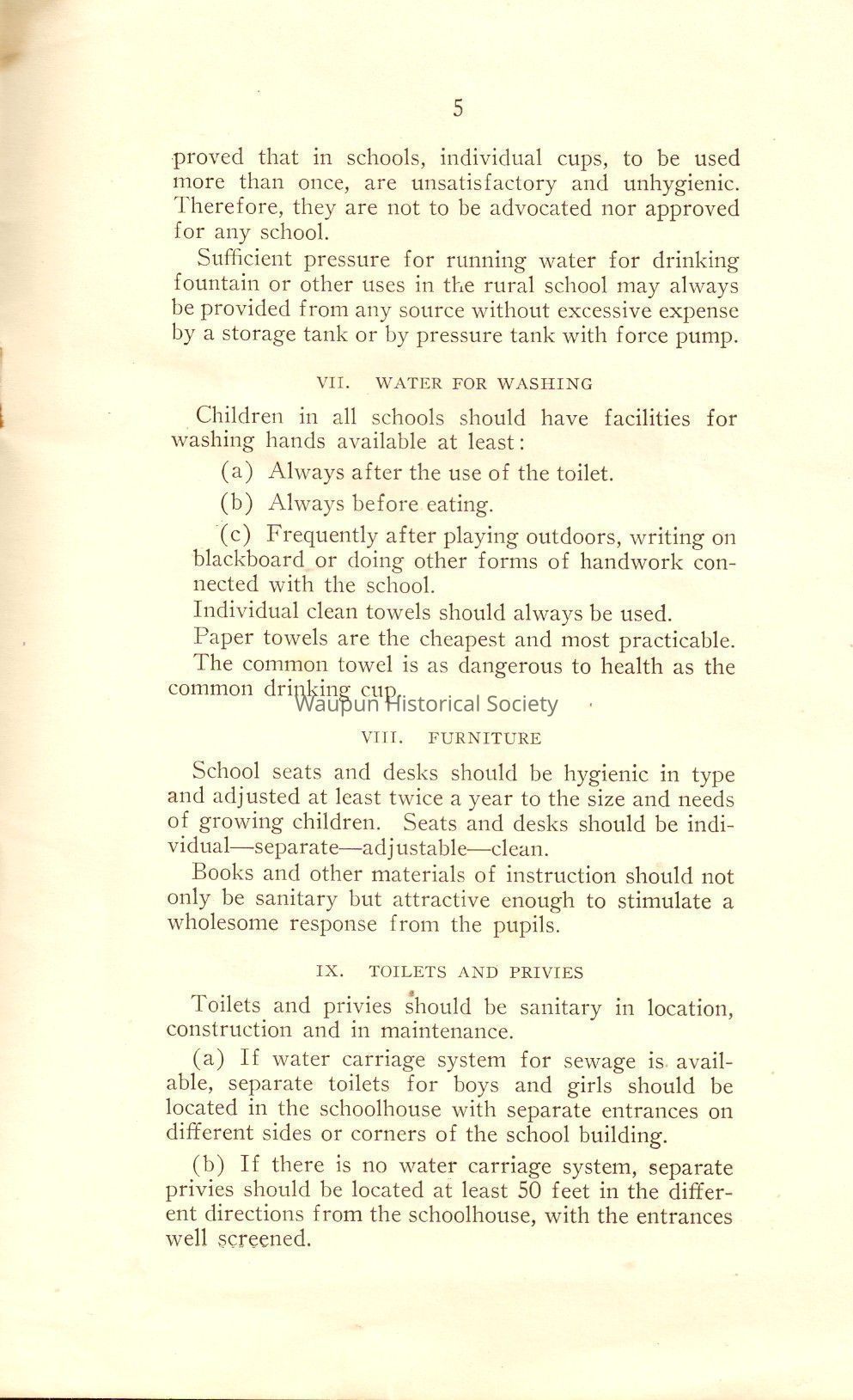 Every rural school should have a sanitary drinking fountain located just inside or outside the schoolhouse entrance.