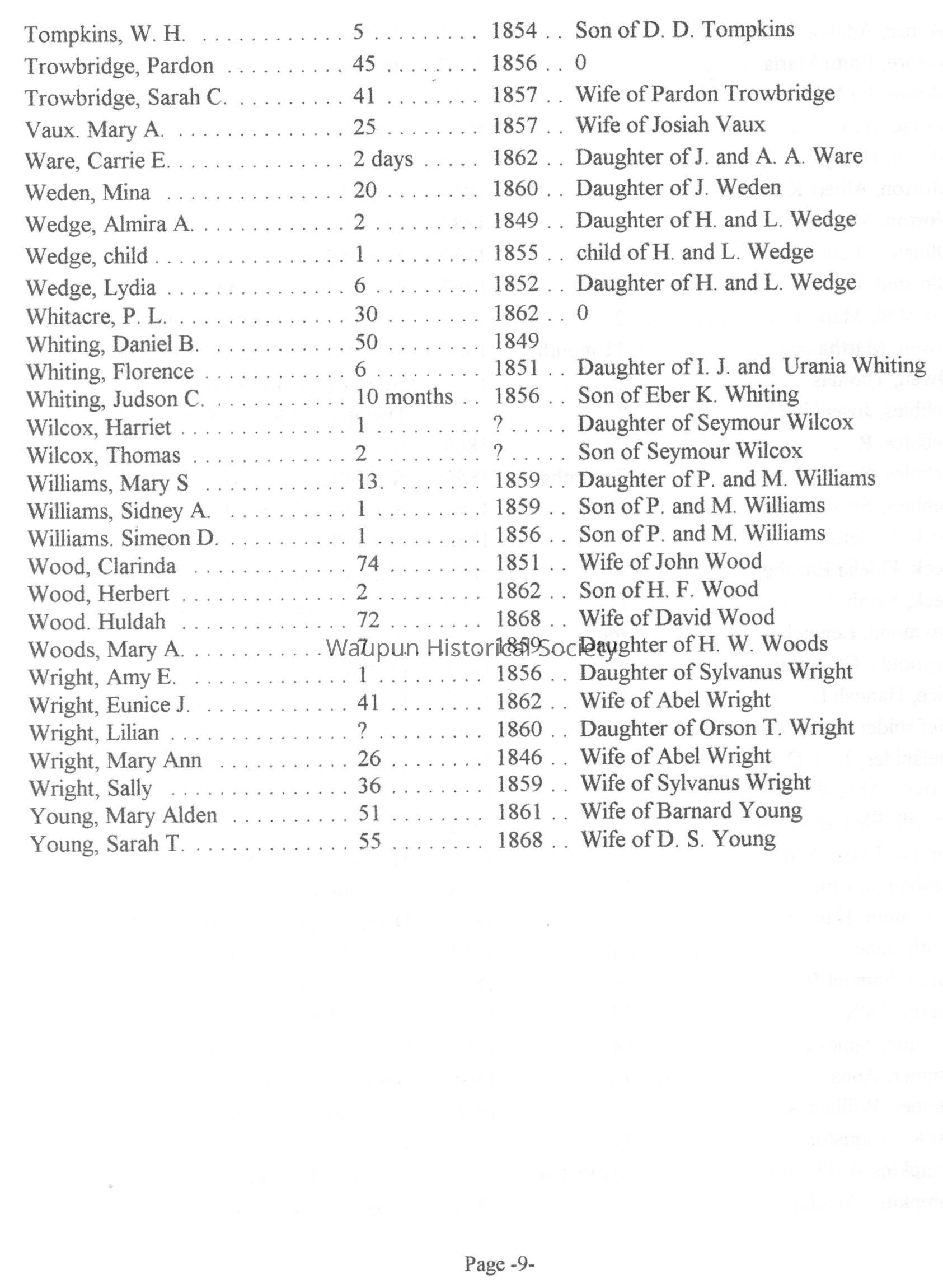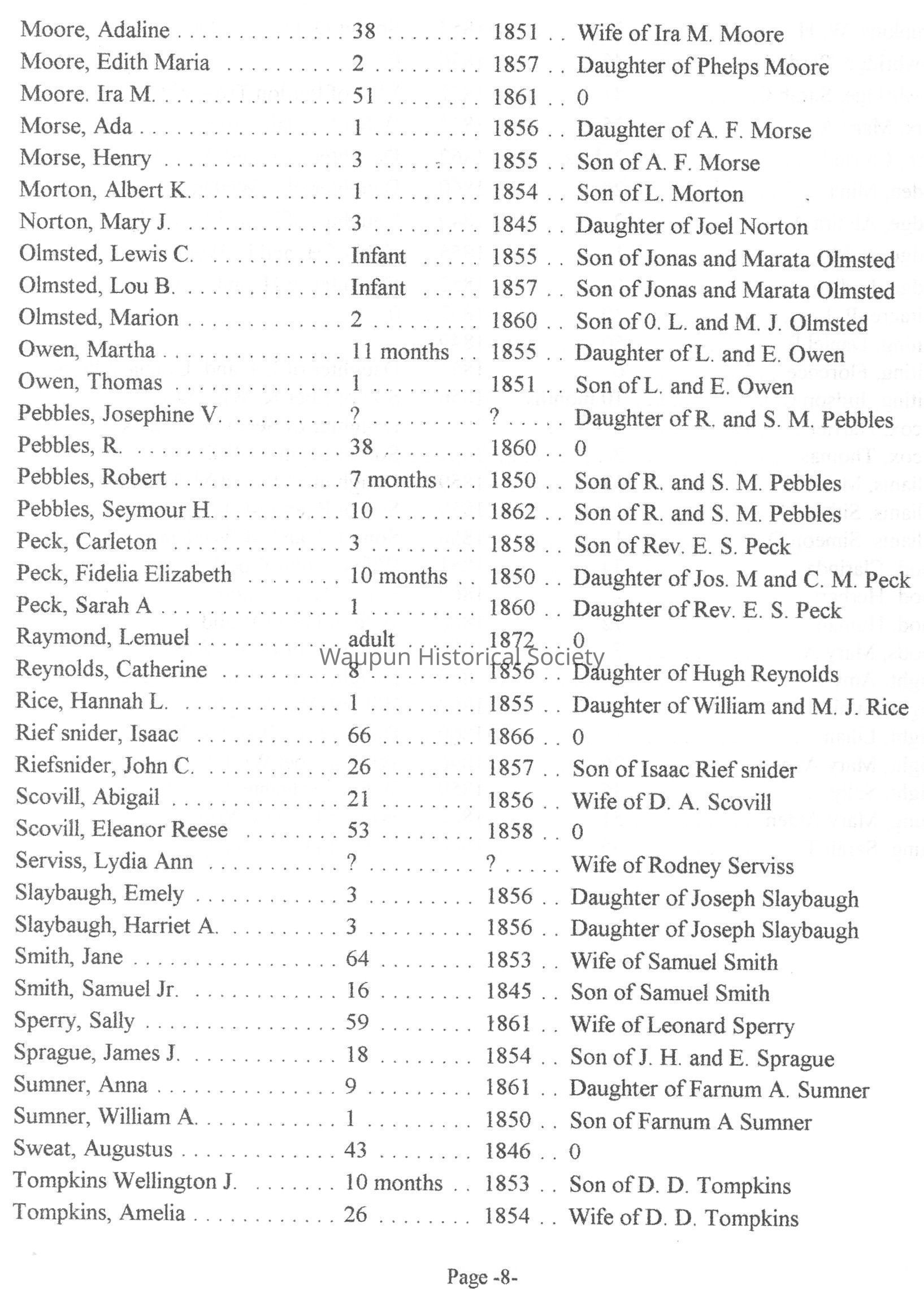 The third one is of the Wallace E. Varney family which I thought would be of interest because you will note that in March 1885 they had three children buried, all three of them having died of scarlet fever when Waupun had the terrible epidemic when so many children died.