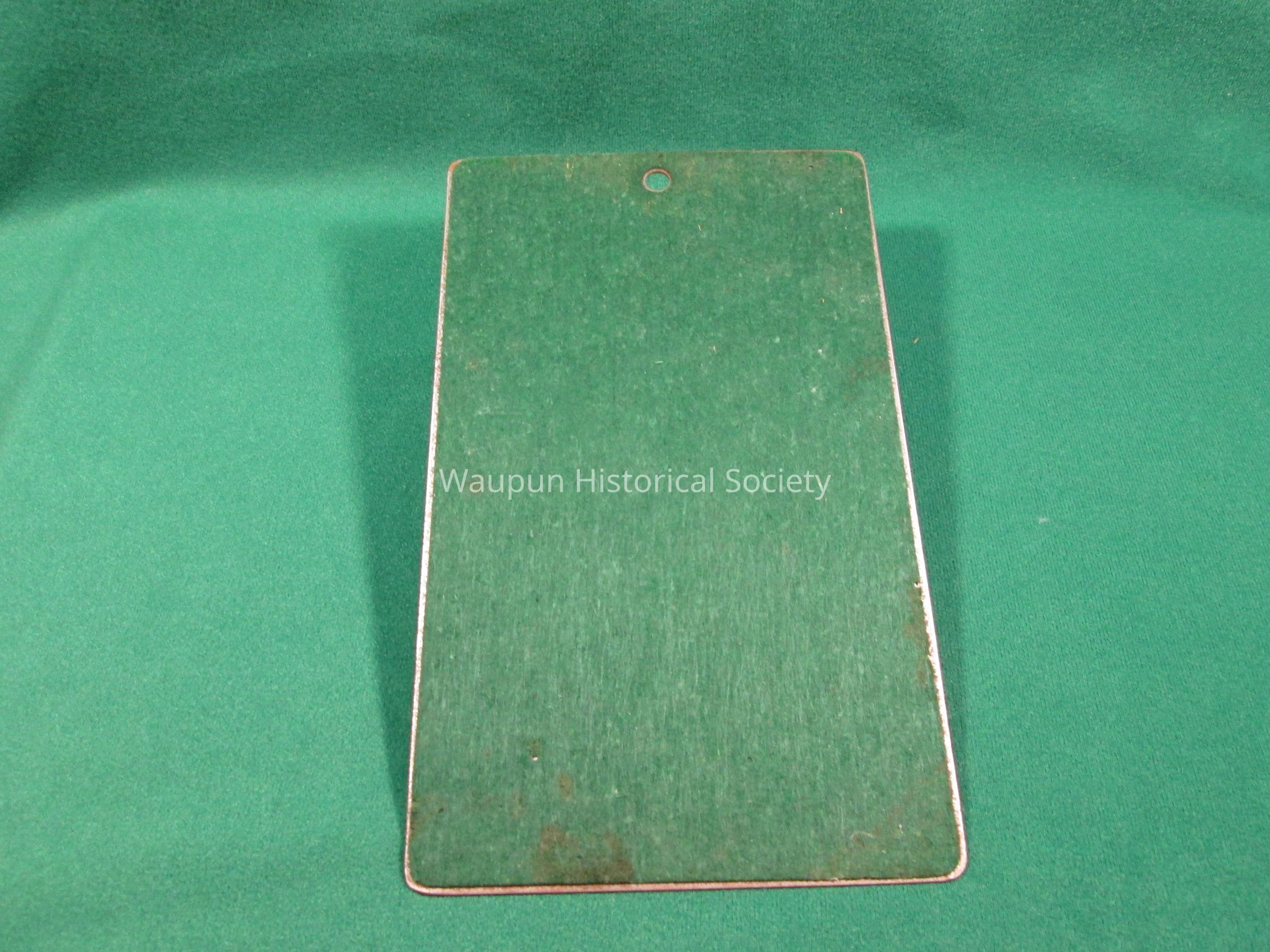 Clipboard advertising W L K E Powerful Clear Channel, "Lucky Radio" 1170 Waupun, Wisconsin, 324-4441. There is a 4-leaf clover painted on the front of the clip portion. The "board" is gold in color and has a felt green backing.Acquisition