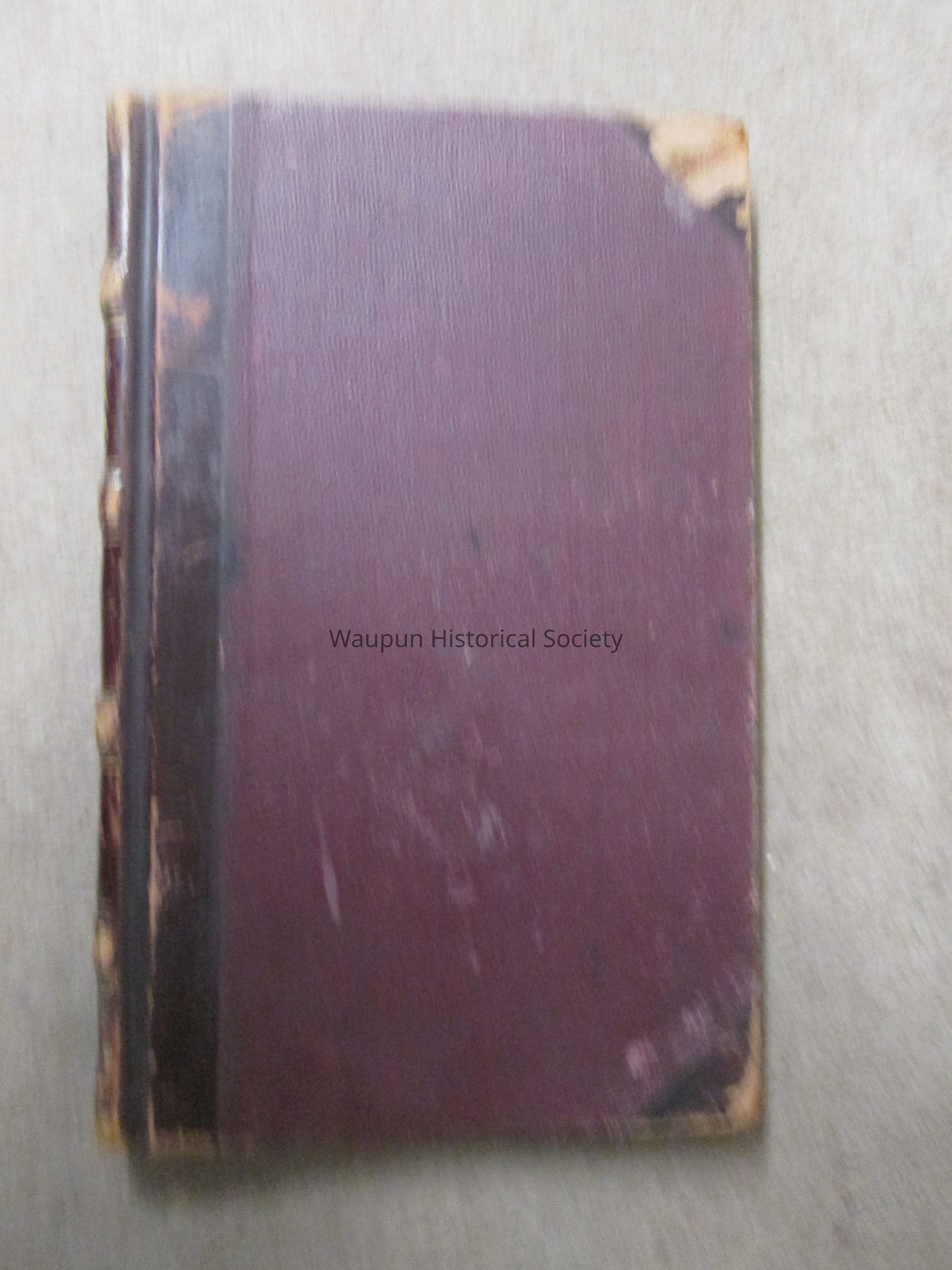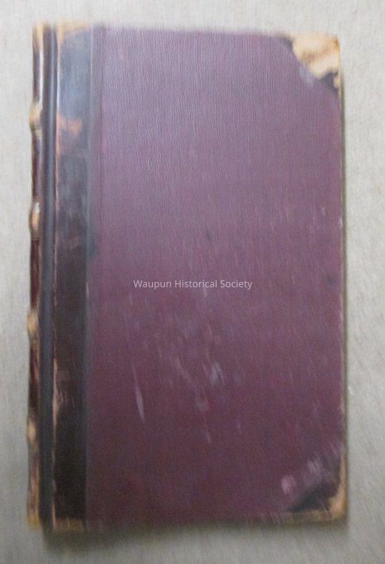 Bound, hard cover record book. Title printed in gold on the spine, that is a dark red with black front and back hard covers.