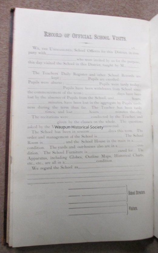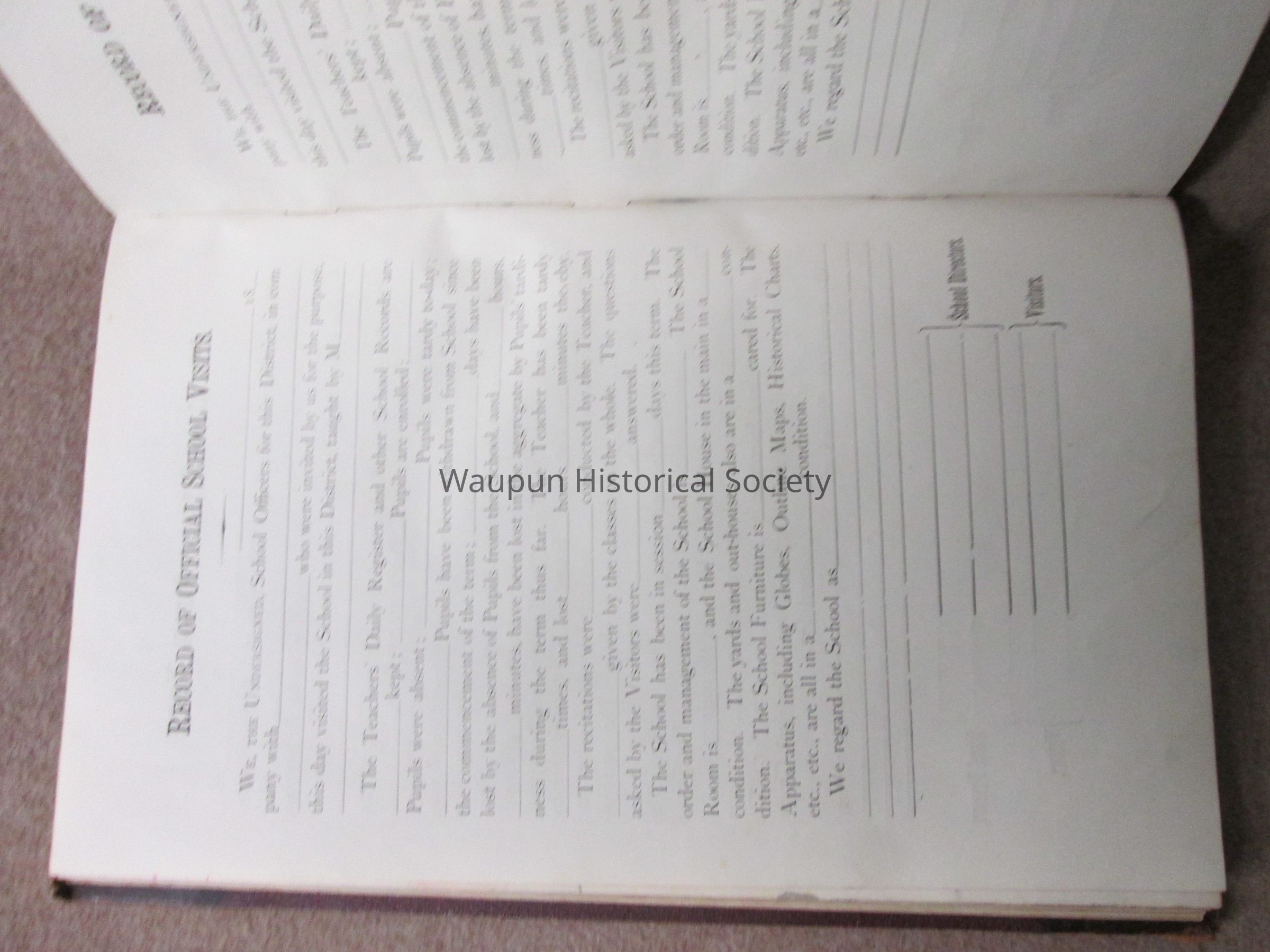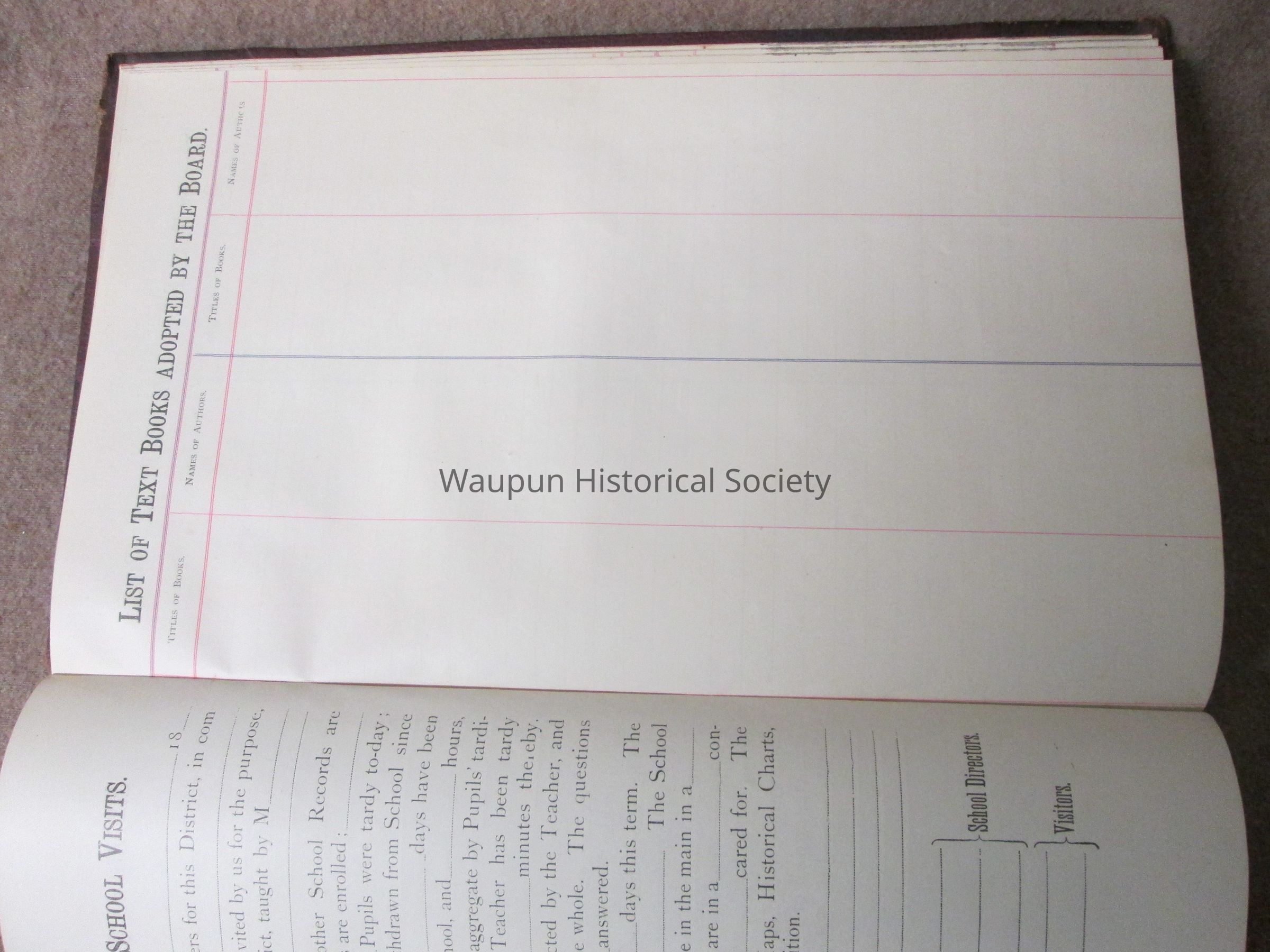 Record of Official School Visits and the List of Text Books Adopted By The Board pages were left unused.