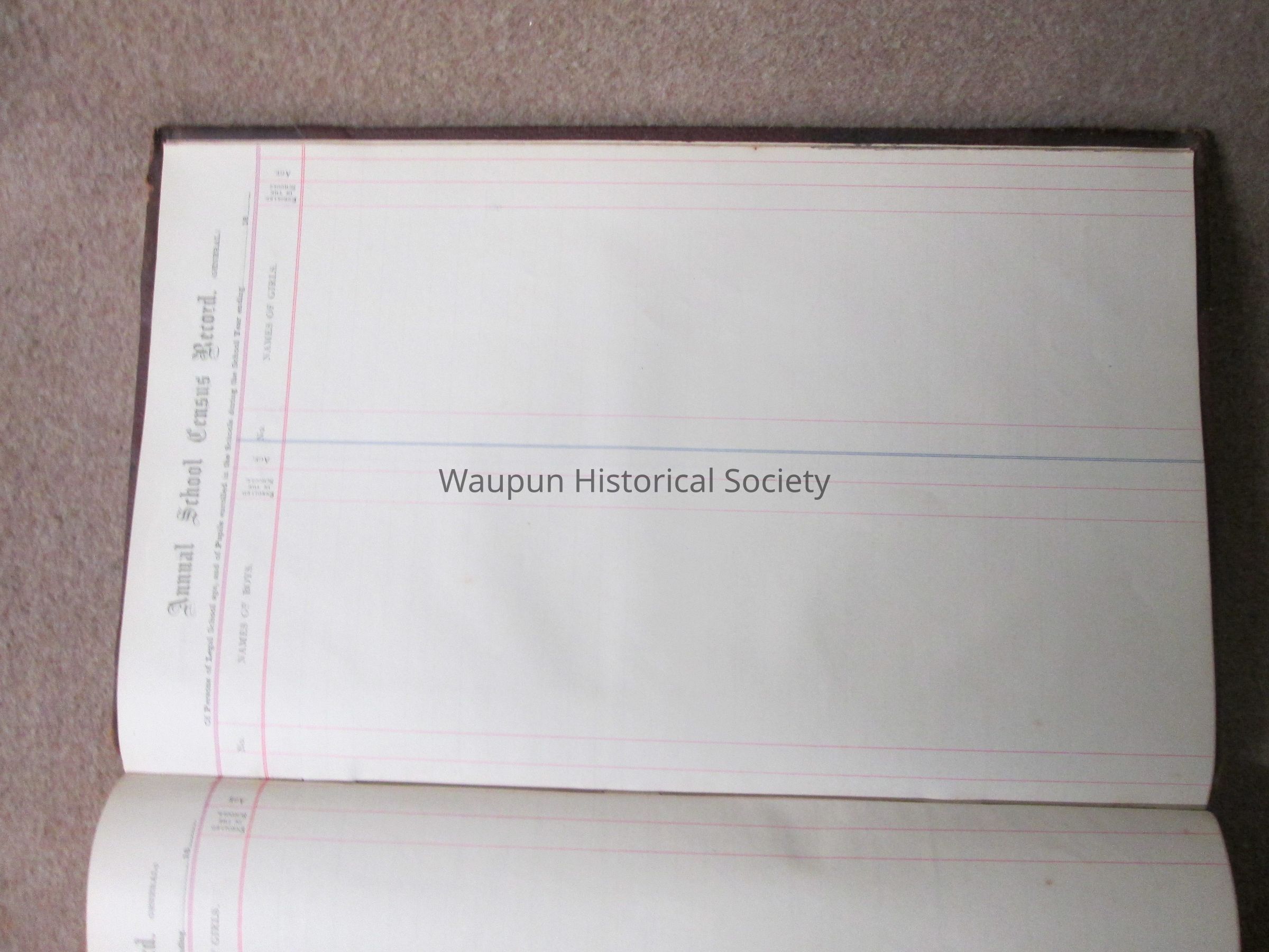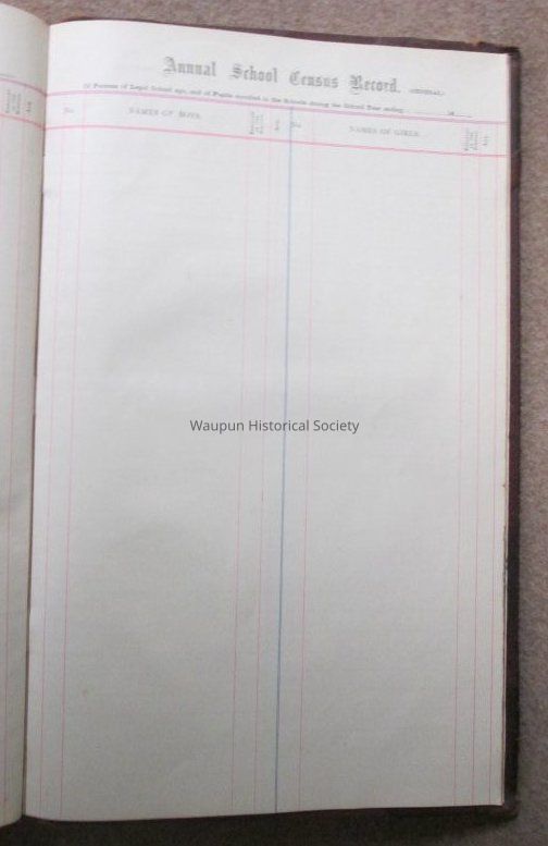 The Annual School Census Record pages complete the record book but these pages were left unused.Acquisition