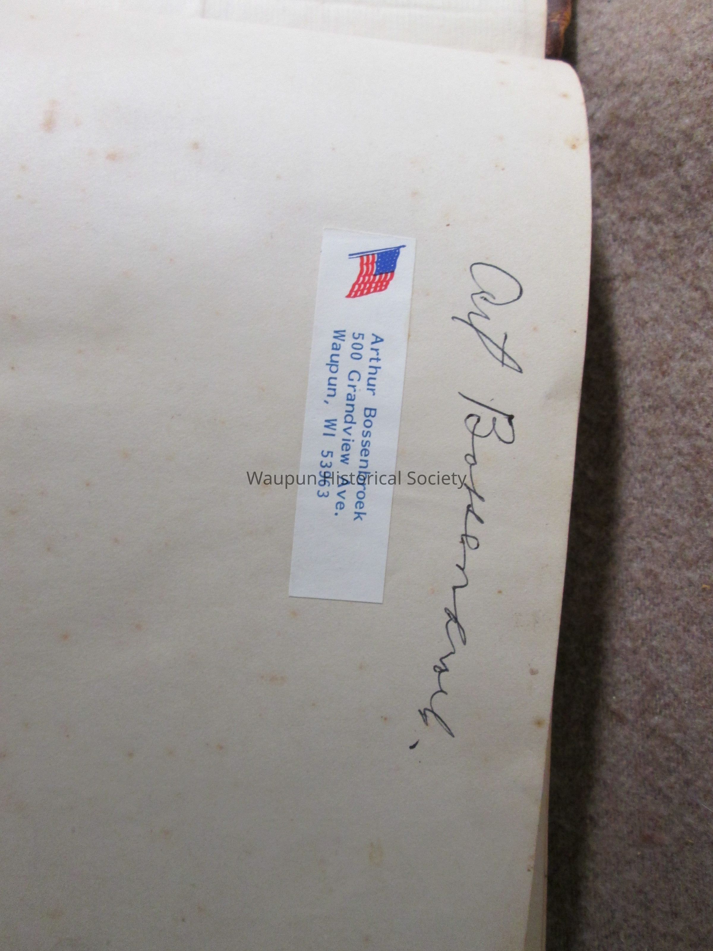 This book became the property of School Board member, Mr. Arthur Bossenbroek upon the dissolution of the multiple one room schools that had made up Alto, District #7.
