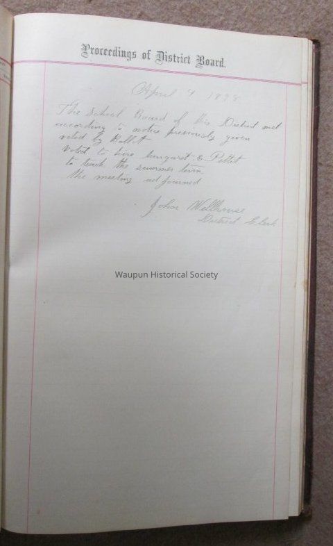 Proceedings of District Board of April 4,1898 by John Wellhouse, District Clerk is the only written document under this heading.