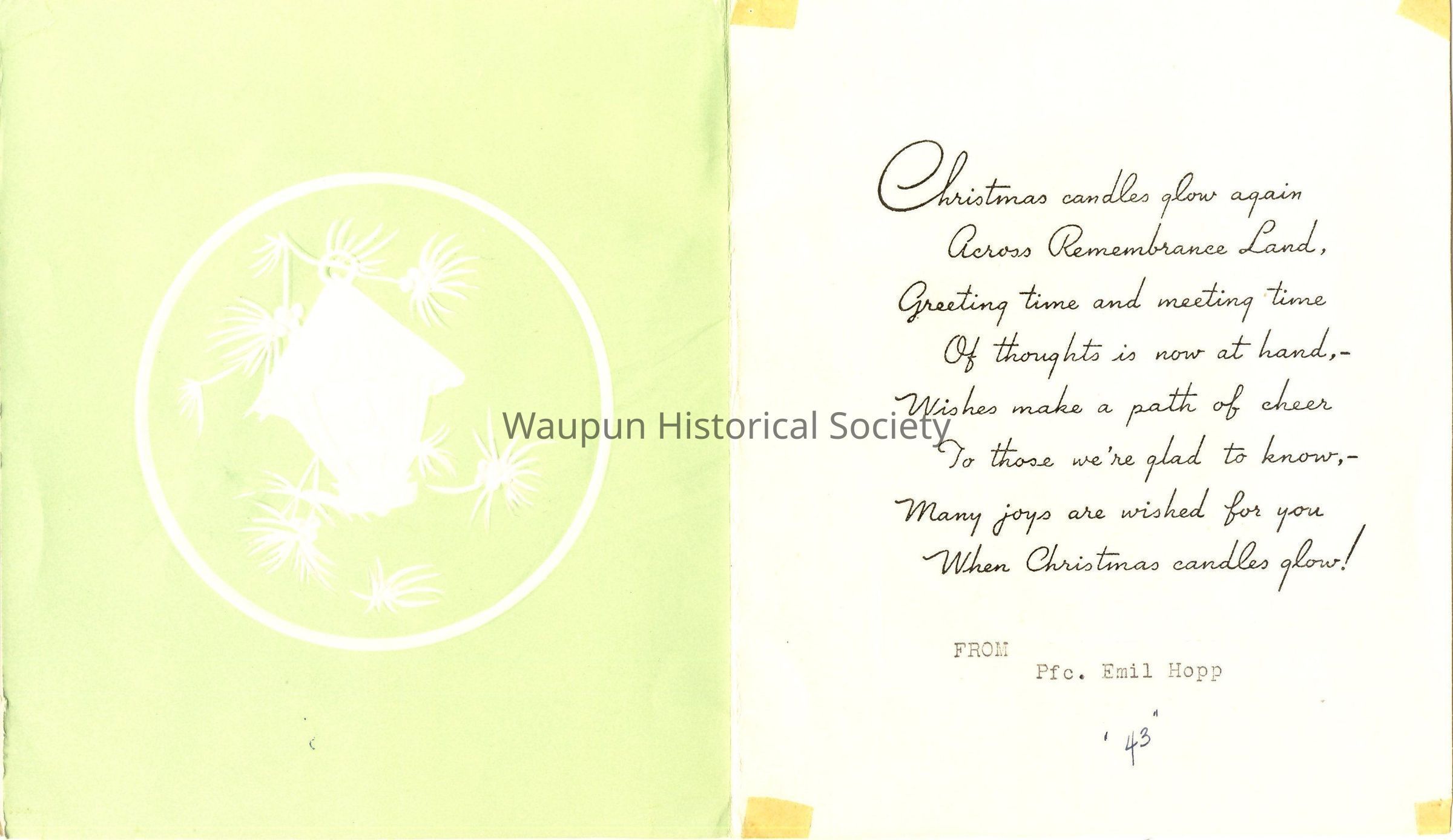This card was from Pfc. Emil Hopp of 1943.Acquisition