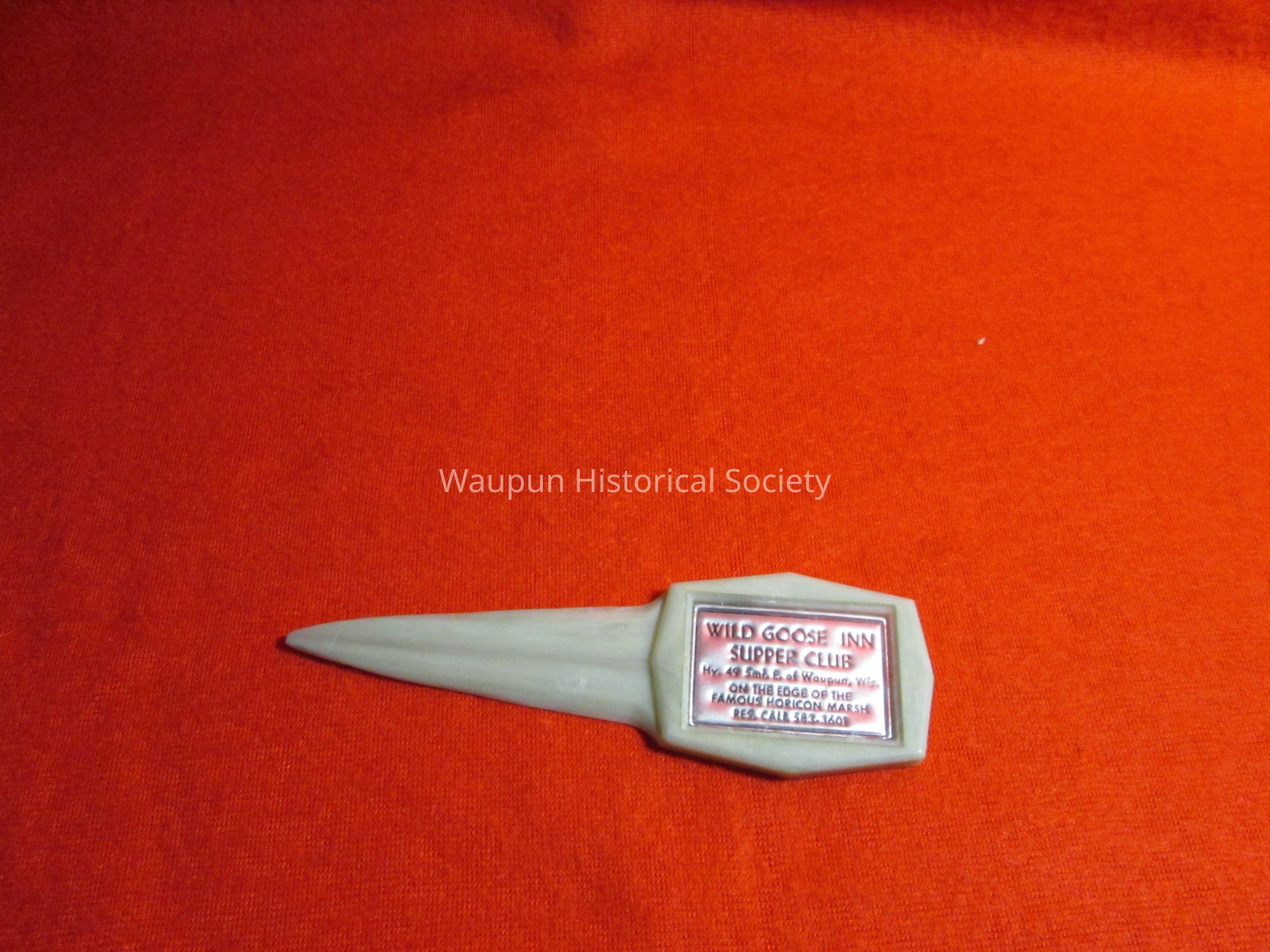 a Letter Opener Cream in color Compliment of the Wild Goose Inn Supper Club at Hy. 49 5mi.E. of Waupun, Wis. on the Edge of the famous Horicon MarshAcquisition