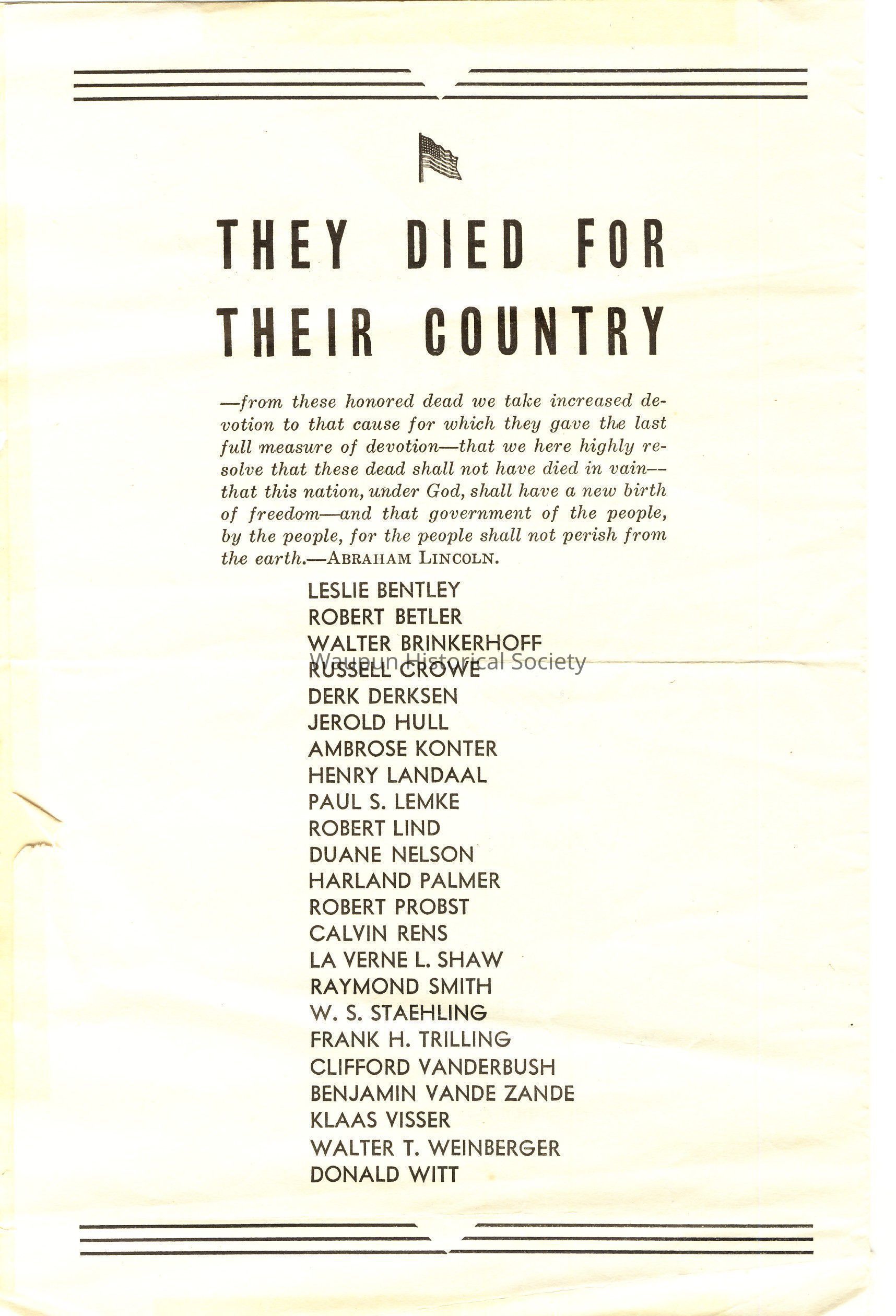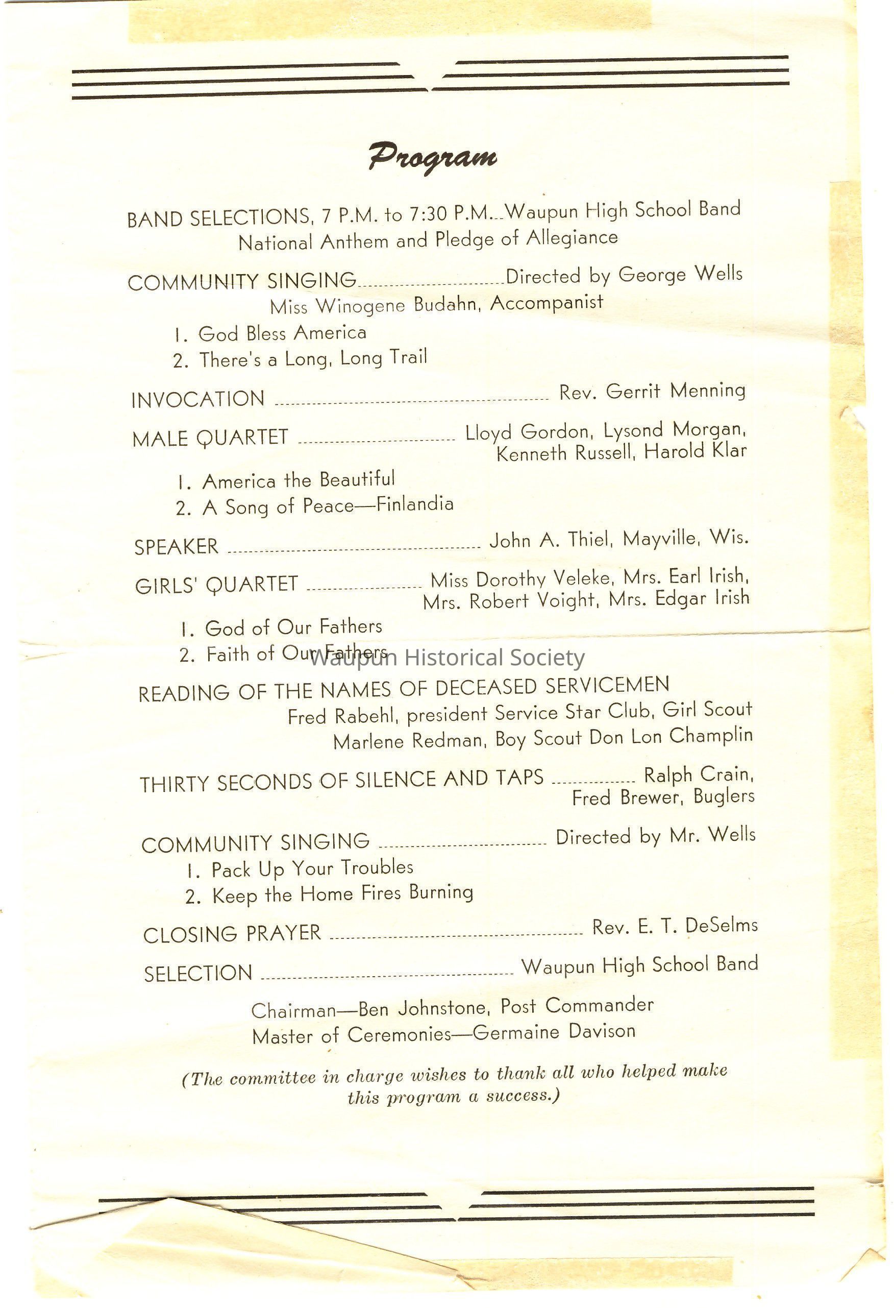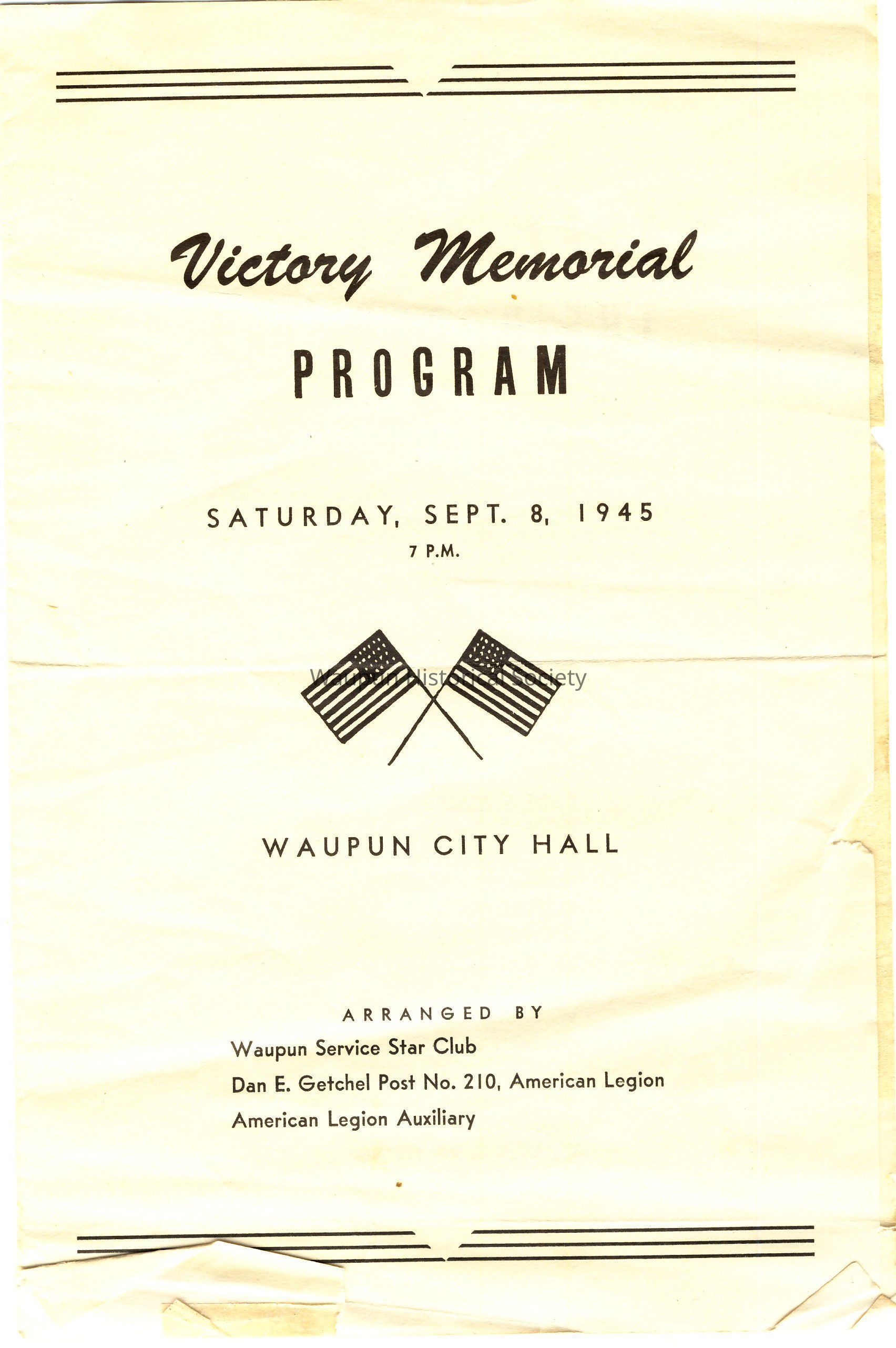Program, WWII, Victory Memorial, September 8, 1945Entry/Object ID