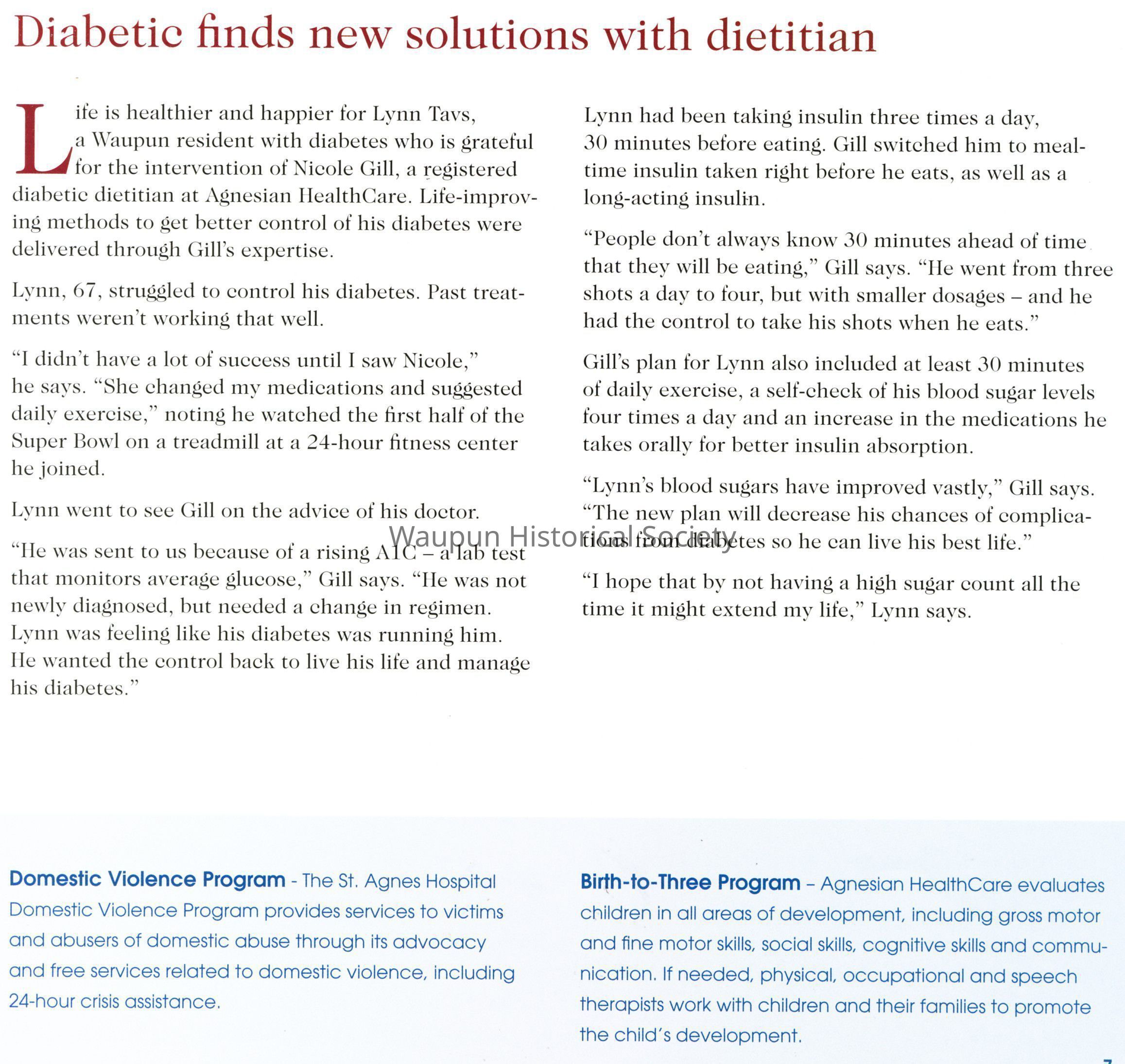 Agnesian, Dietitian Helps Diabetic Find Solutions, 2010Entry/Object ID